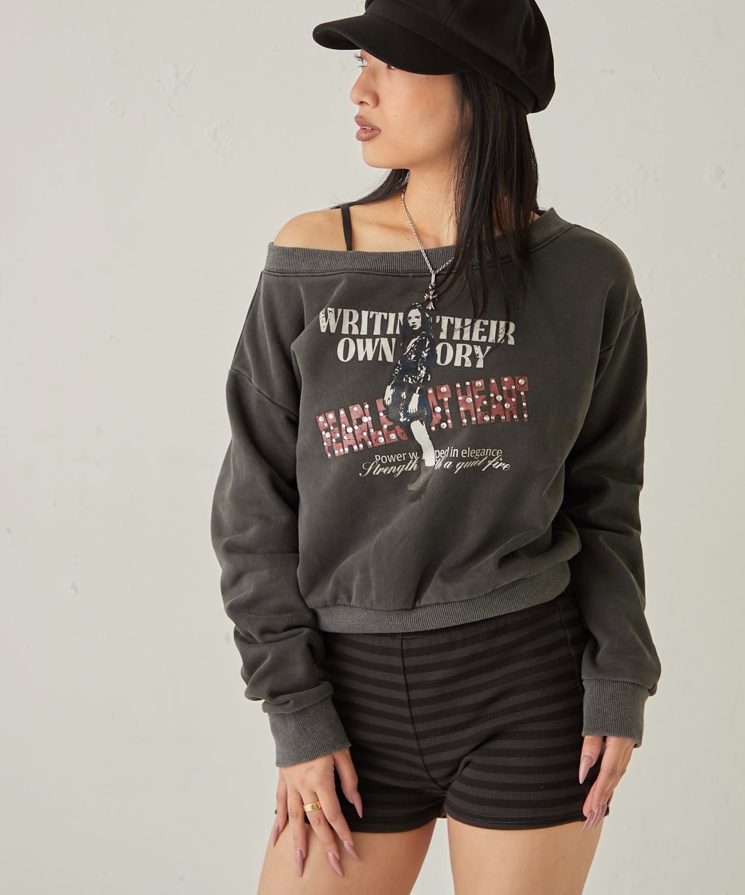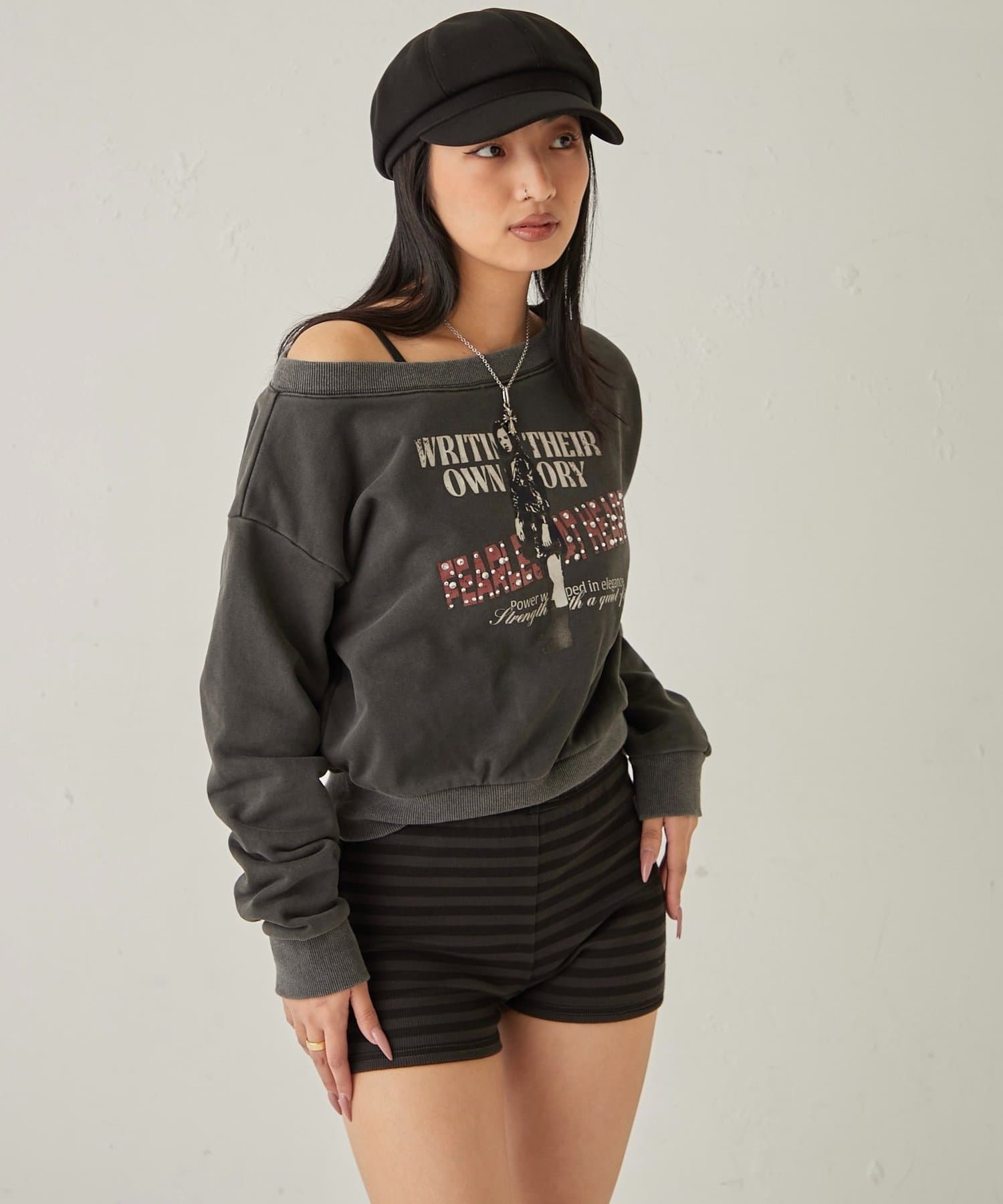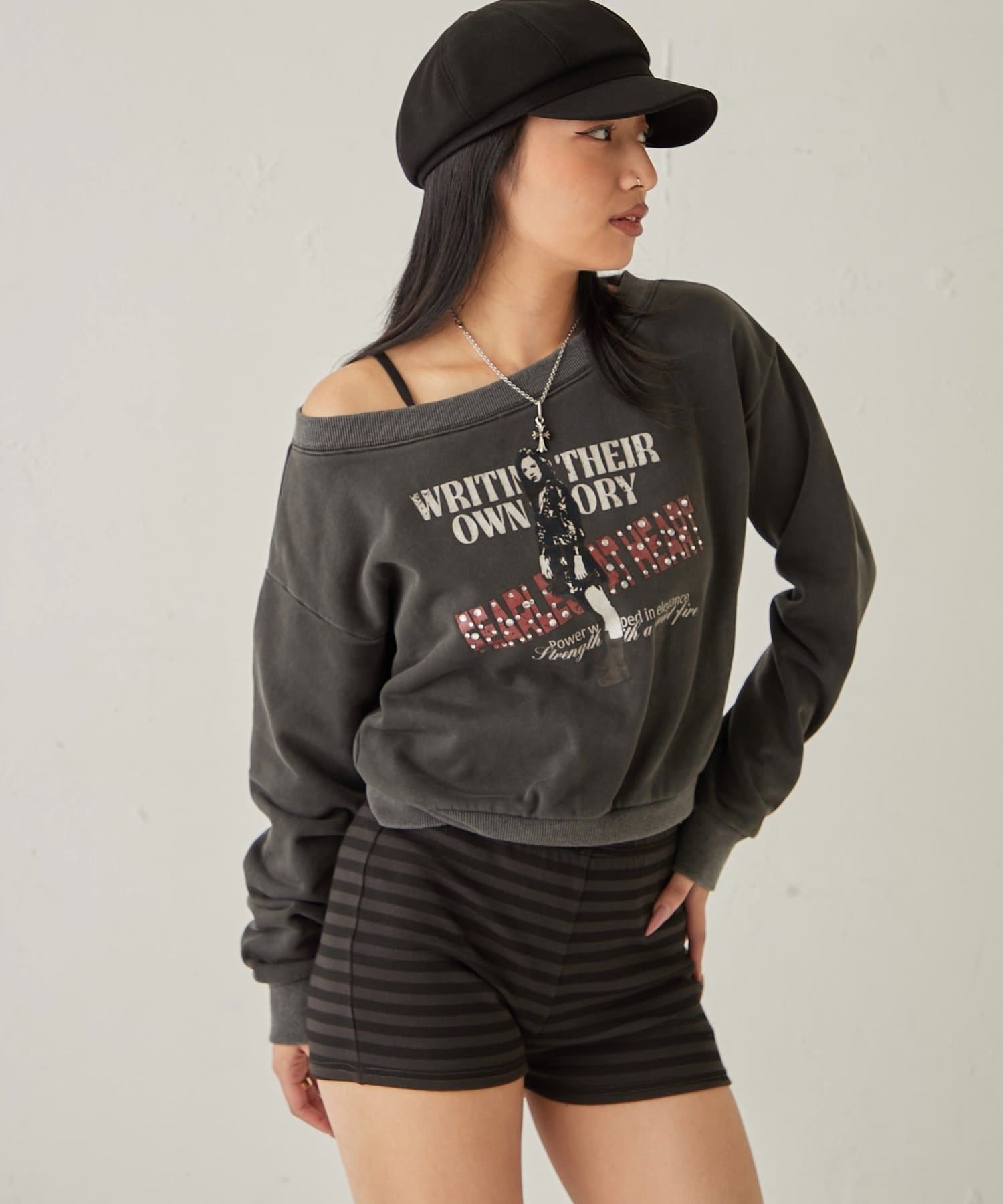 【ELIOT RHINESTONE COMPACT OFF-SHOULDER TOP/エリオットラインストーンコンパクトオフショル】