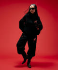 ・トラックジャケットの色(ブラック)に合わせて、他のアイテムの色を調整するとまとまりやすくなります。