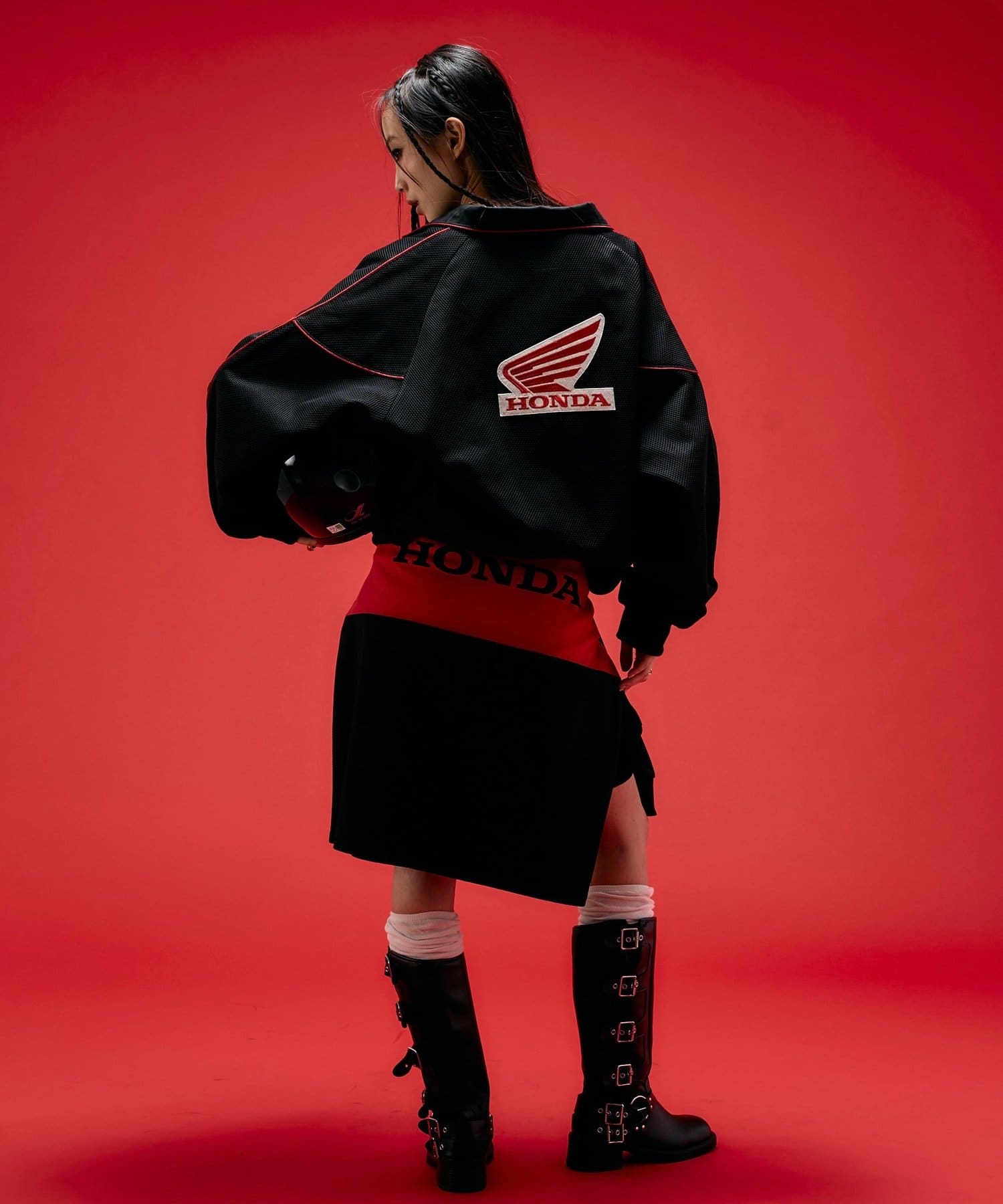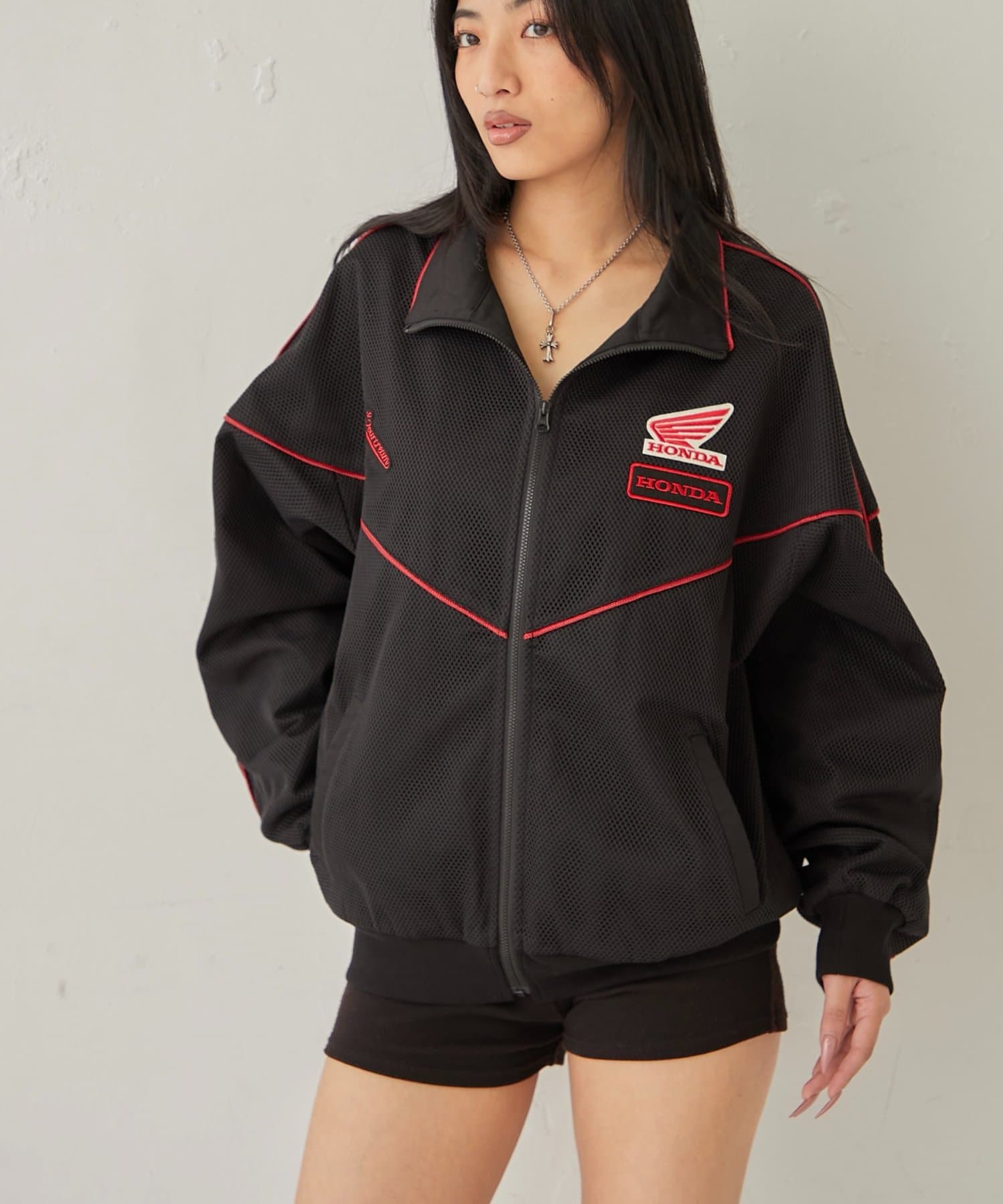 ・胸元にはHONDAのロゴ、デザイン性の高いカッティングが目を引きます。