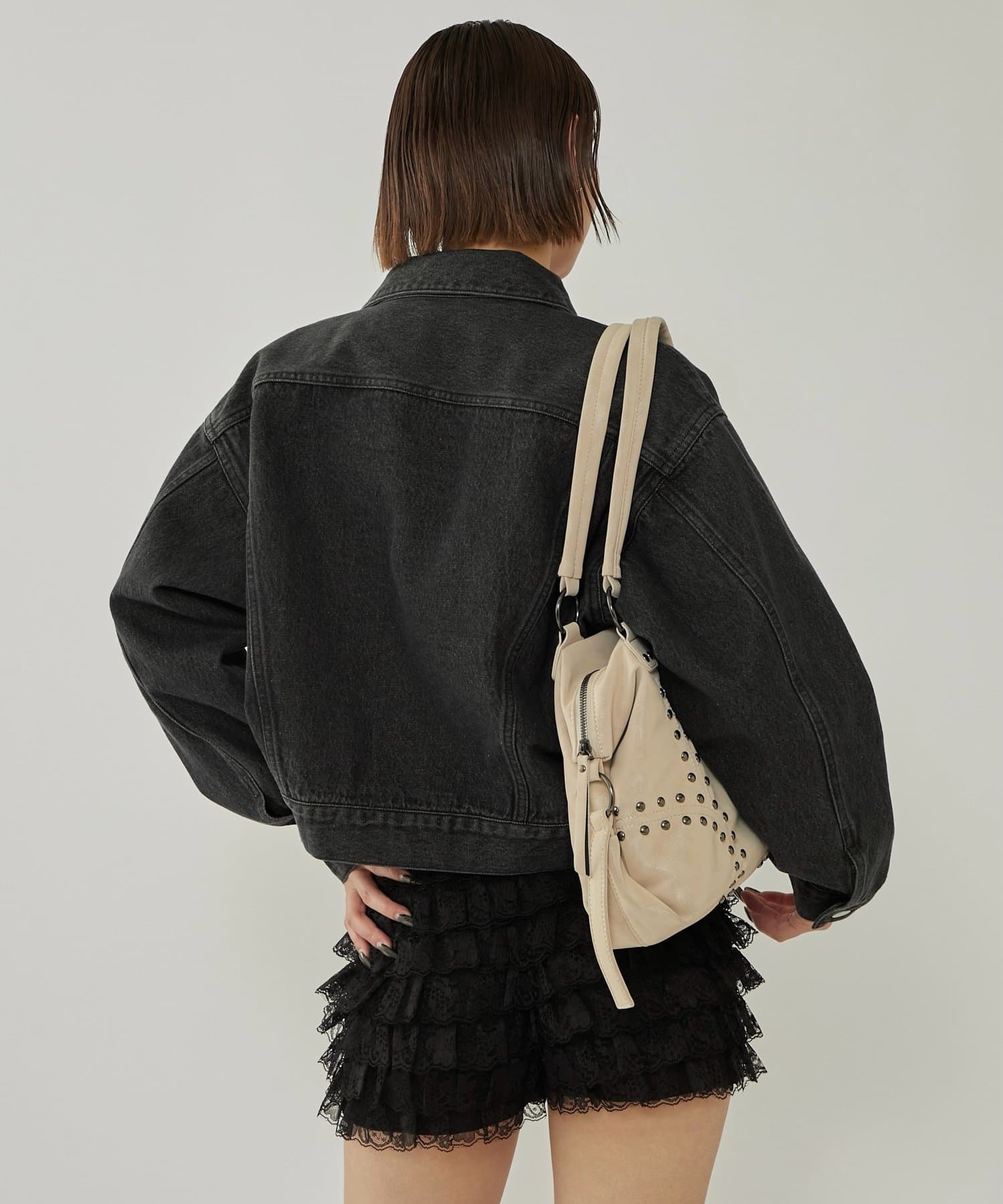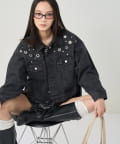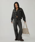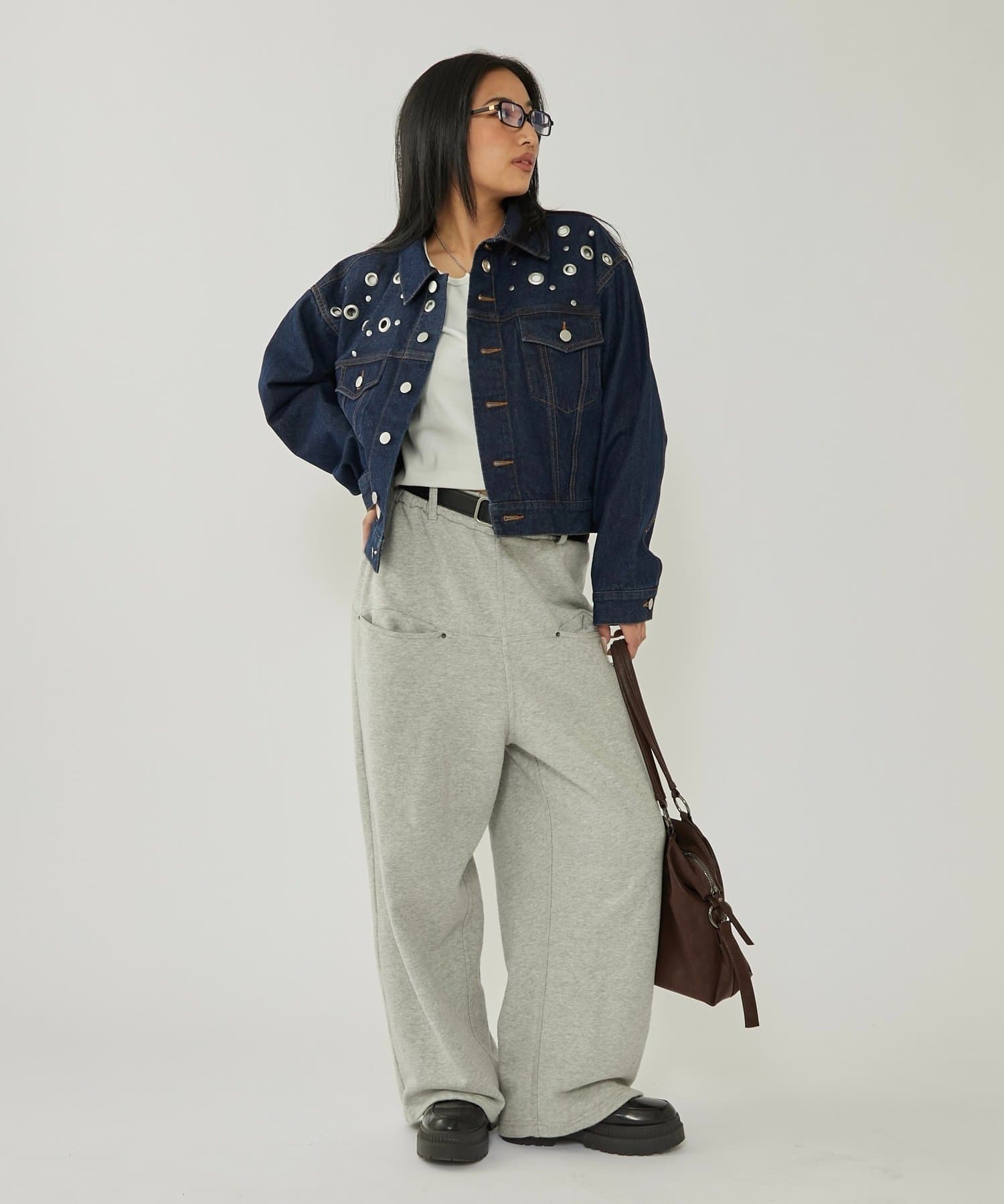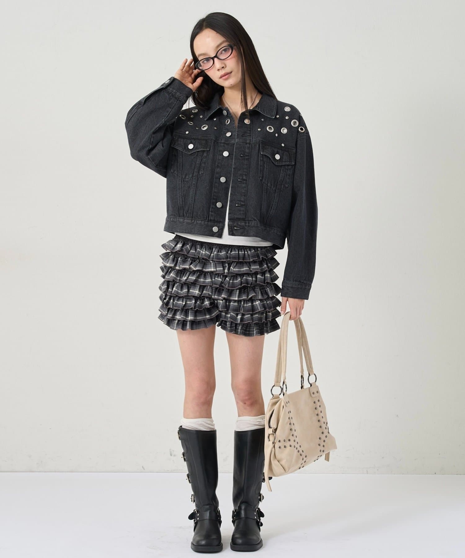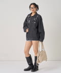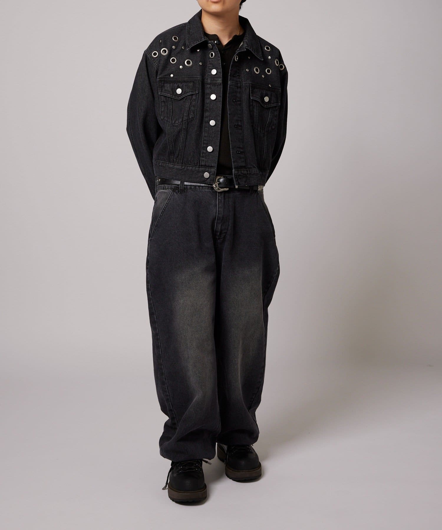 ・エッジの効いたデザインが魅力のハトメデニムジャケット。