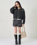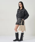 ・ミニのボトムス合わせで甘辛ミックスコーデ。