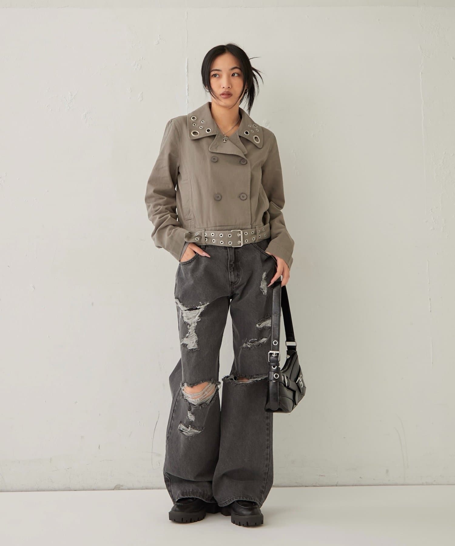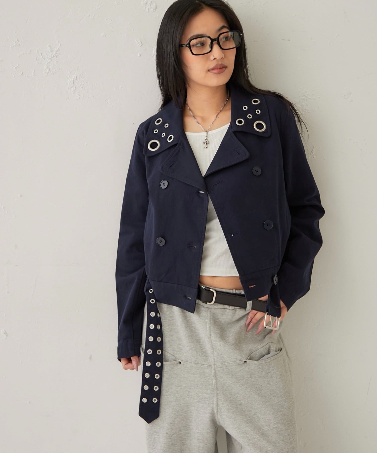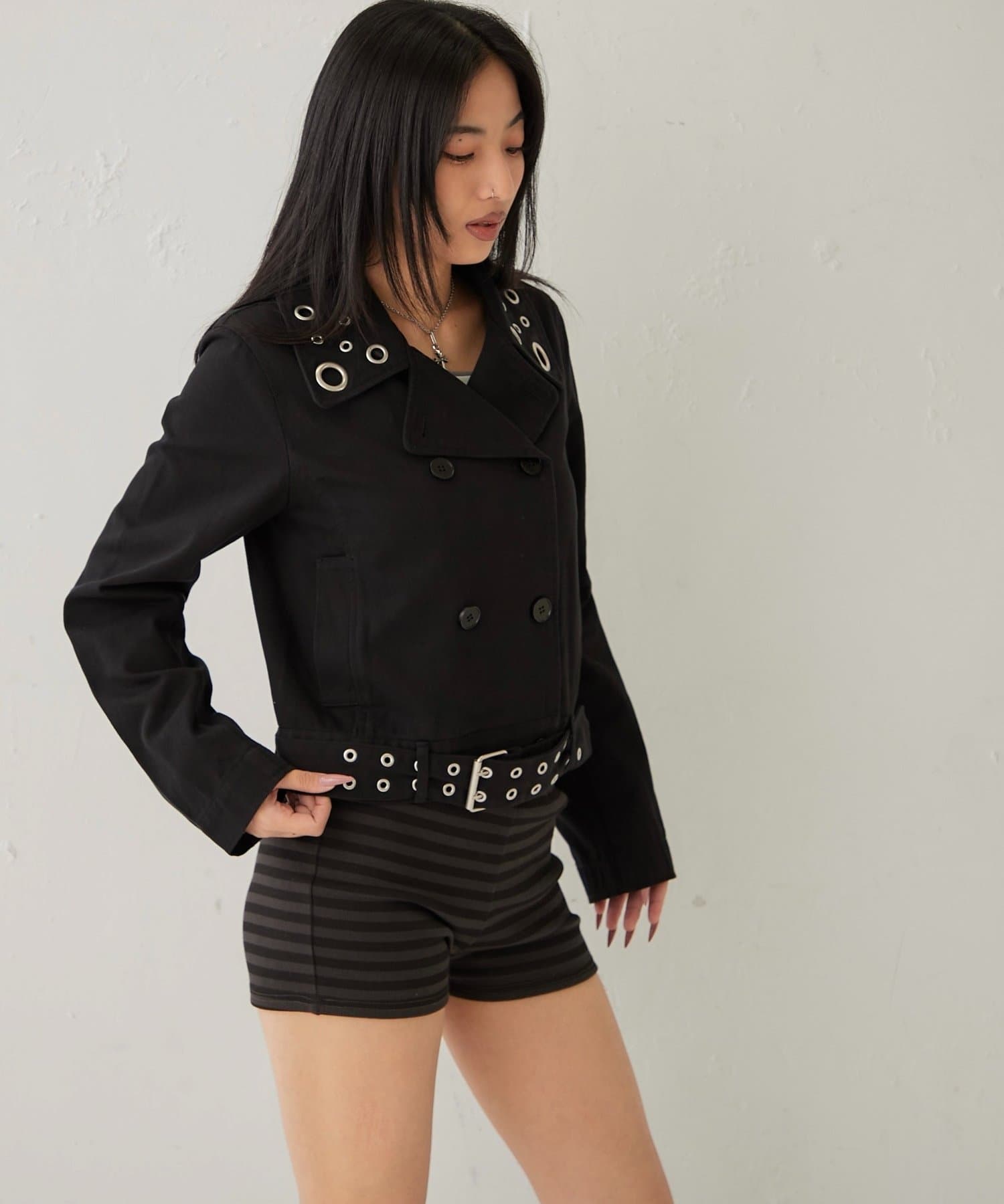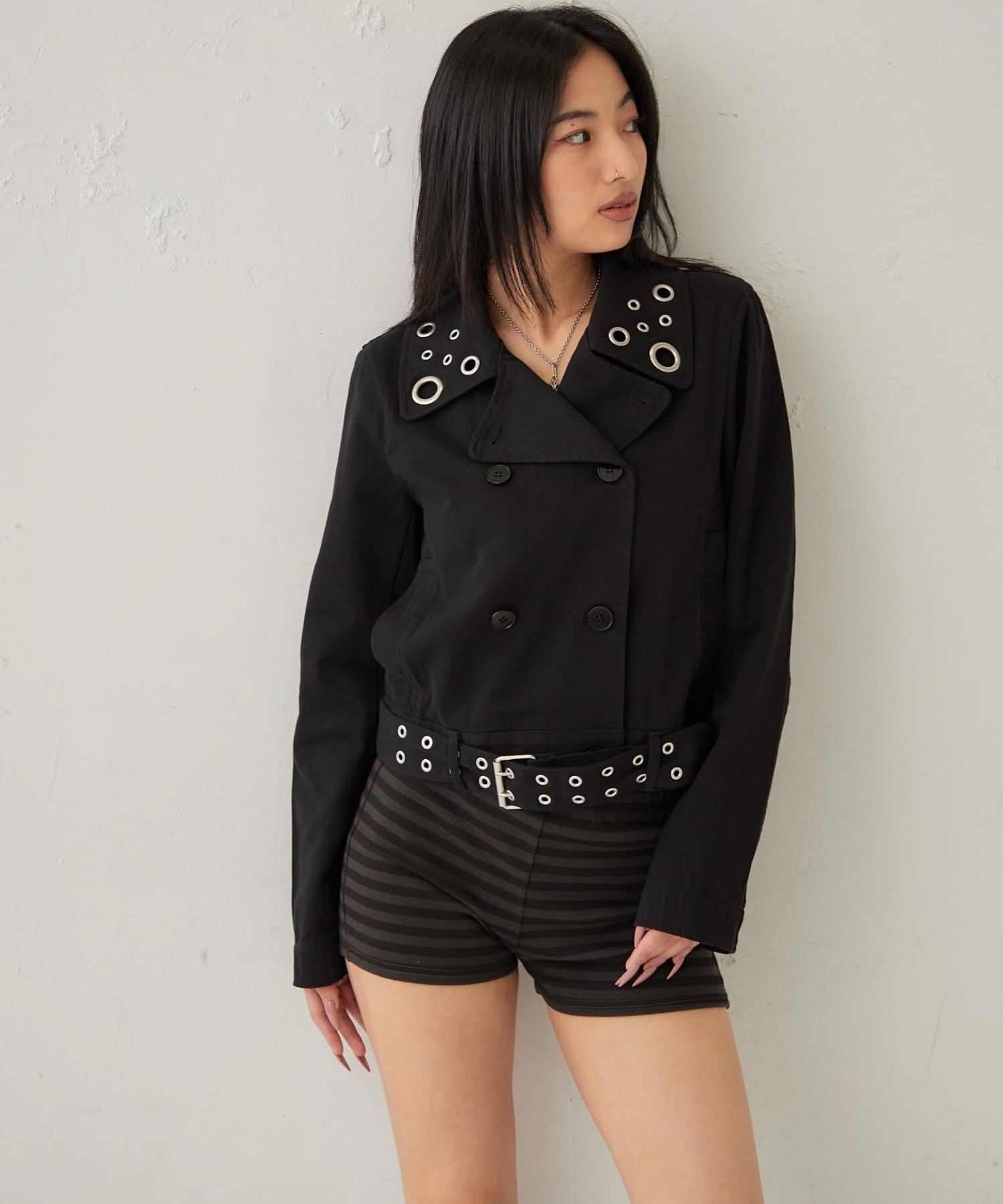 辛口レディの必須アイテム。アイレットが光る、大人のショートPジャケット