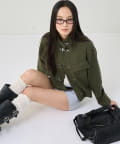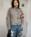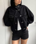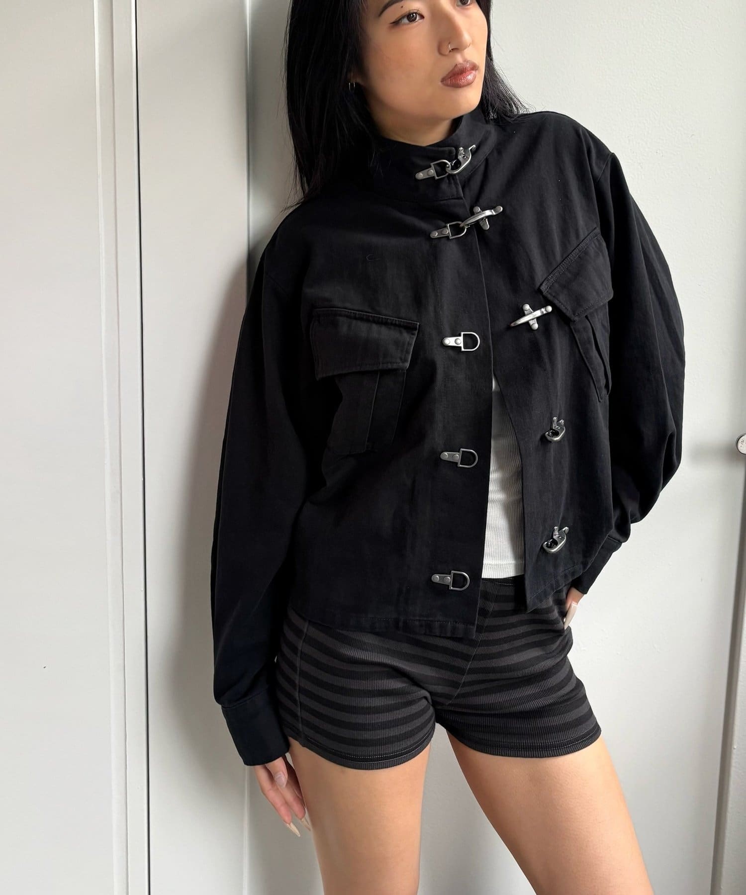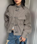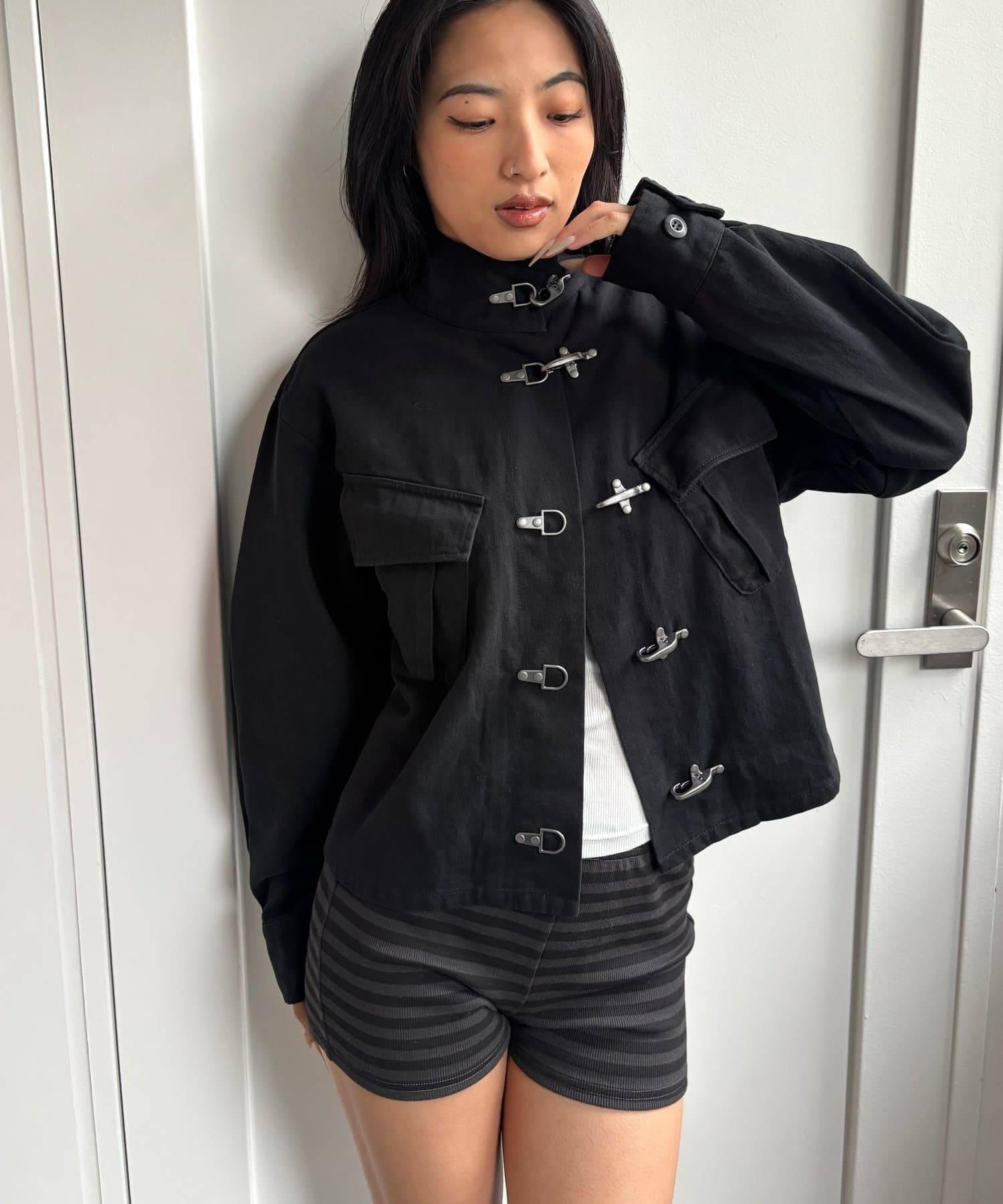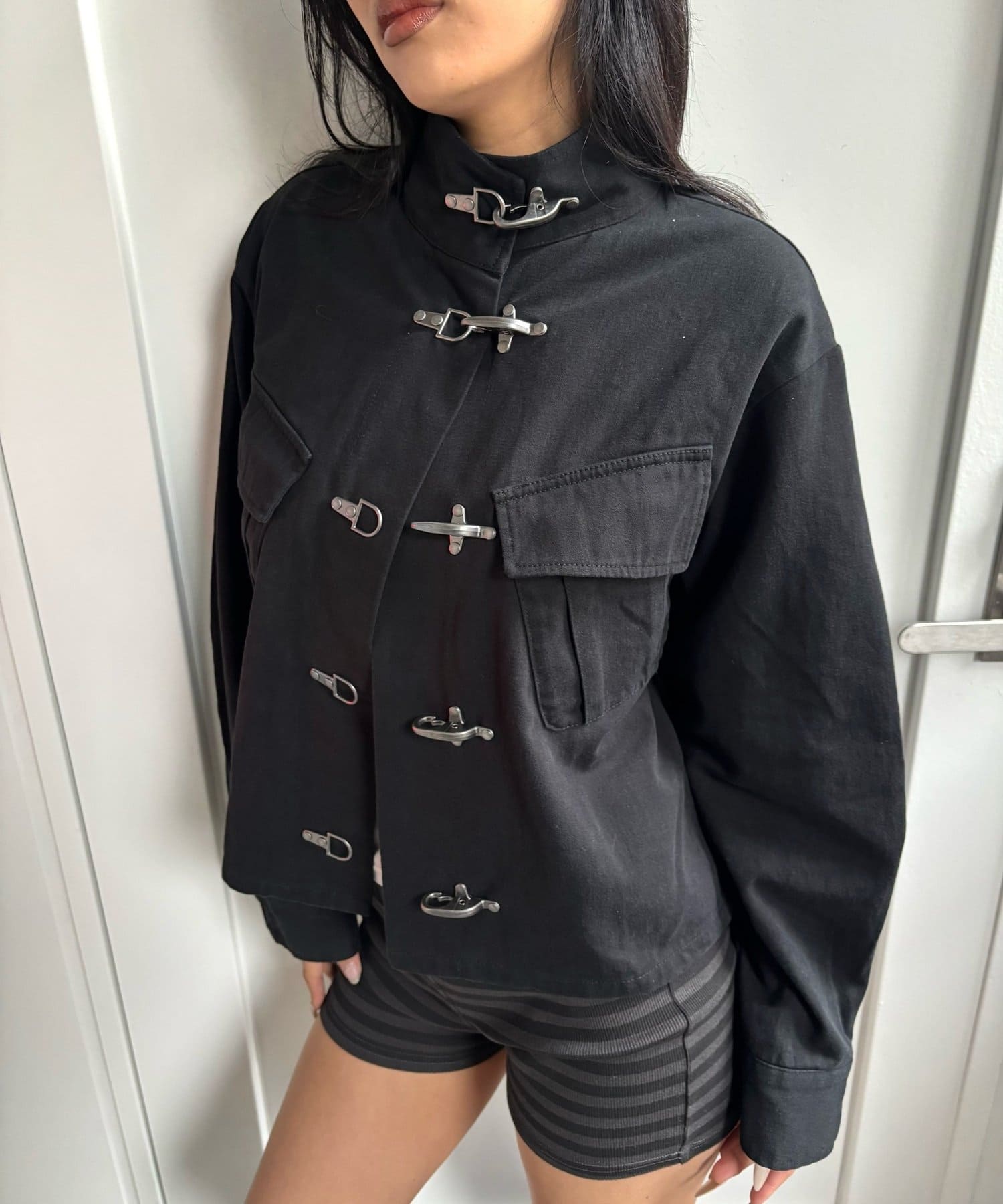 ・特徴的なファイヤーマンフックが目を引くミリタリーシャツジャケット。