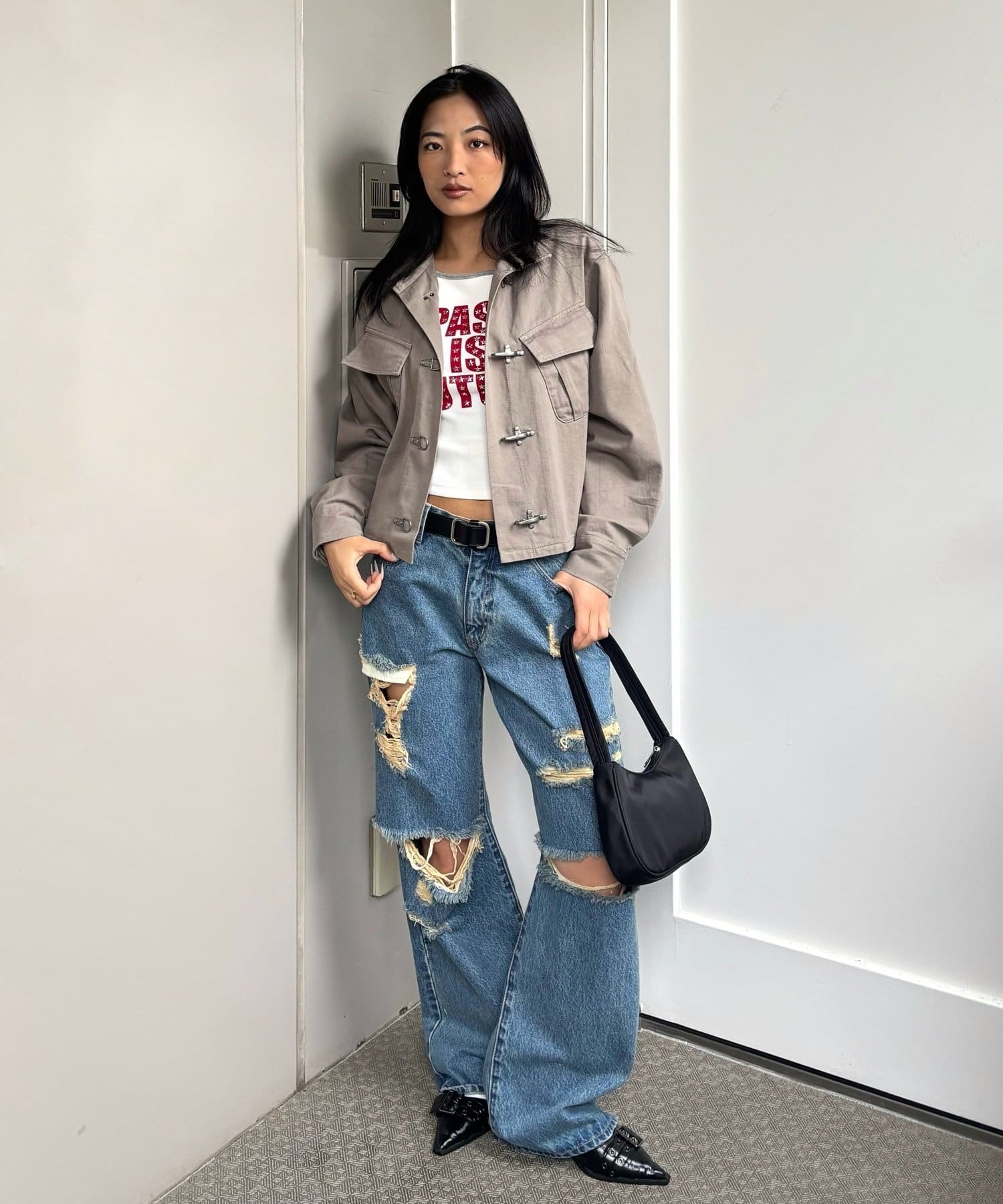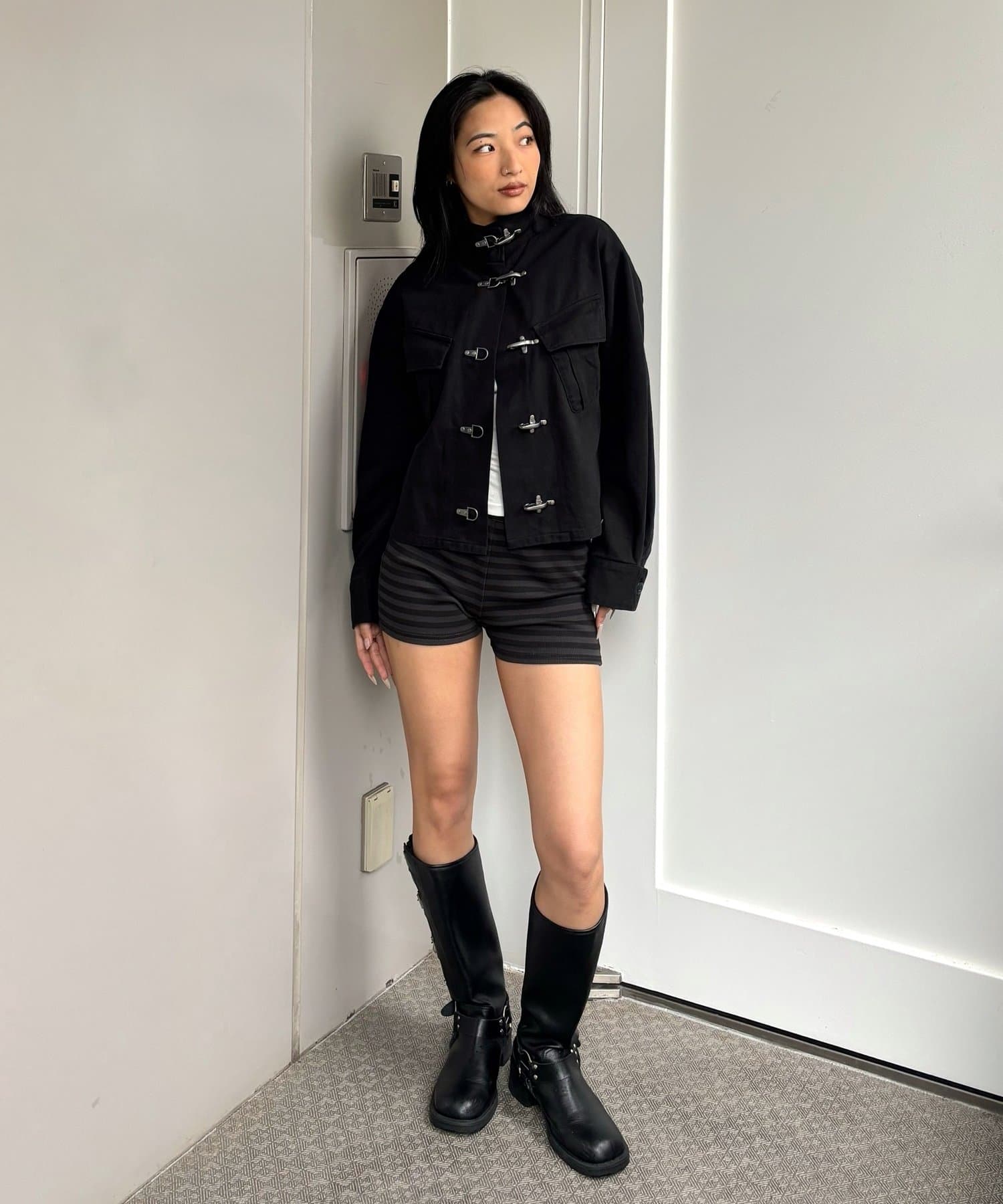 ・ ワンピースやミニのボトムスと合わせてミックススタイルに。