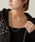 ・異なるチェーンを組み合わせた、遊び心あふれるネックレス。