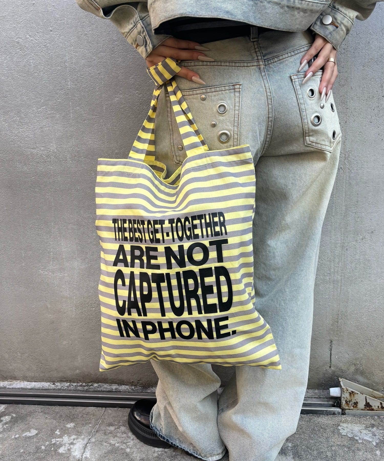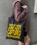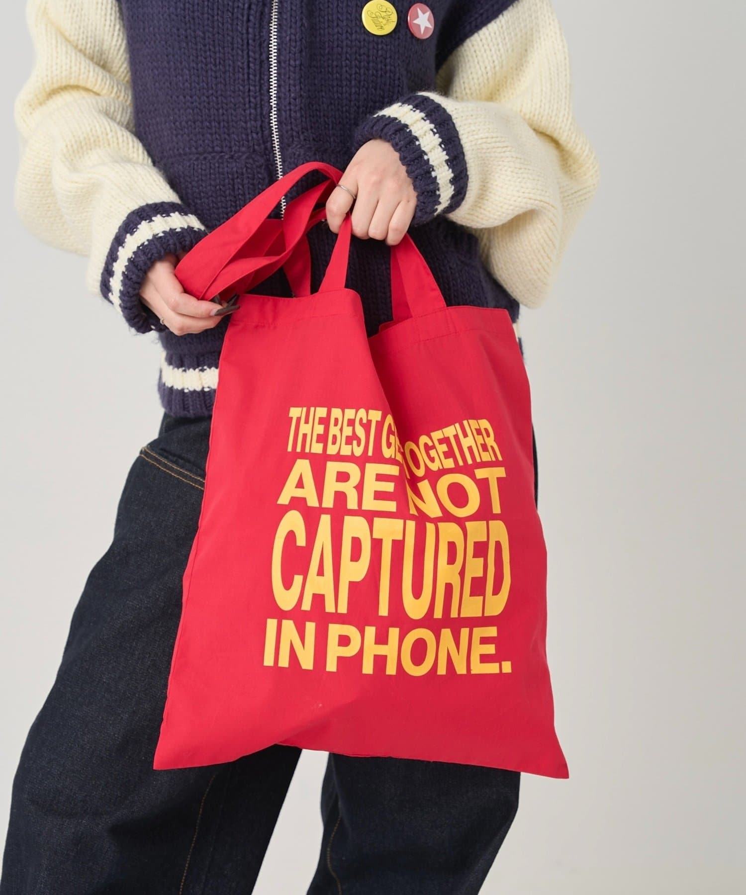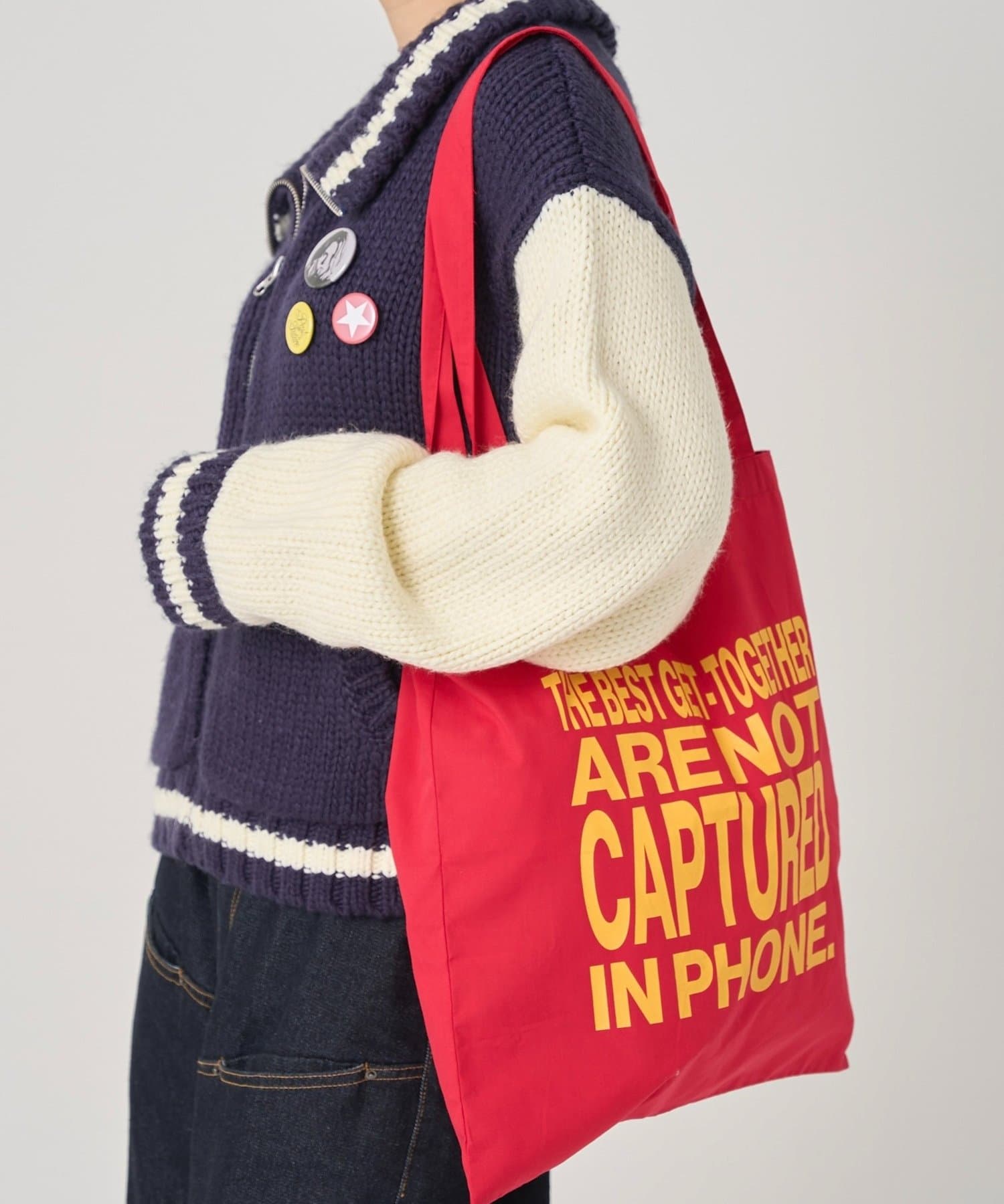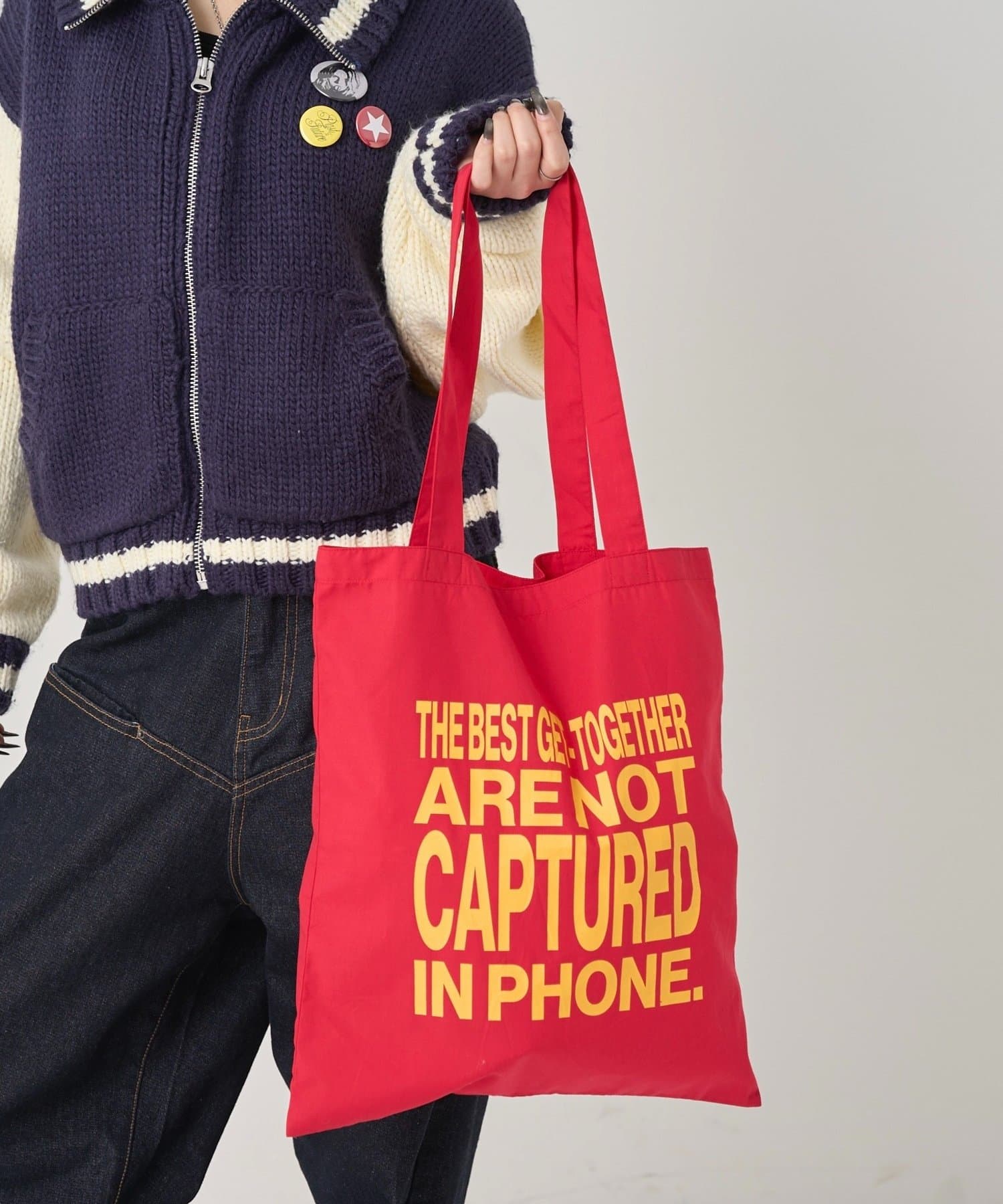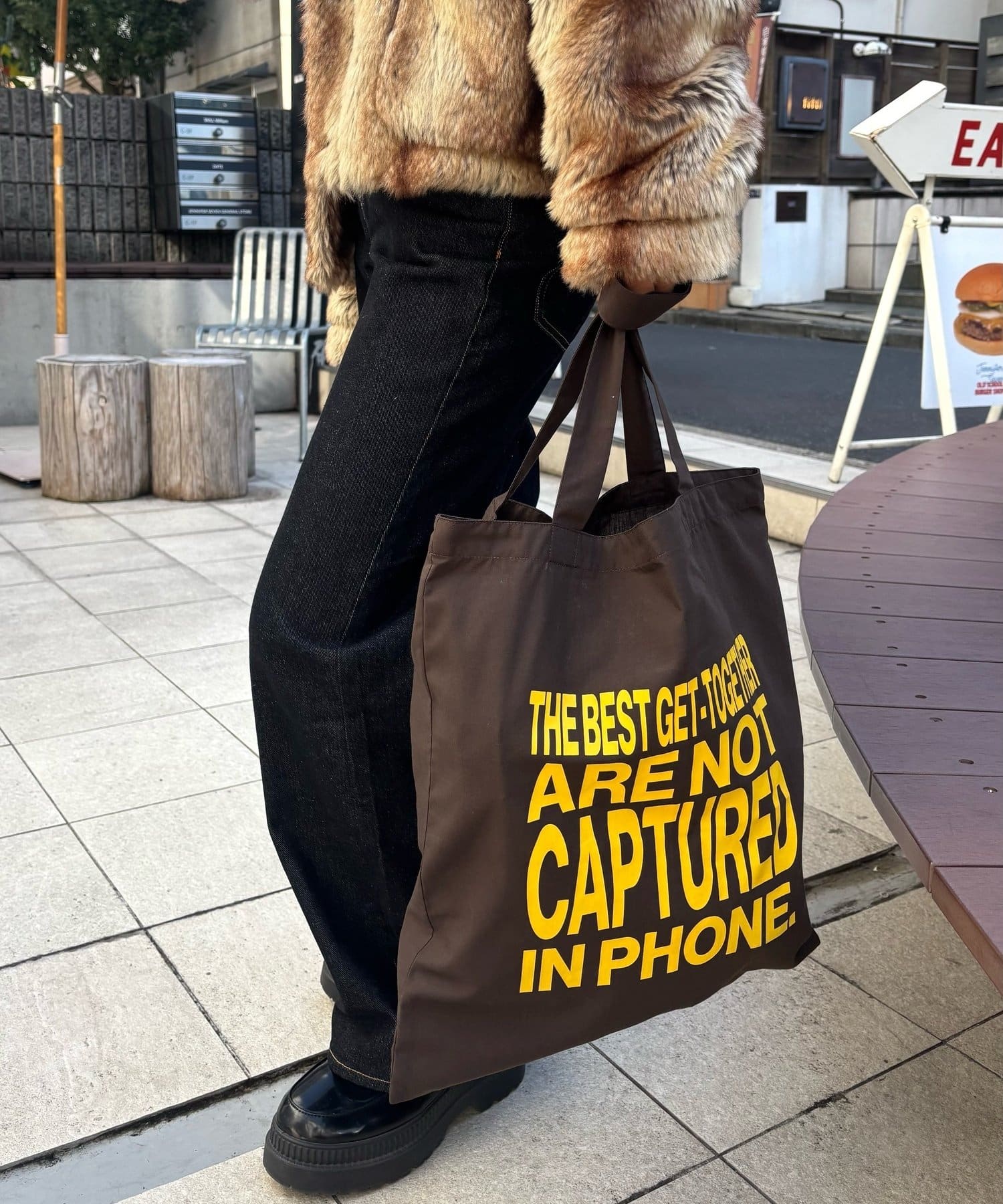 ・印象的なメッセージロゴが目を引く、WEB限定デザイントートバッグ。