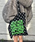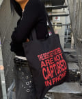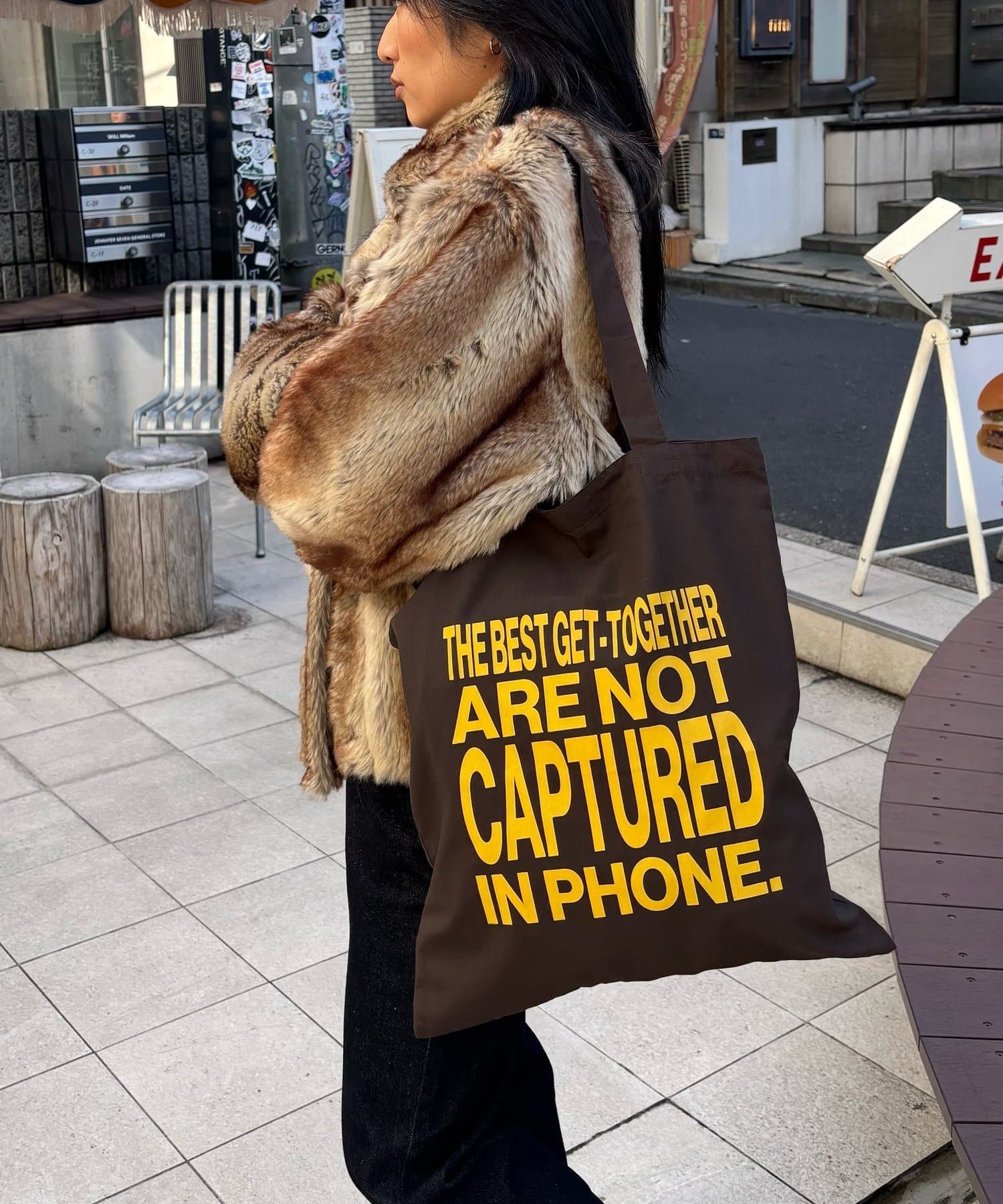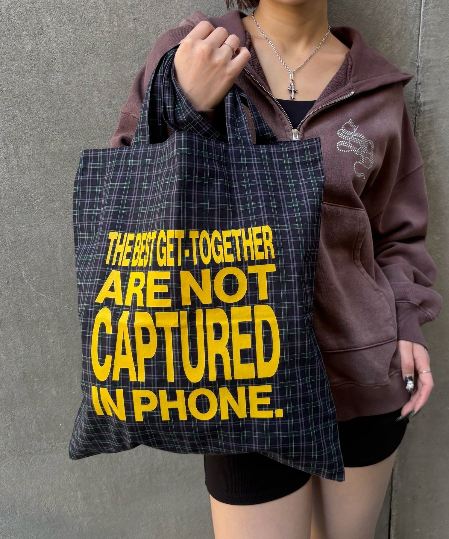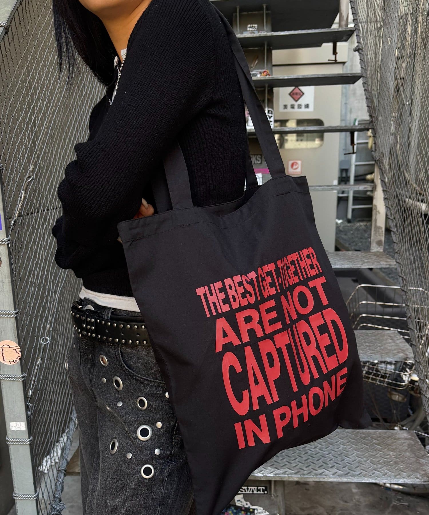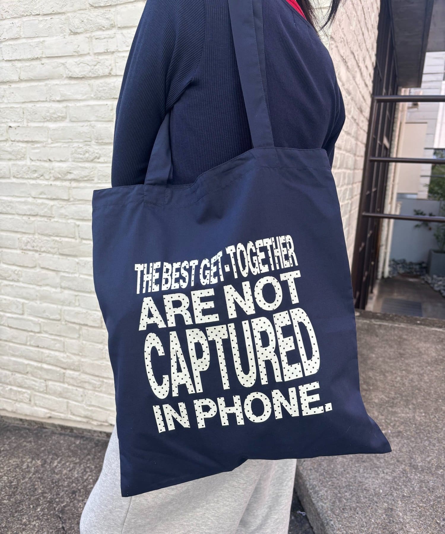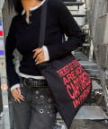 ・印象的なメッセージロゴが目を引く、WEB限定デザイントートバッグ。
