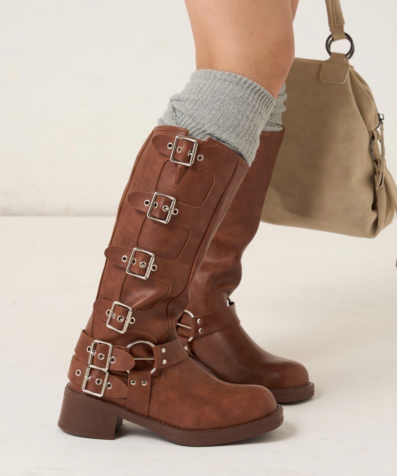 クールなシルエットに秘めた、揺るぎない存在感。ベルテッドロングブーツで、街の視線を独り占め!