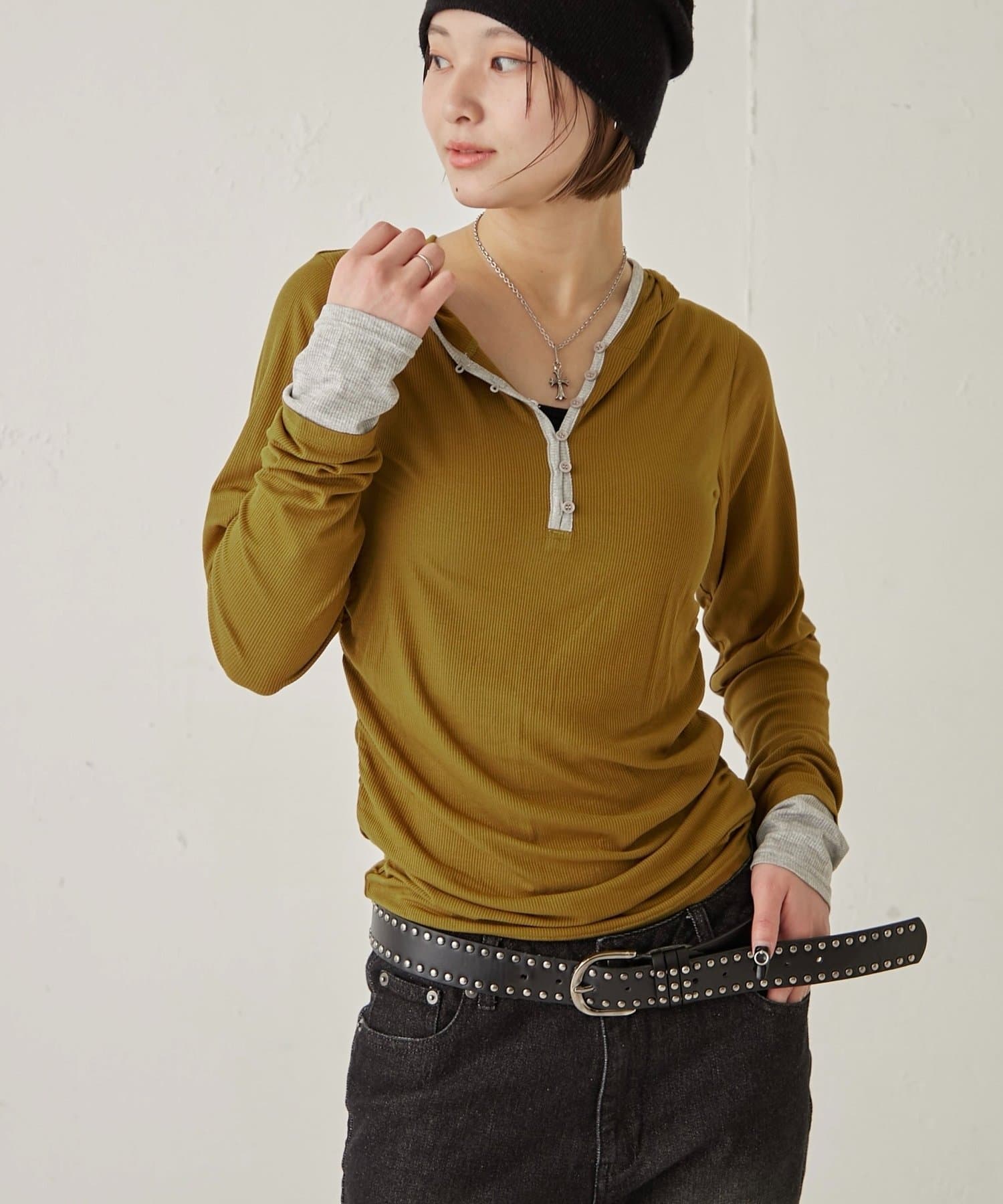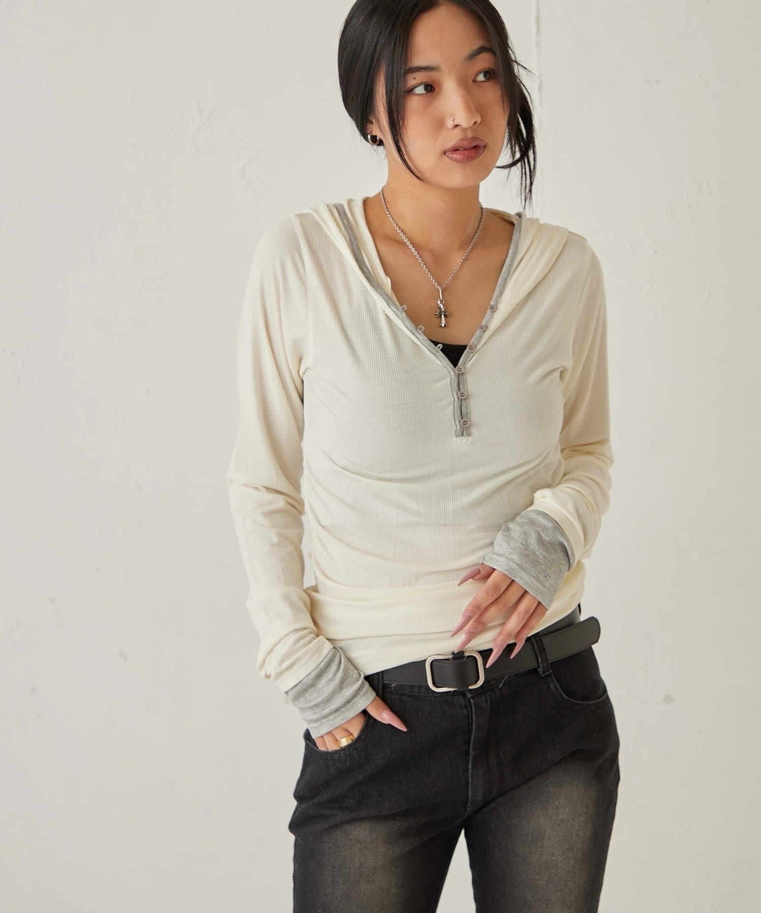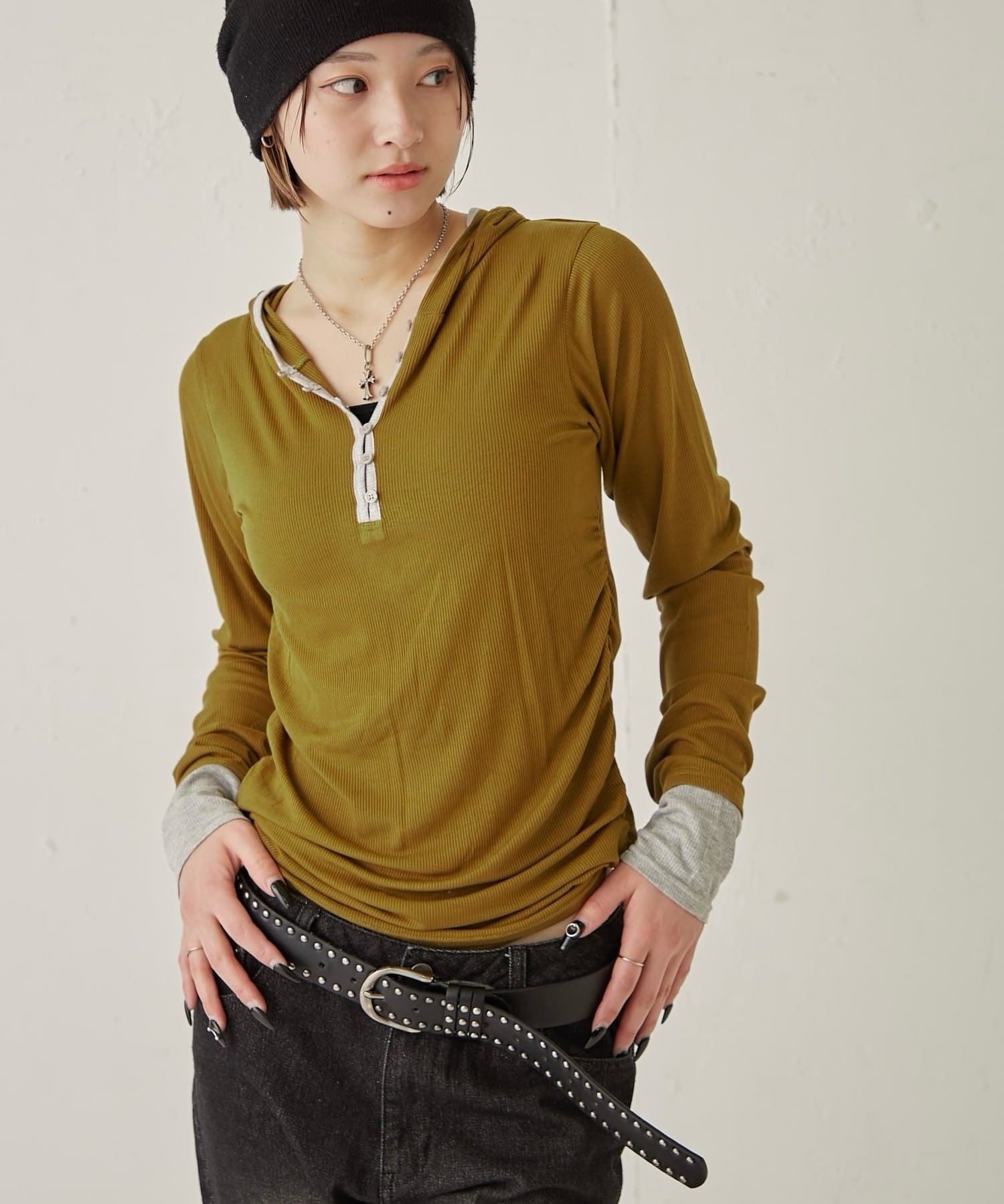 【WEB限定】TWO-TONE HENLEY HOODIE
