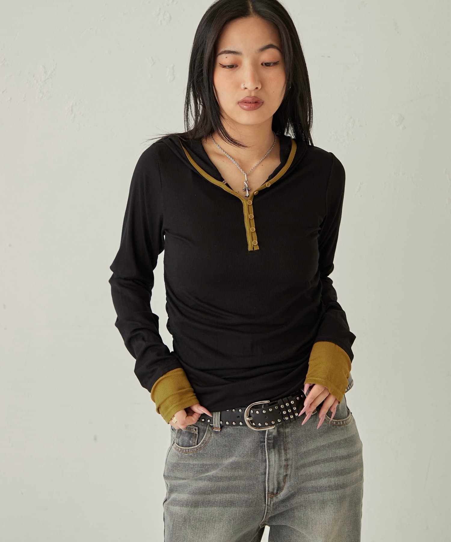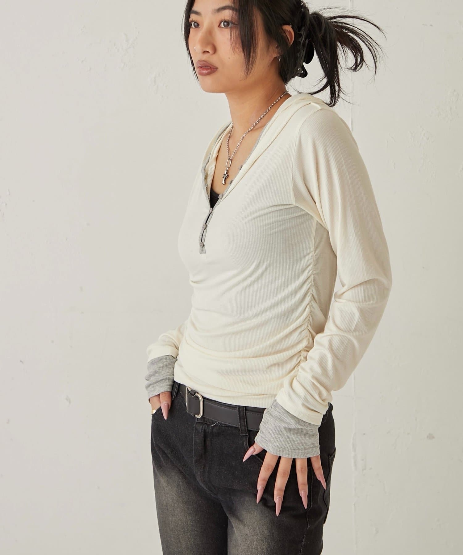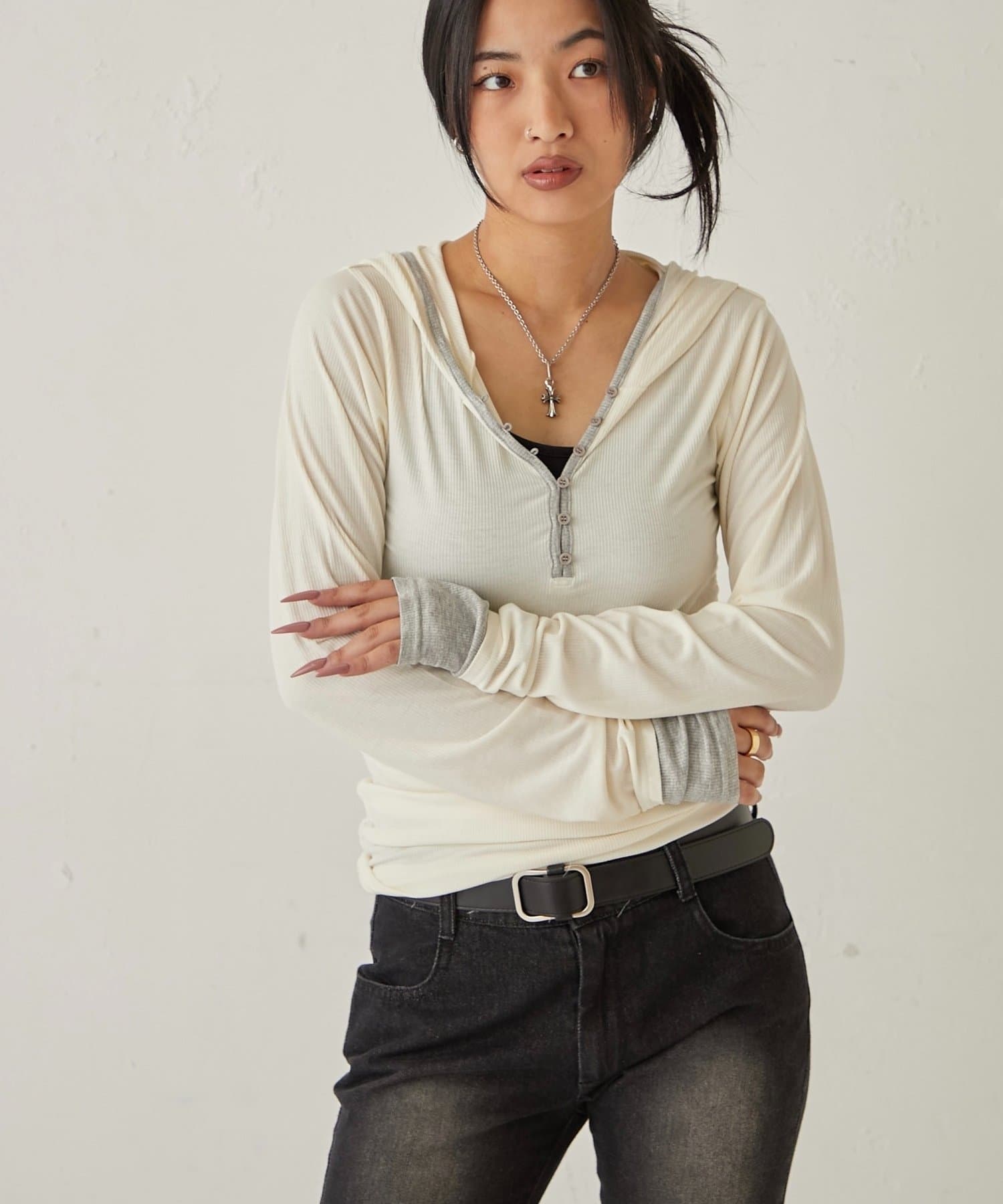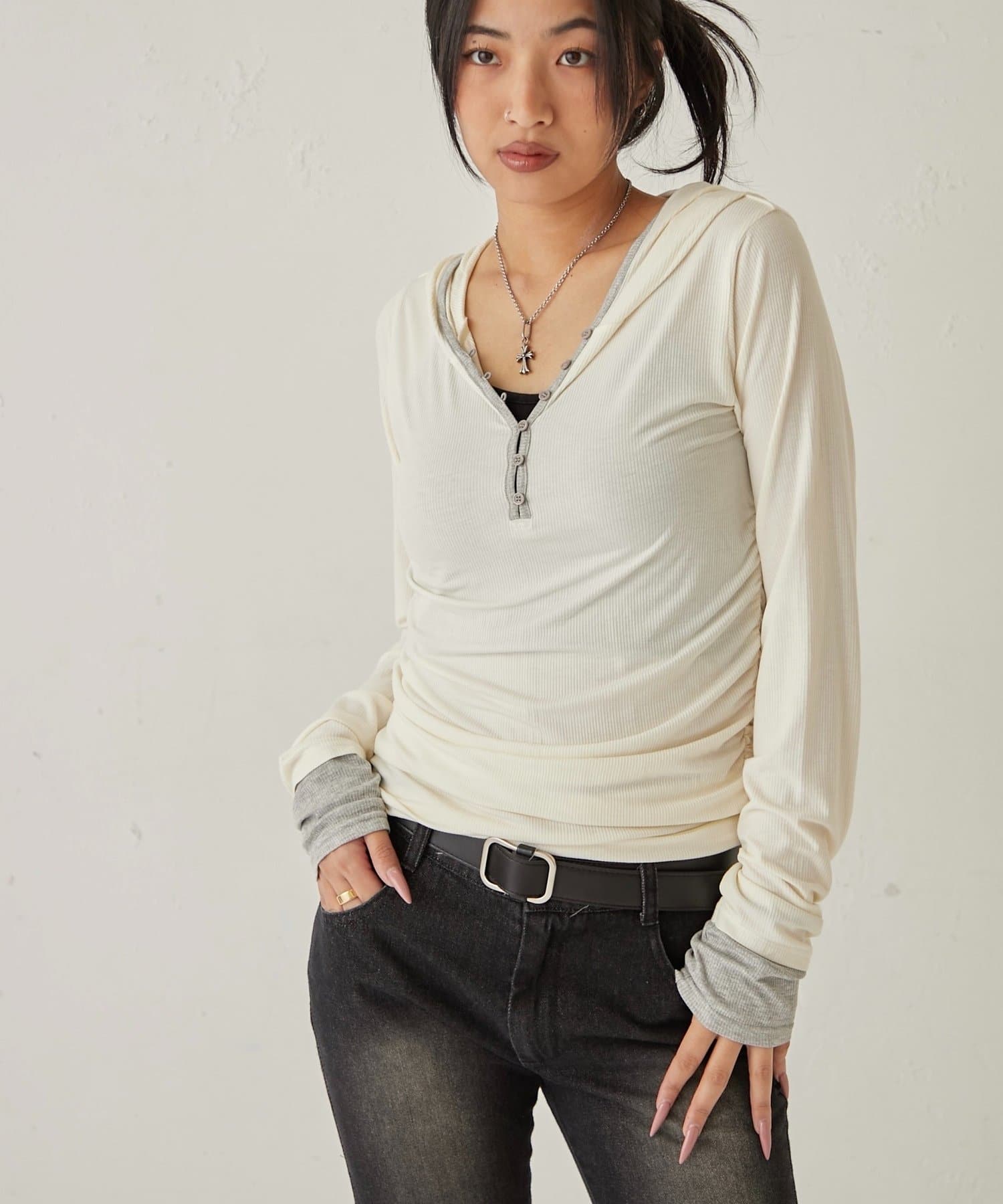 【WEB限定】TWO-TONE HENLEY HOODIE