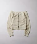 ・トレンドのオフショルデザインに、スタッズとフロントジップをあしらった、エッジの効いたデザイントップス。
