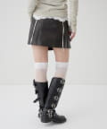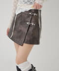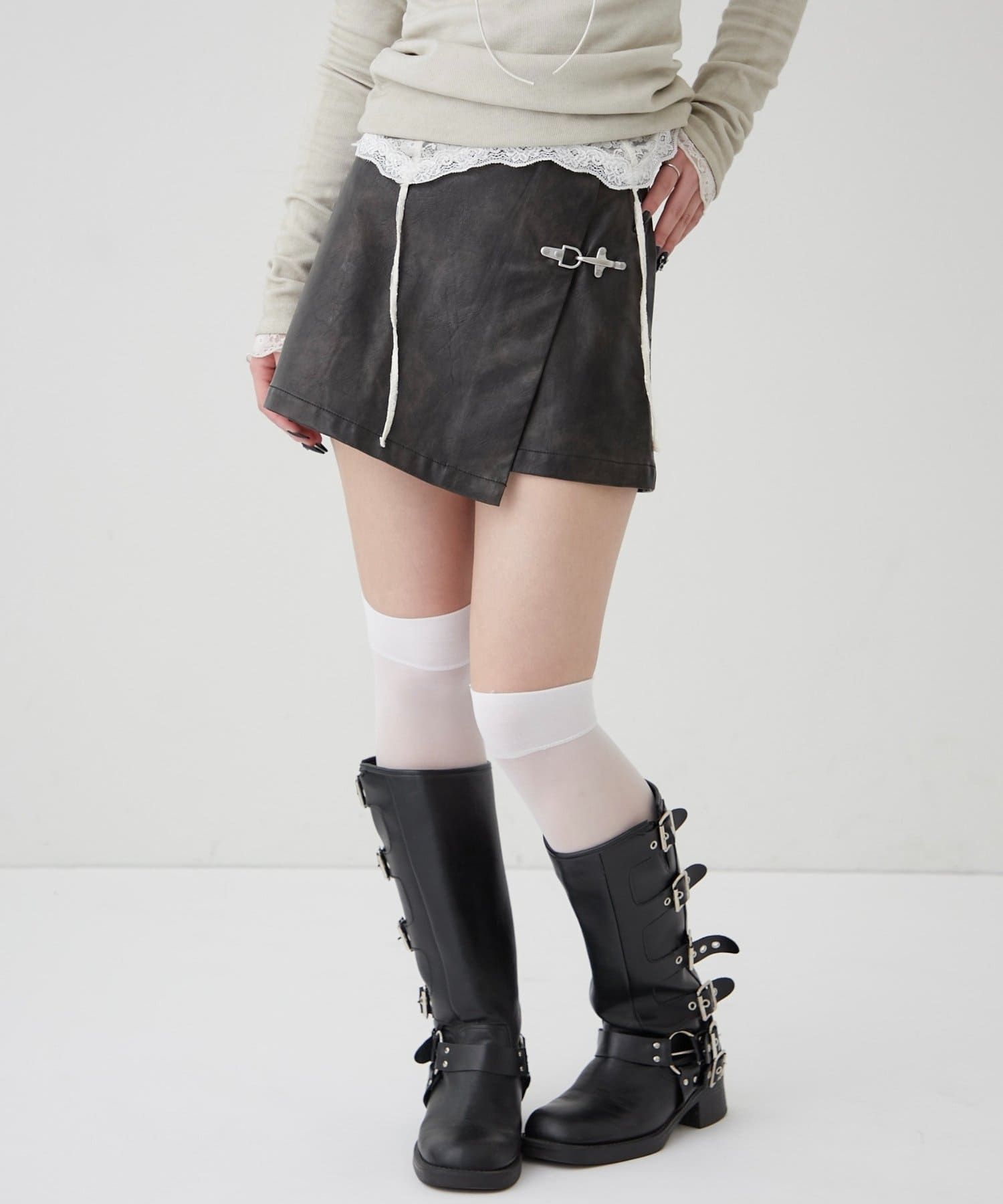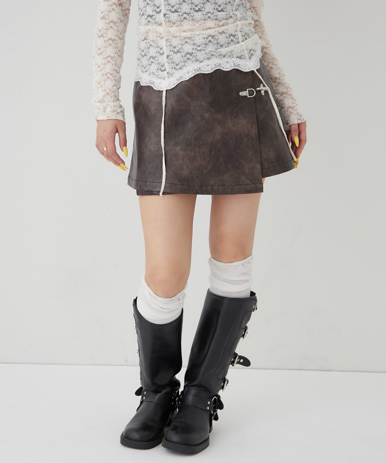 ・トレンドのファイヤーマンデザインのフェイクレザーでかっこよく仕上がった、ラップスカート。
