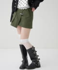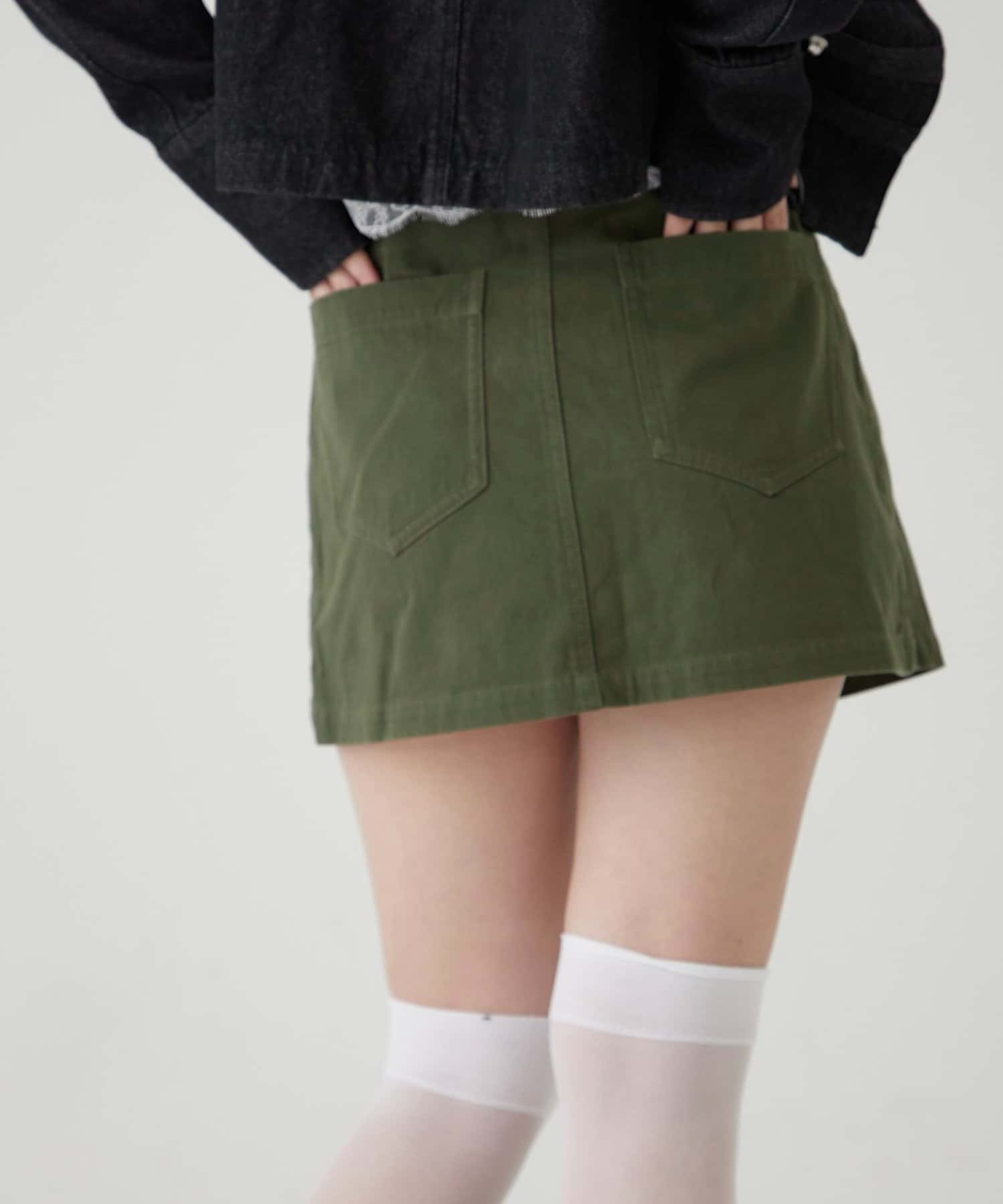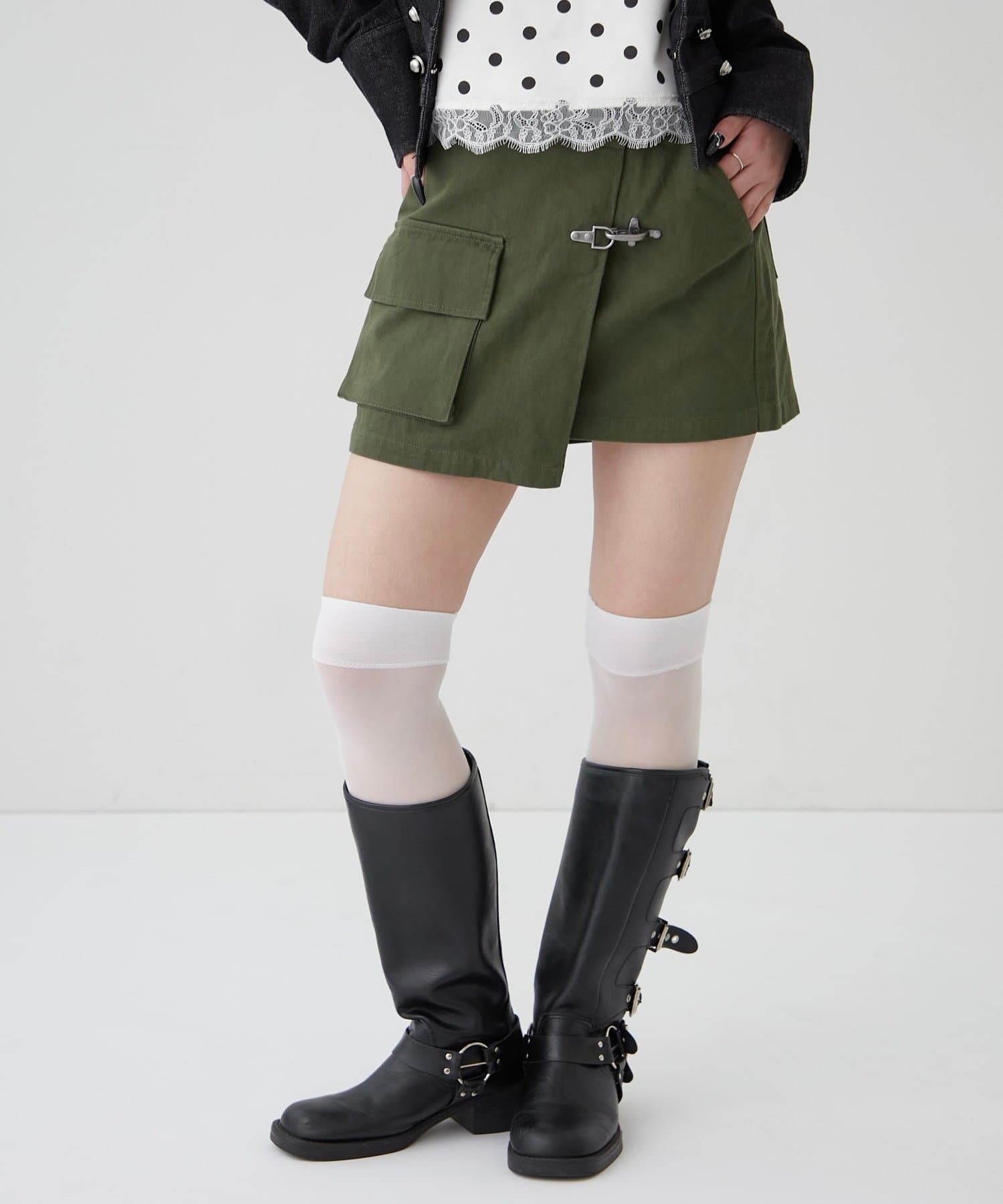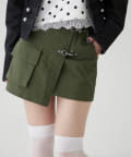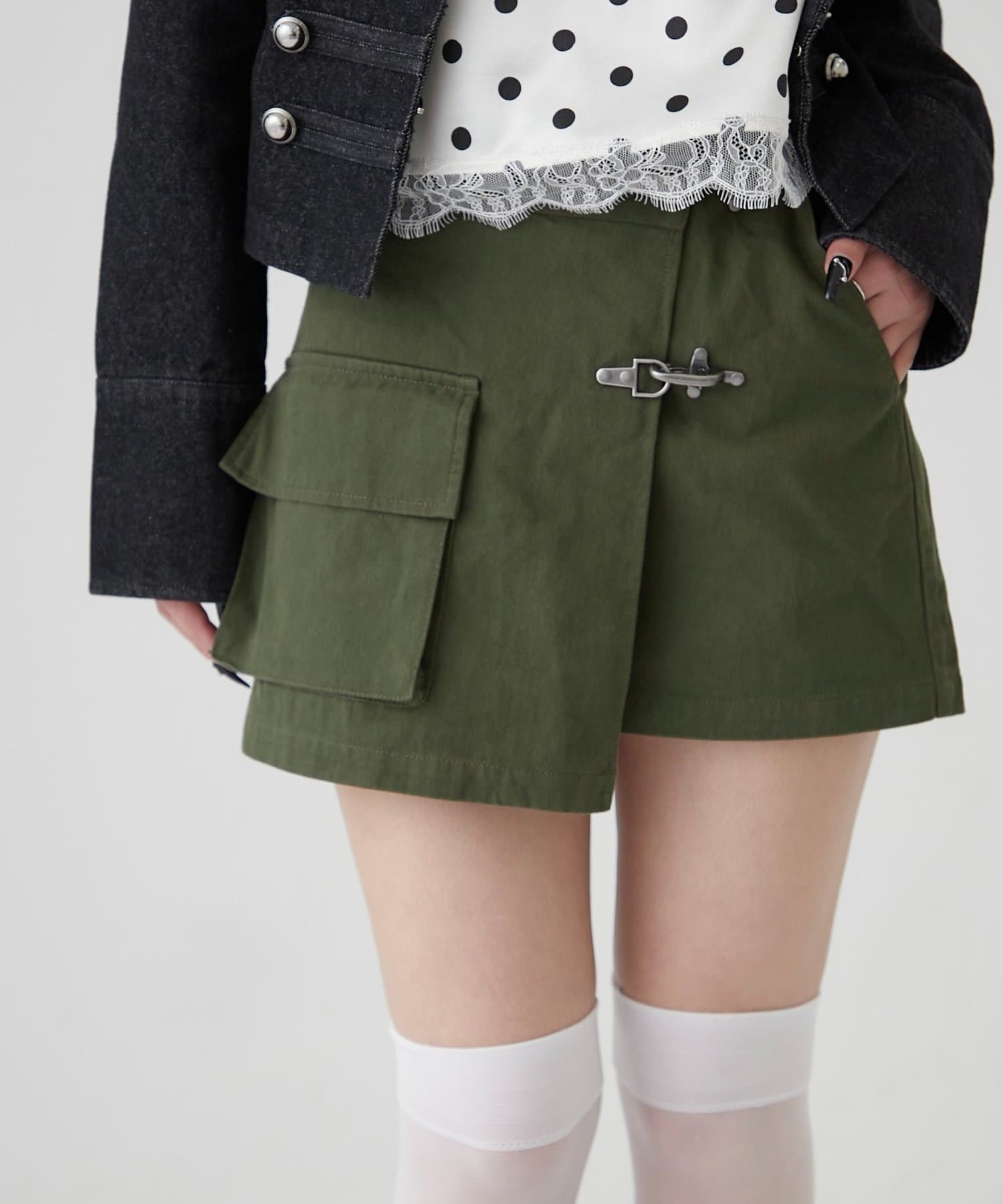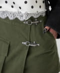 ・ファイヤーマンバックルが目を惹く、ミリタリーテイストのラップスカート。