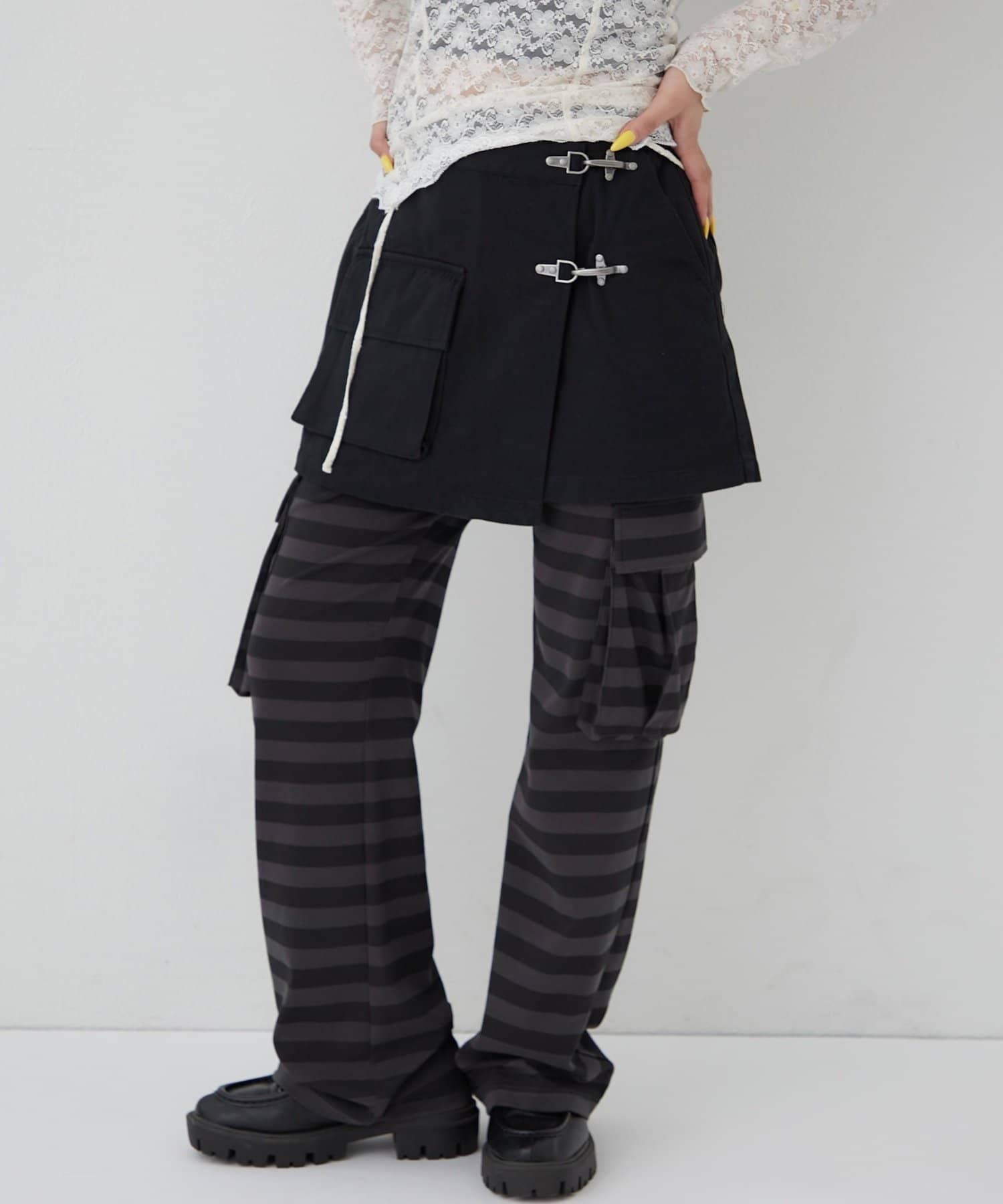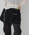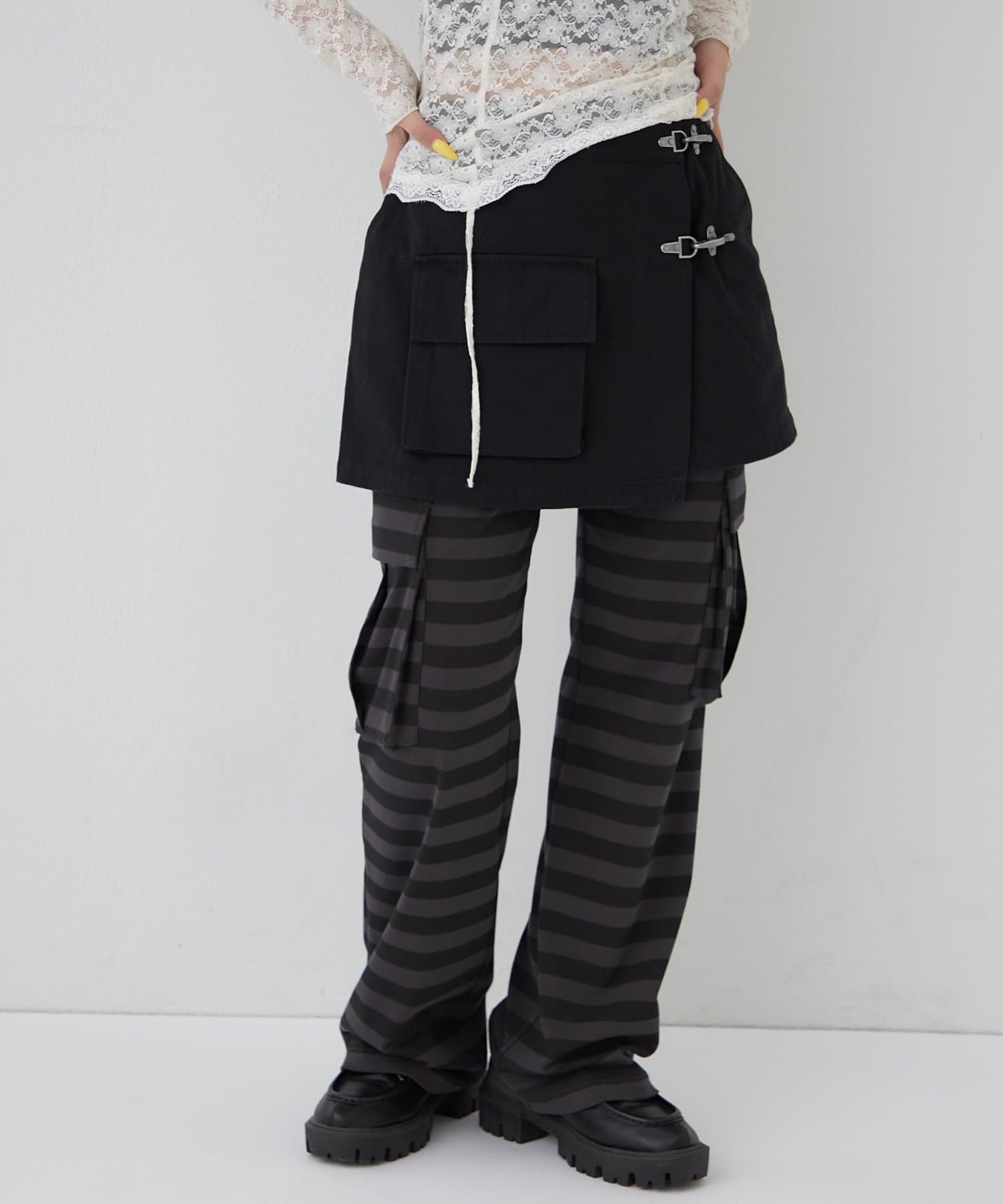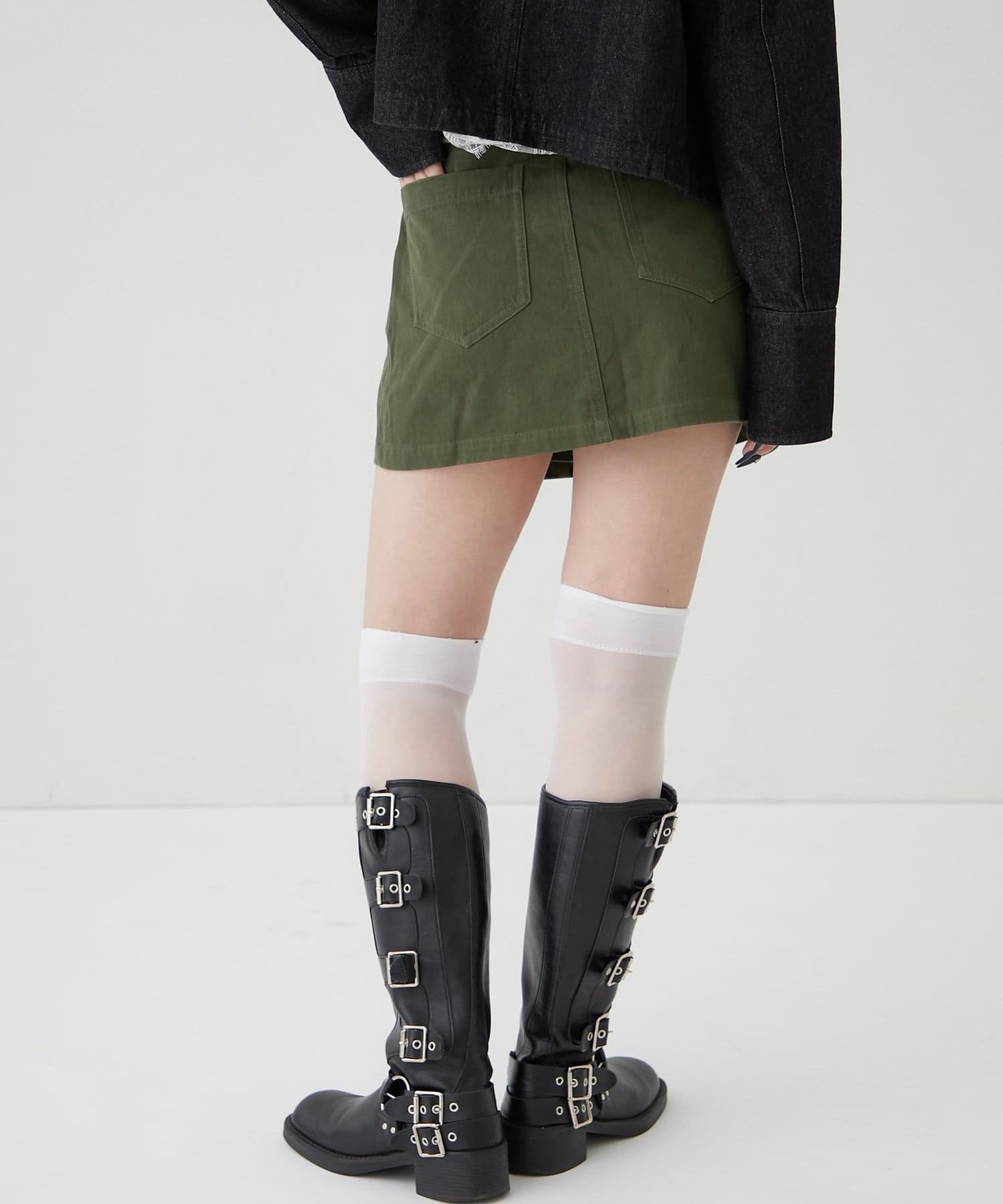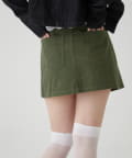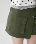 ・ファイヤーマンバックルが目を惹く、ミリタリーテイストのラップスカート。