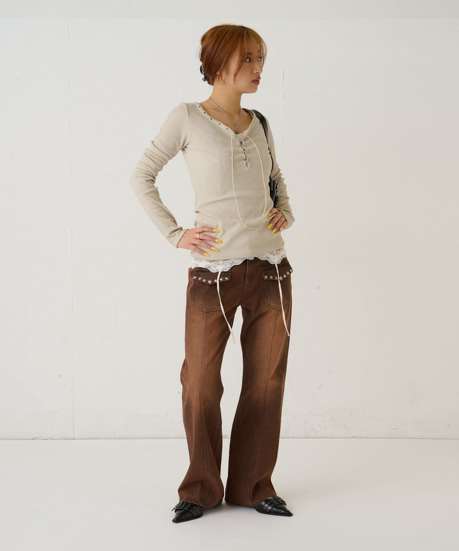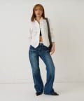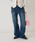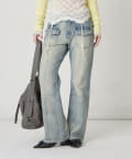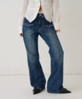 ・フレアデニムなのでオーバーサイズのトップスもコンパクトなサイズでも綺麗に着れます。