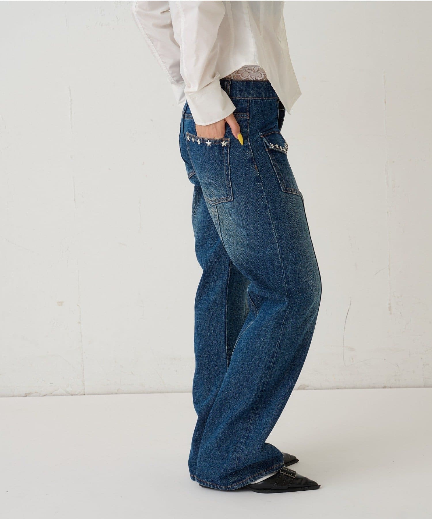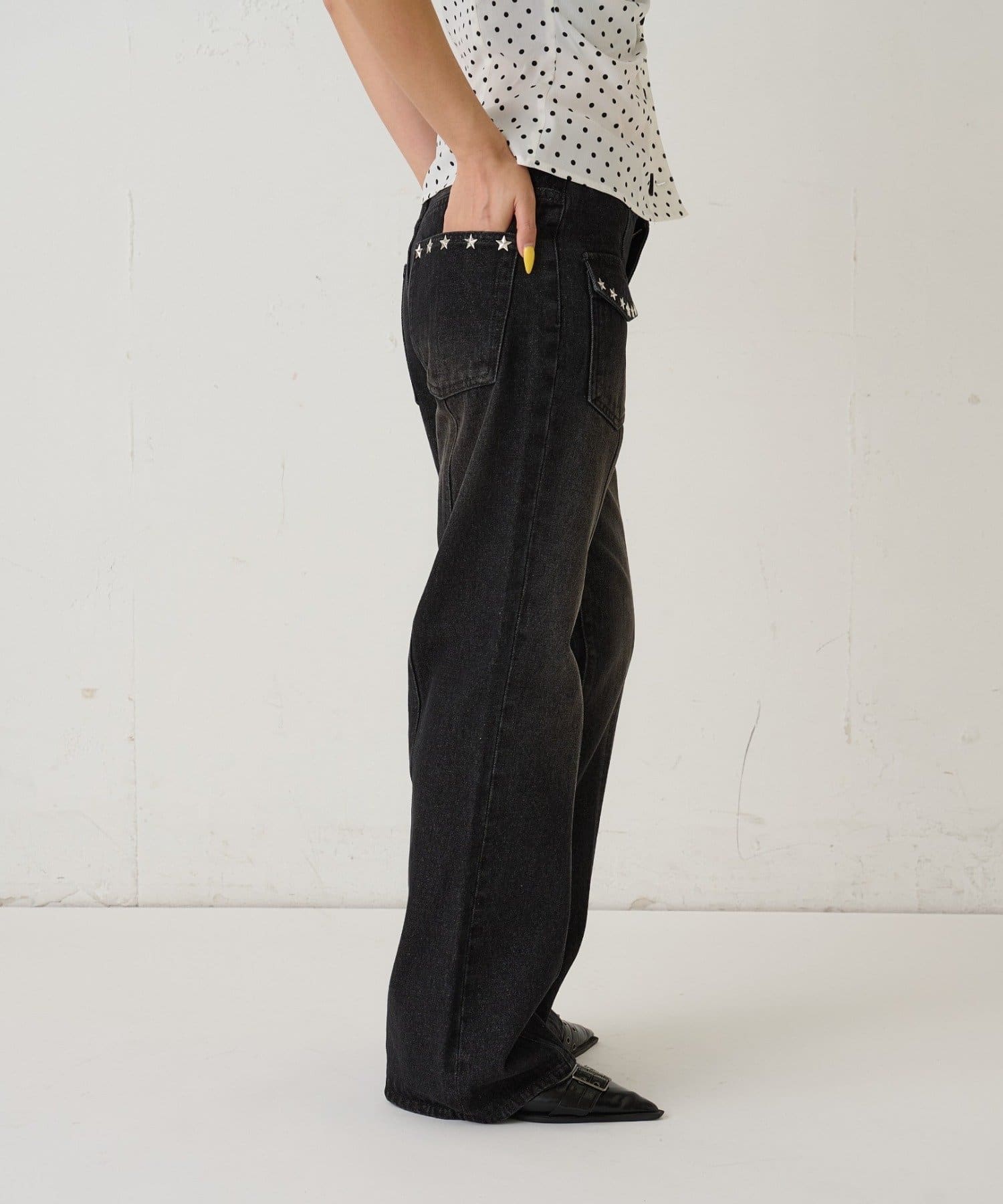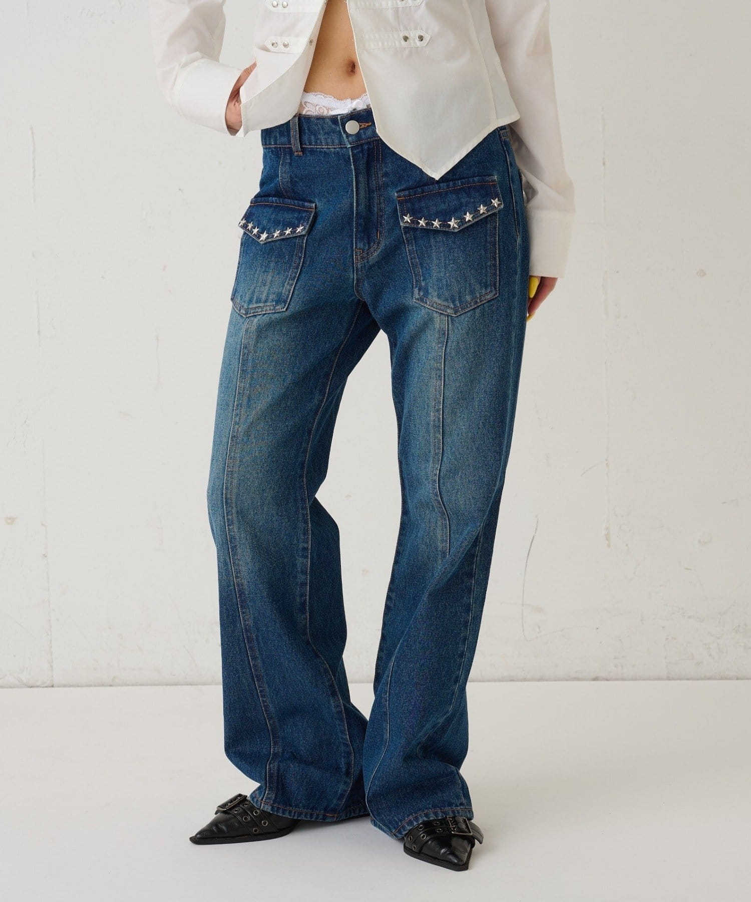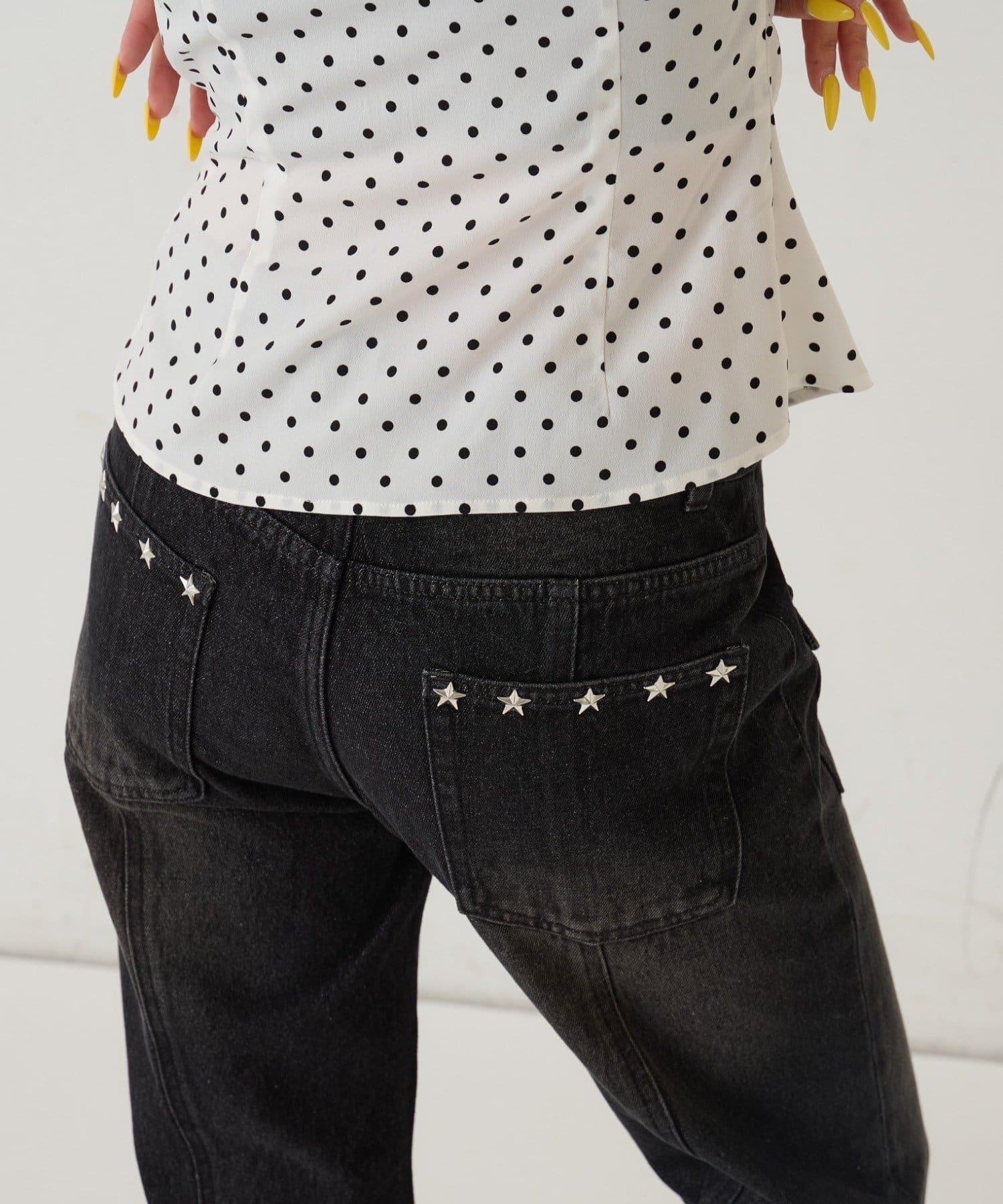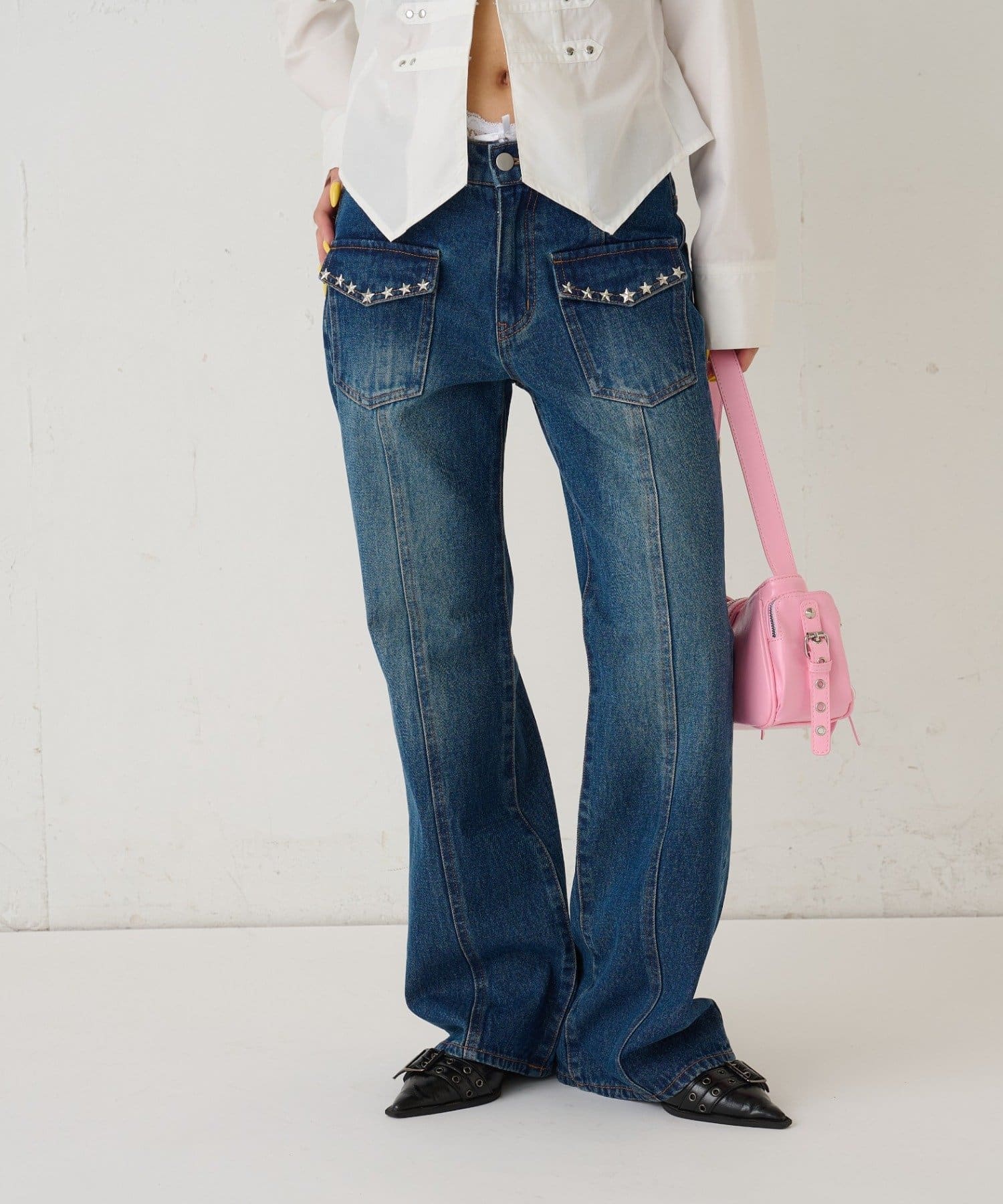 ・他にはないデザインでポケットには星型スタッズがあしらわれており、被らないのも嬉しいポイント。