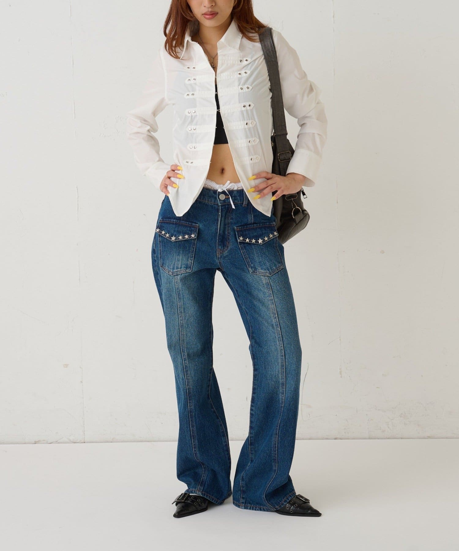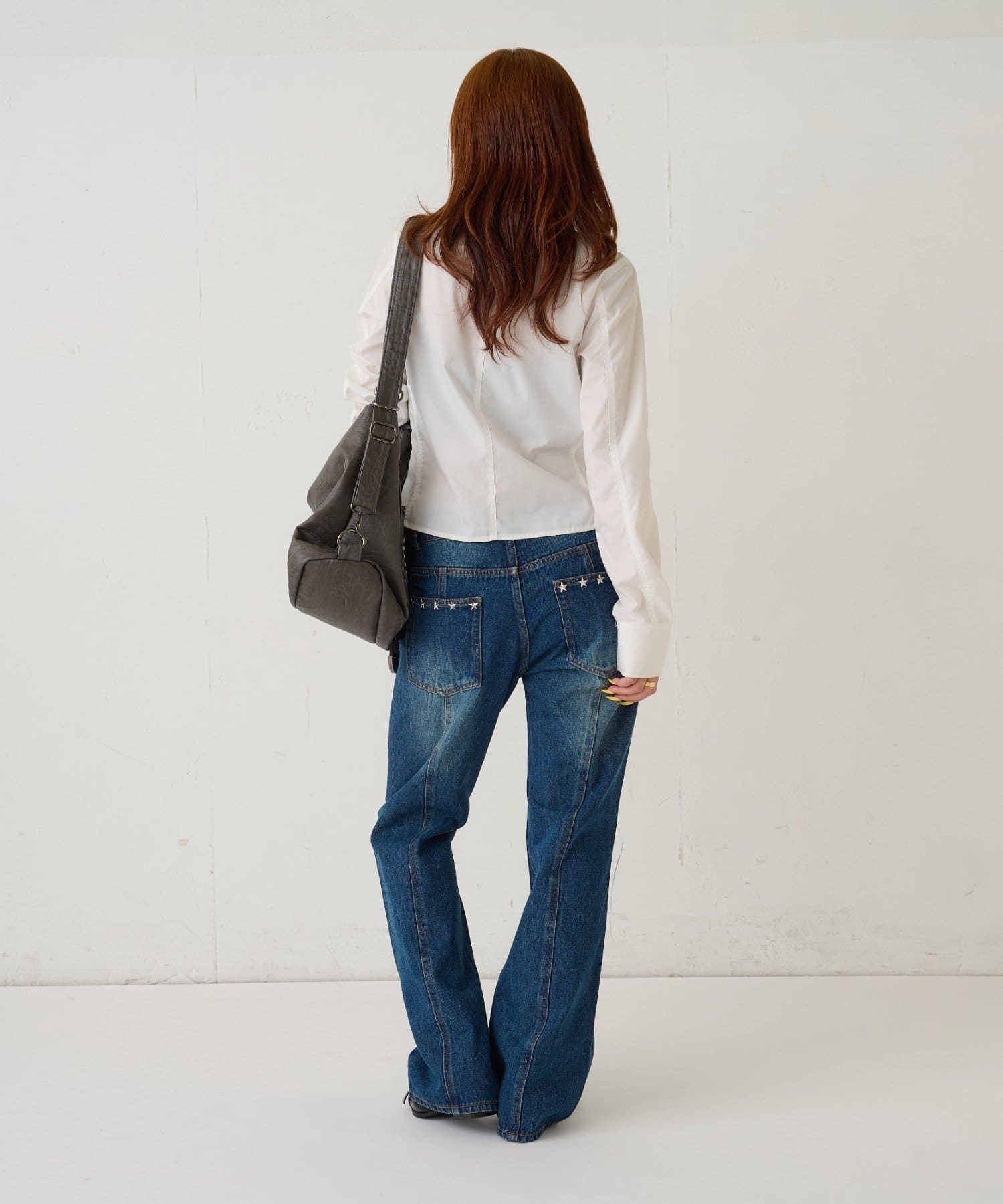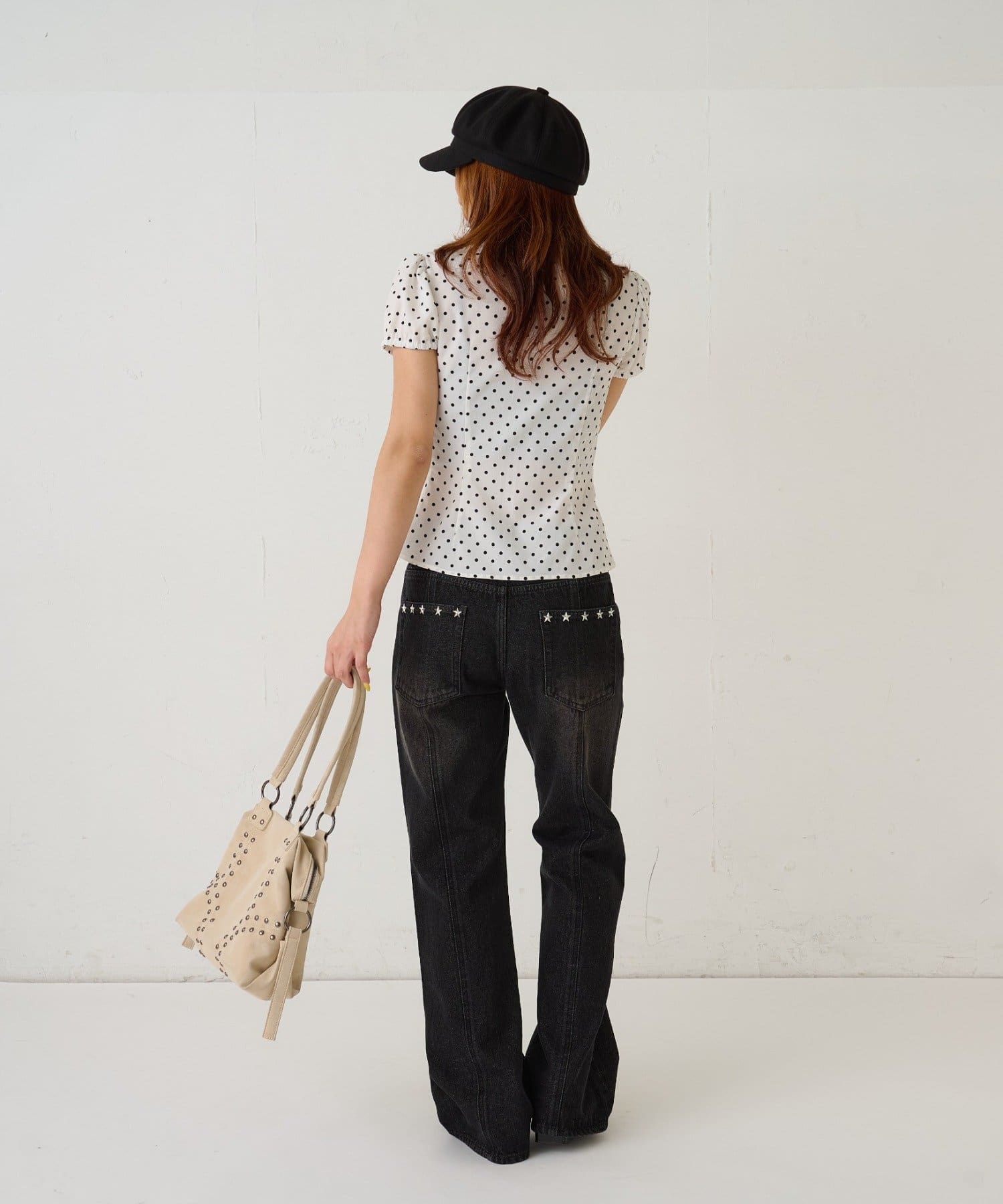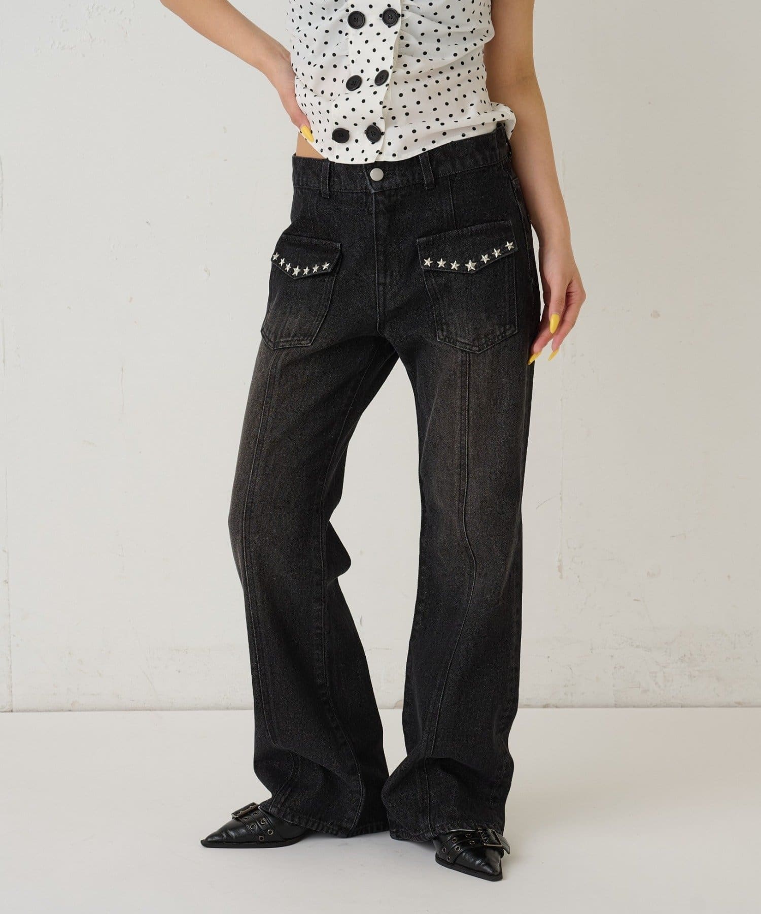・他にはないデザインでポケットには星型スタッズがあしらわれており、被らないのも嬉しいポイント。