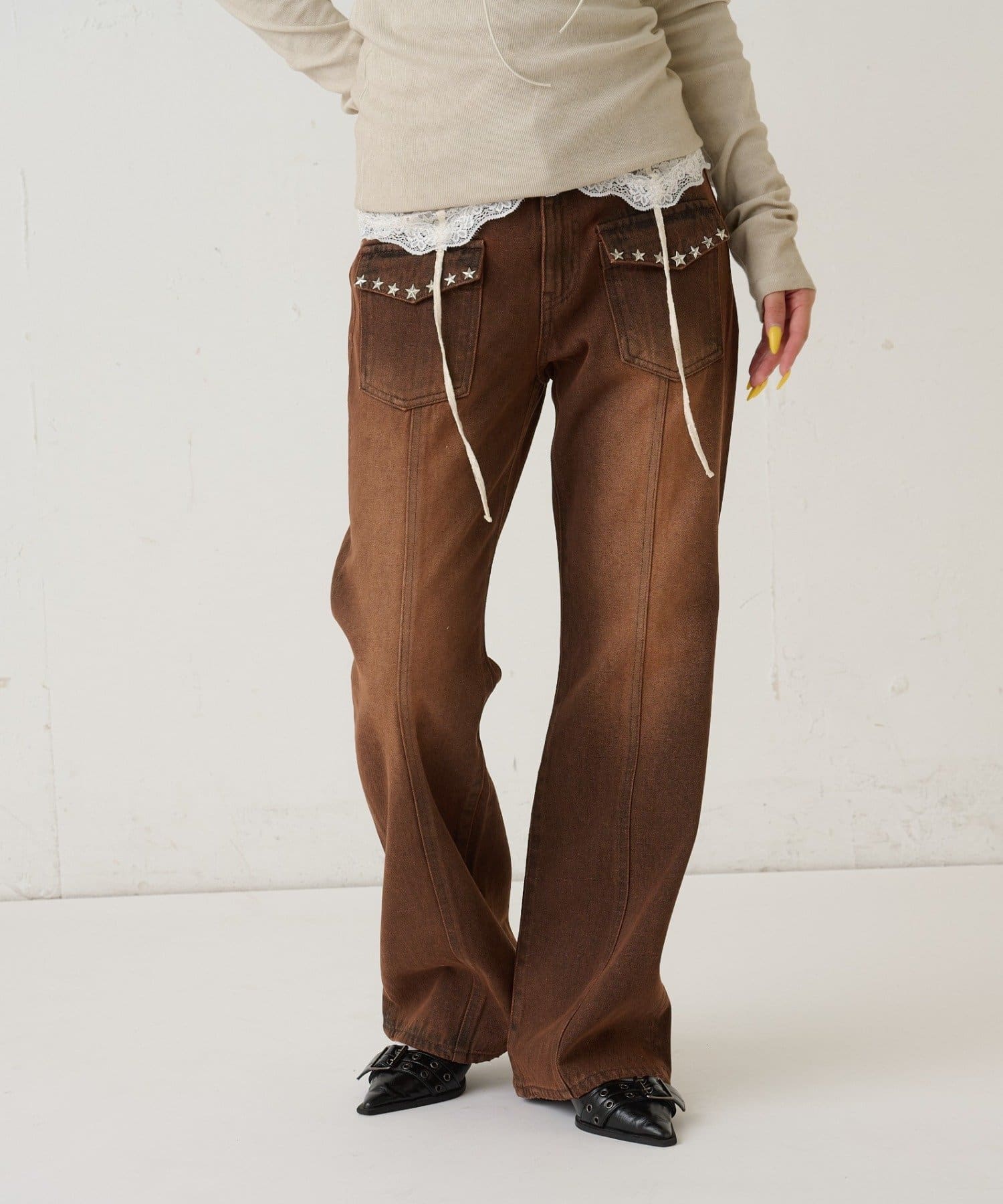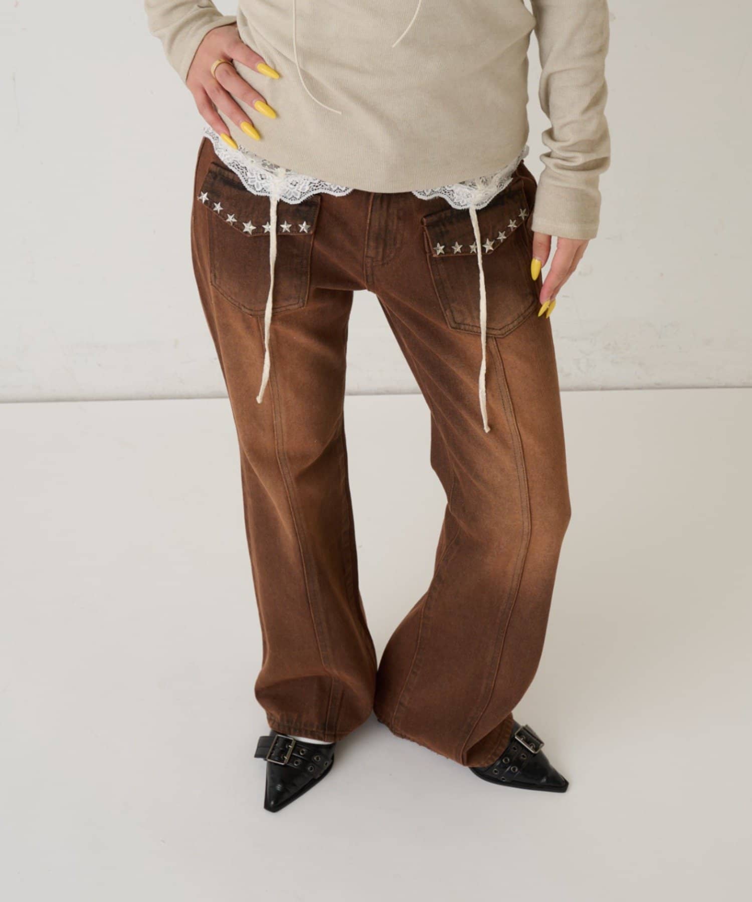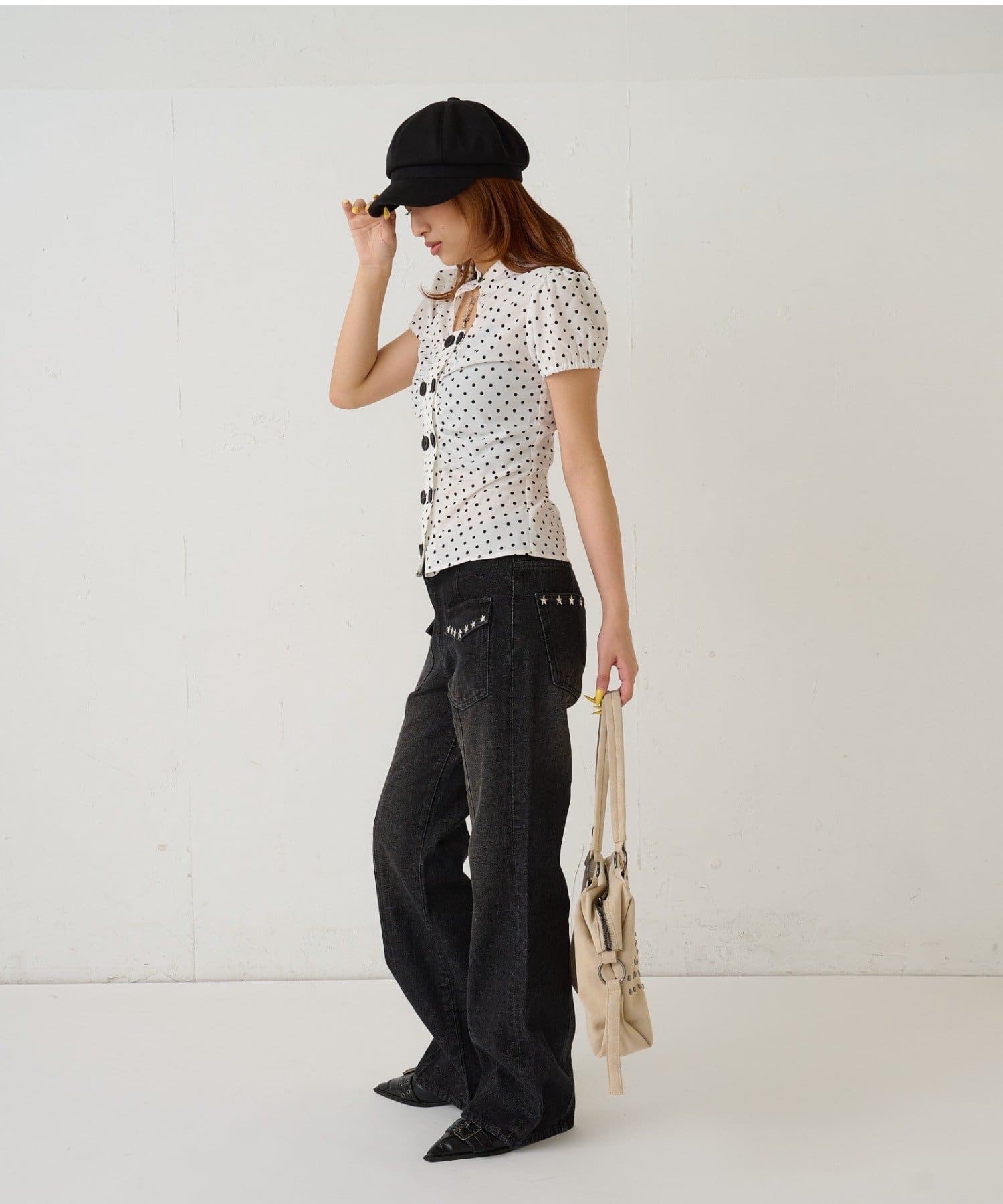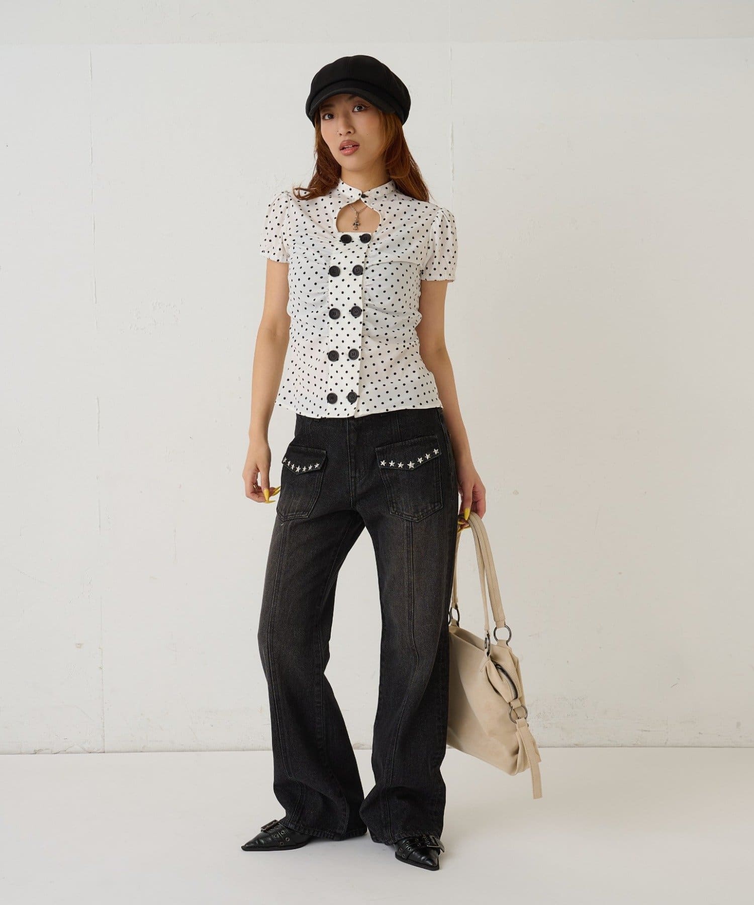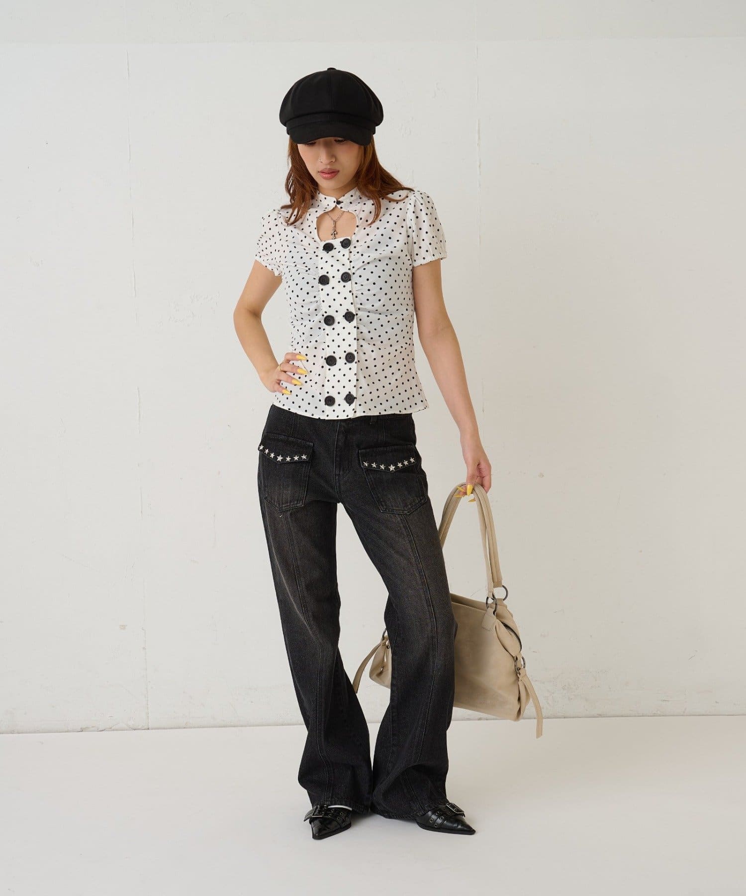 ・他にはないデザインでポケットには星型スタッズがあしらわれており、被らないのも嬉しいポイント。