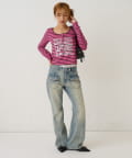 ・フレアデニムなのでオーバーサイズのトップスもコンパクトなサイズでも綺麗に着れます。