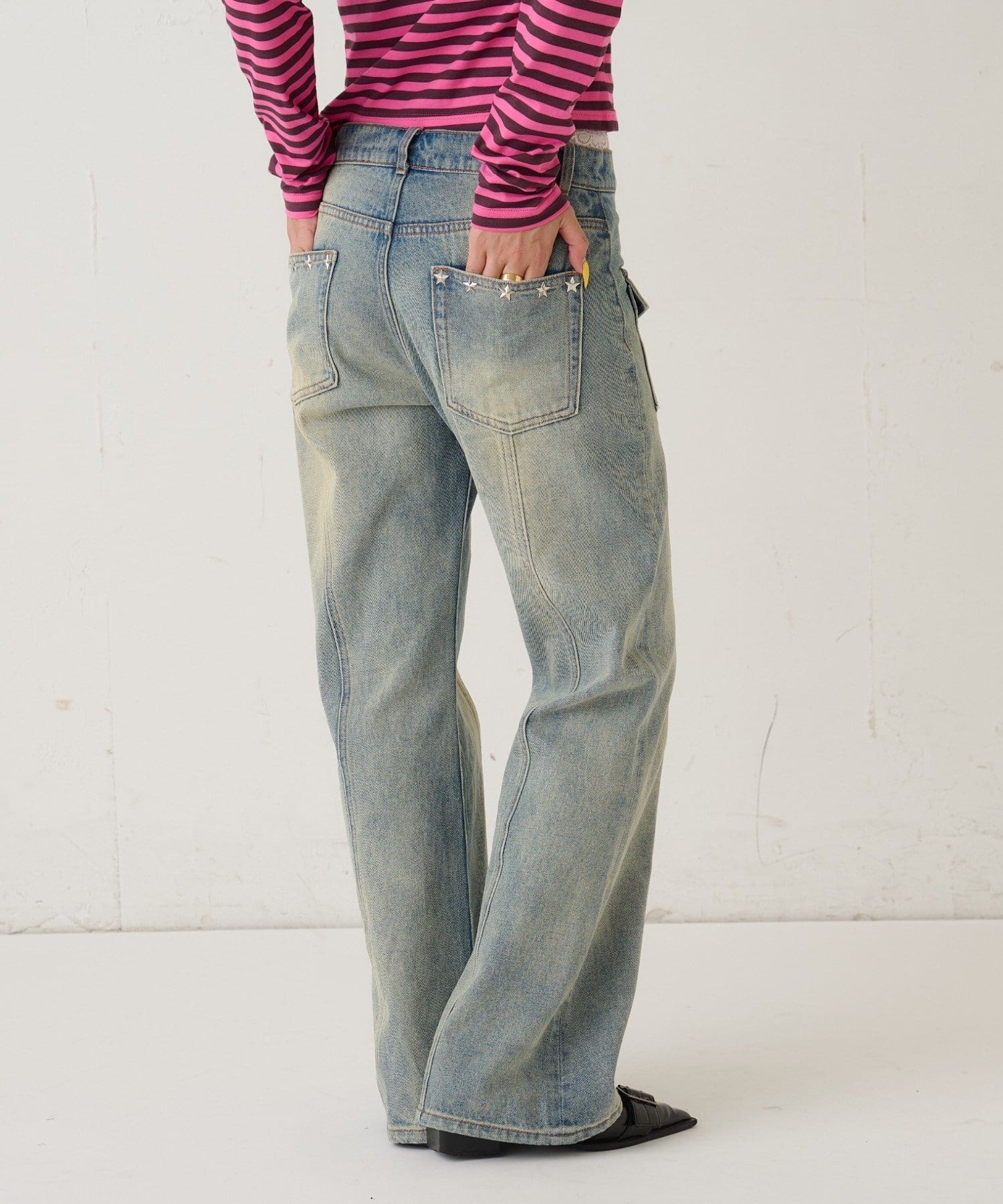 ・他にはないデザインでポケットには星型スタッズがあしらわれており、被らないのも嬉しいポイント。