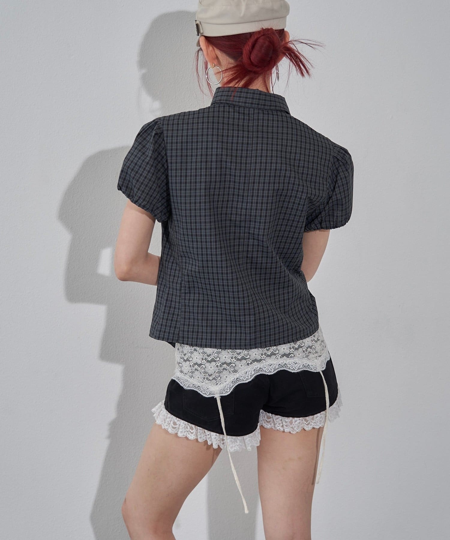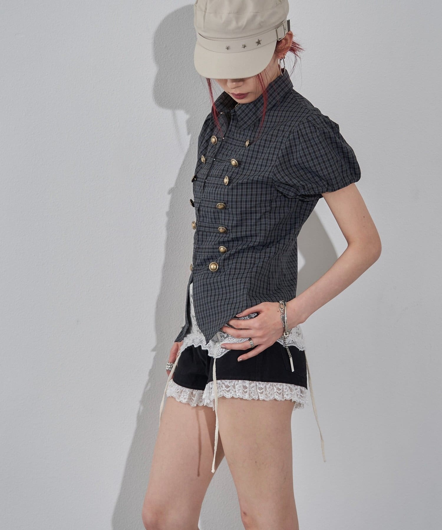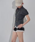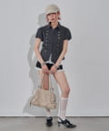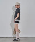 ・春夏っぽくミニ丈のブラウスにミニ丈のボトムスを合わせるとガーリーな印象に。