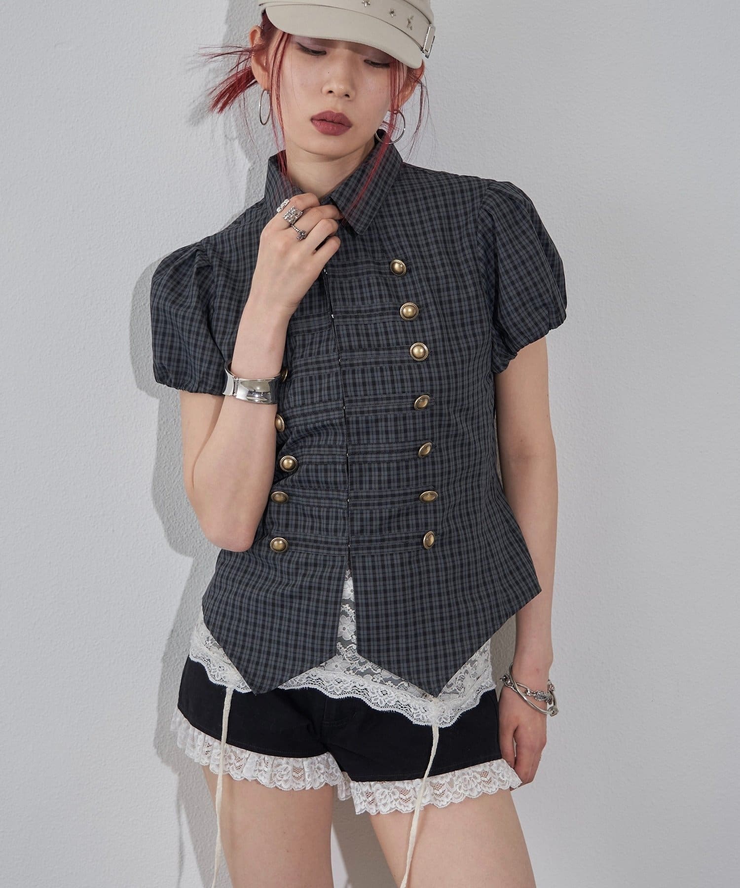 ・パフスリーブの甘さにナポレオンのクールな印象で一枚きるだけで甘辛ミックスコーデが完成!