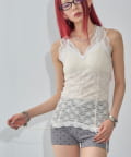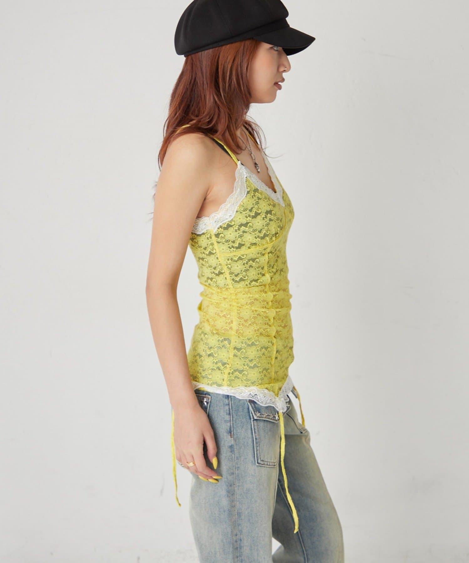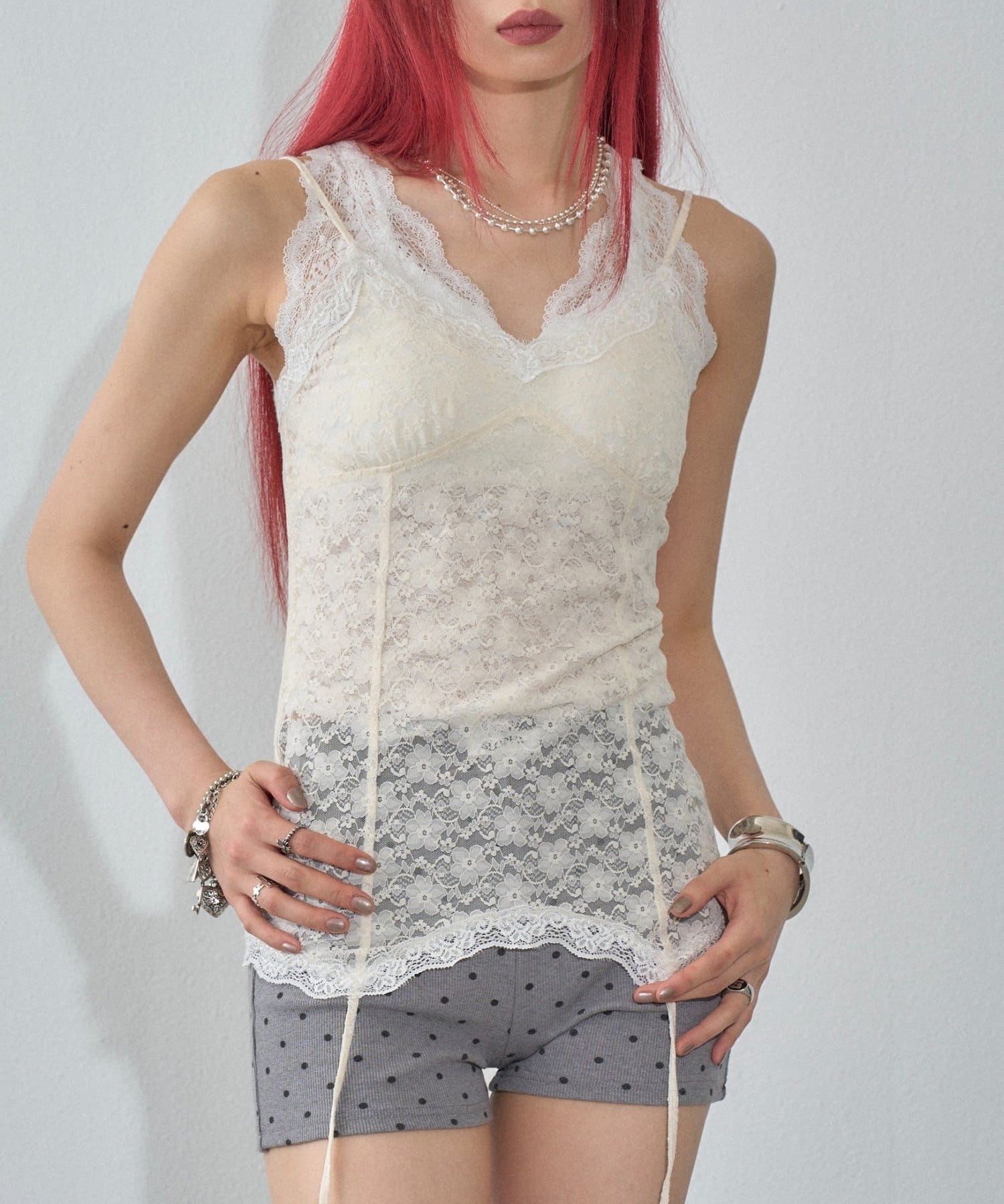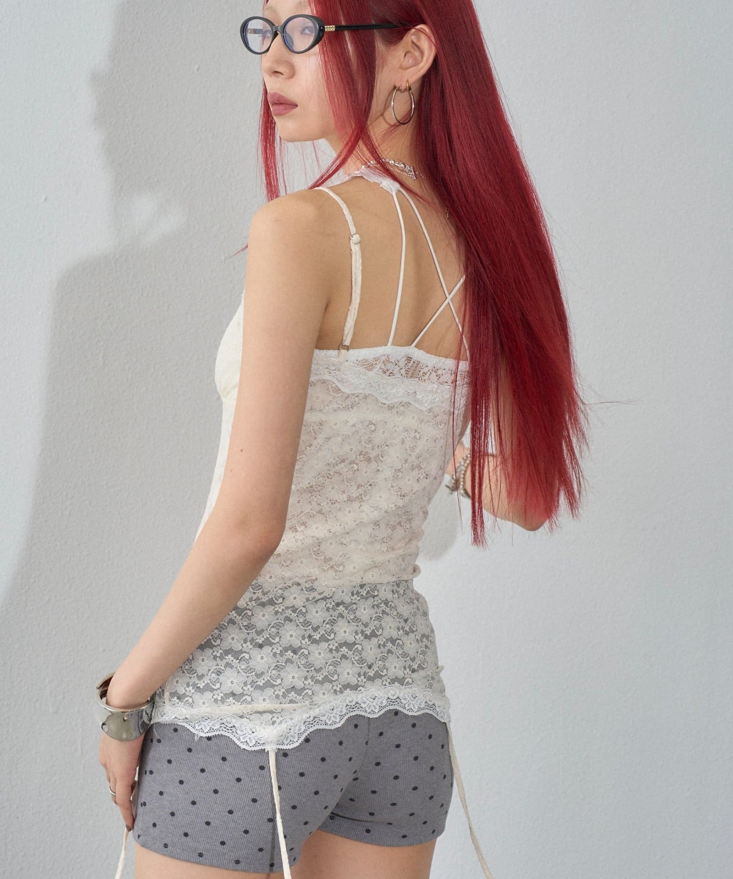 インナーとして着回しできるレースガーターキャミ