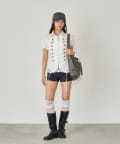 →TP/ナポレオンパフスリブラウス (オフホワイト)
