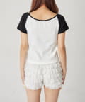 ・夏にピッタリな配色のラグラントップスで1枚で簡単にオシャレに決まるのが、嬉しいポイント。