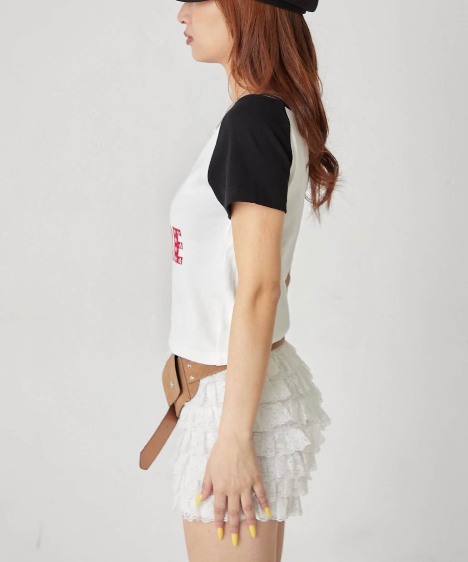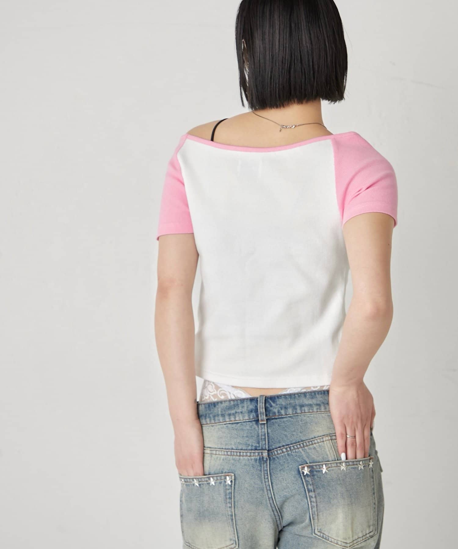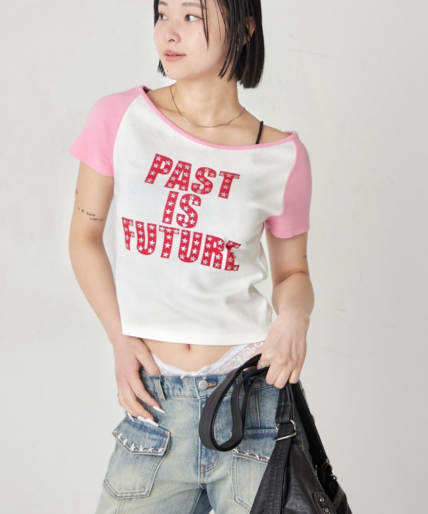 ストリートに着れるスタースタッズラグラン半袖トップス!