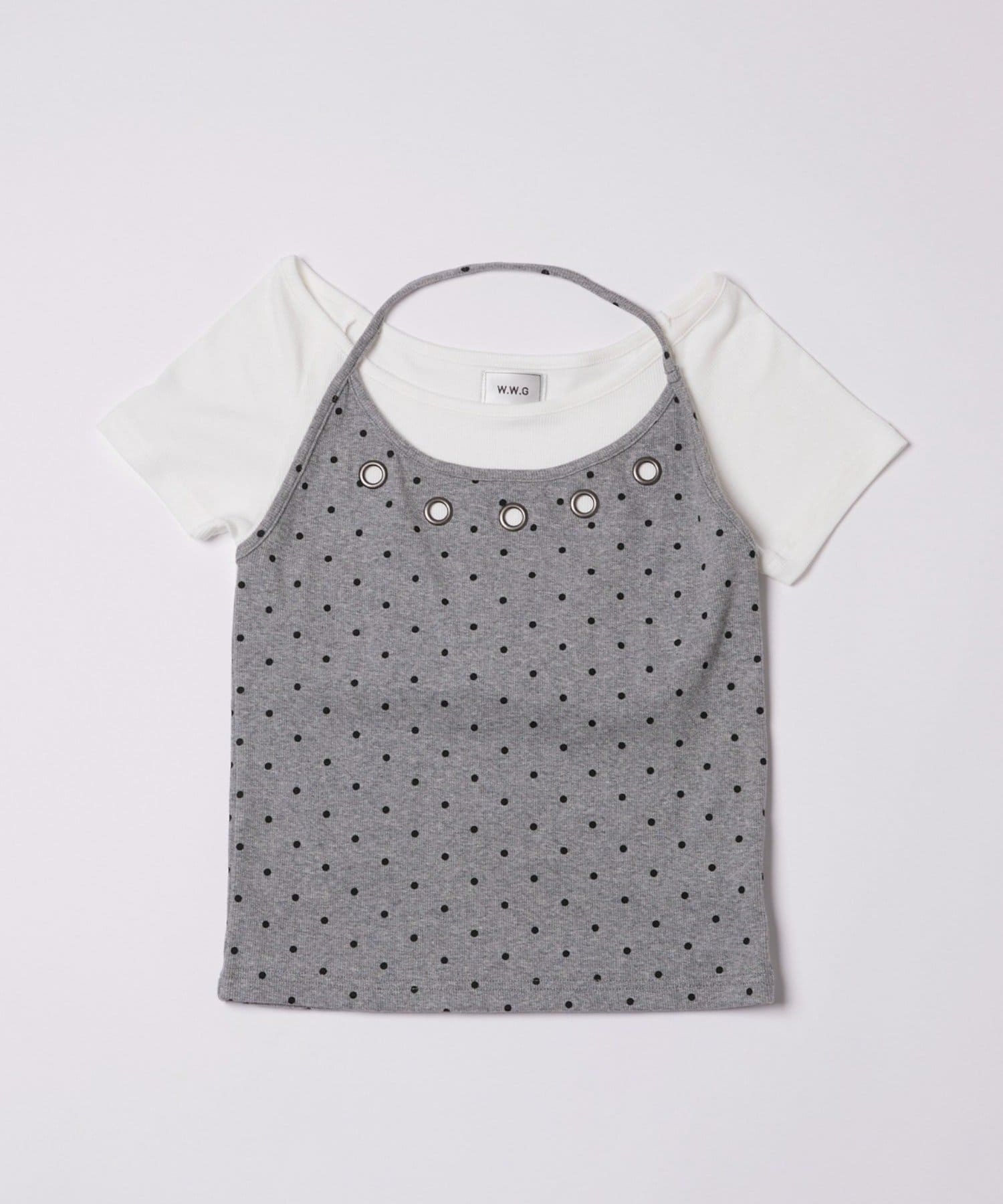 WHO’S WHO gallery(フーズフーギャラリー) 【WEB限定】ハトメホルターレイヤード半袖トップス(ドット/無地)