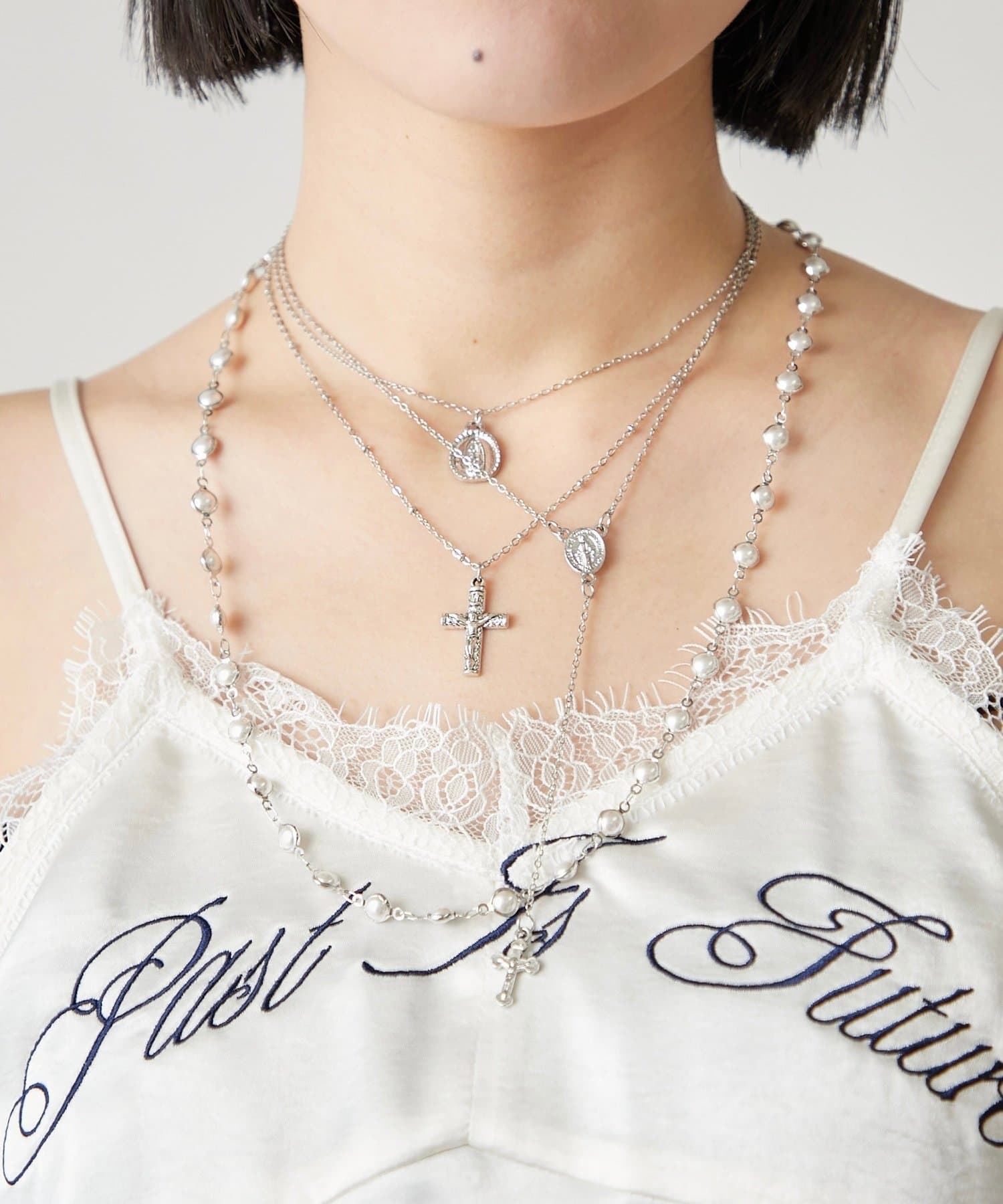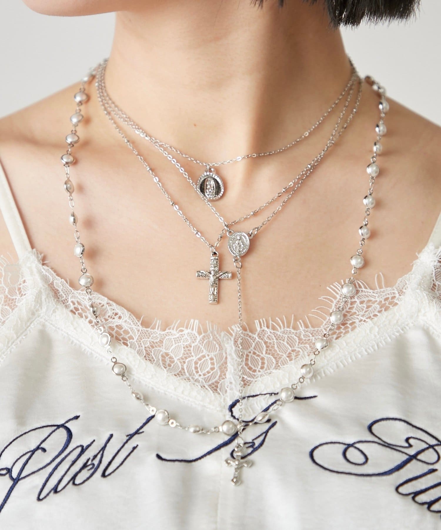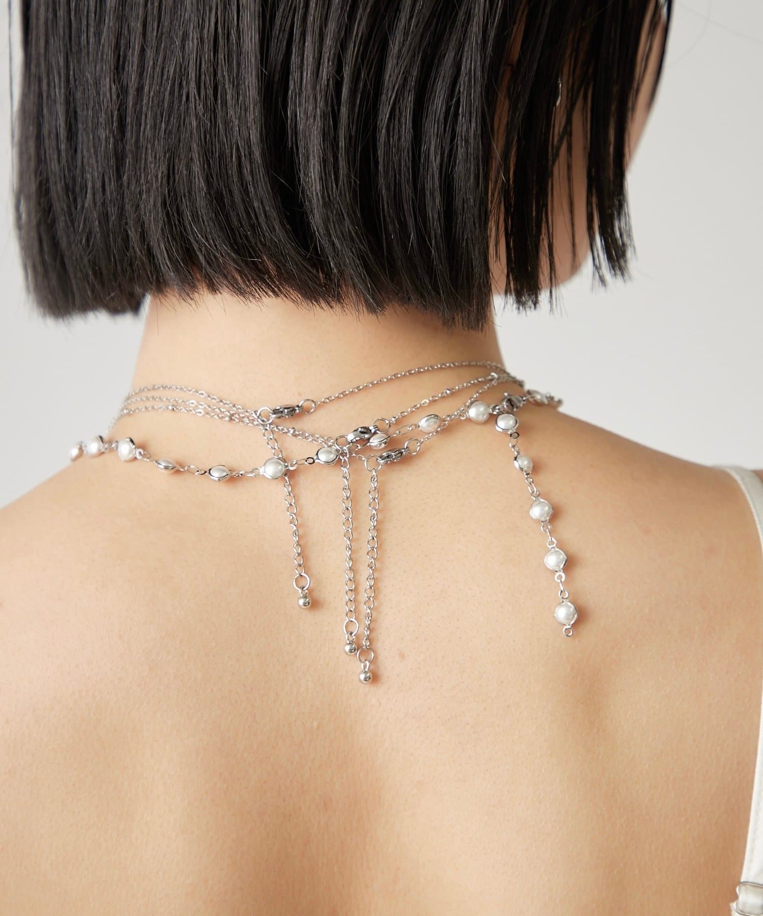 ・華奢なデザインのネックレスが連なっている高級感のあるネックレス。