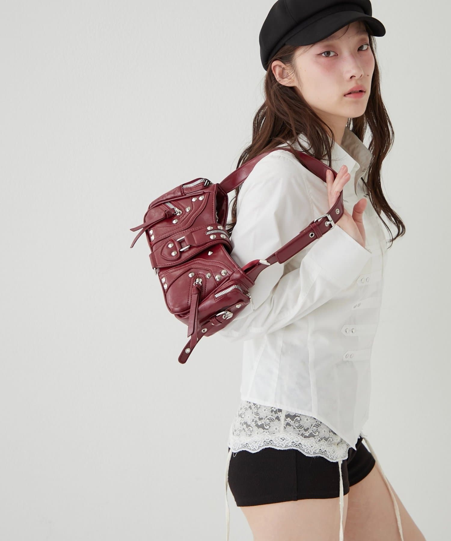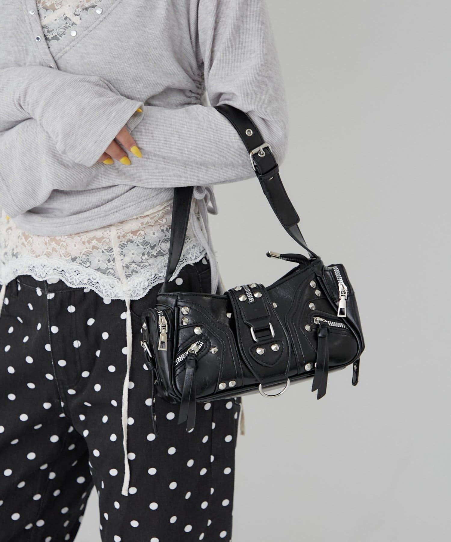 【WEB限定】スタッズジップショルダーバッグ