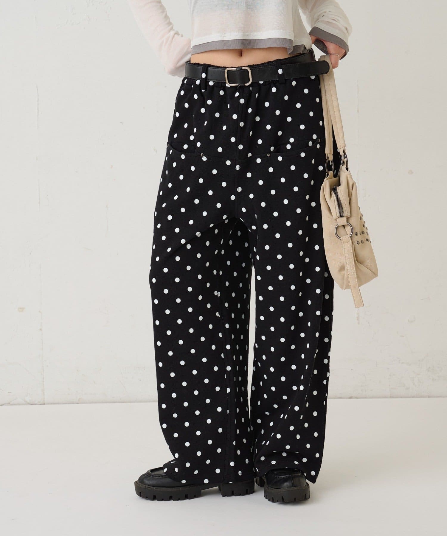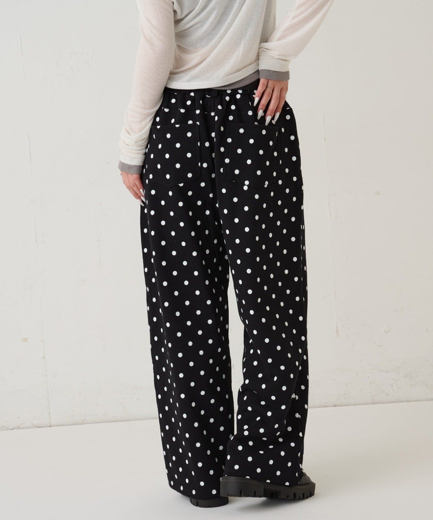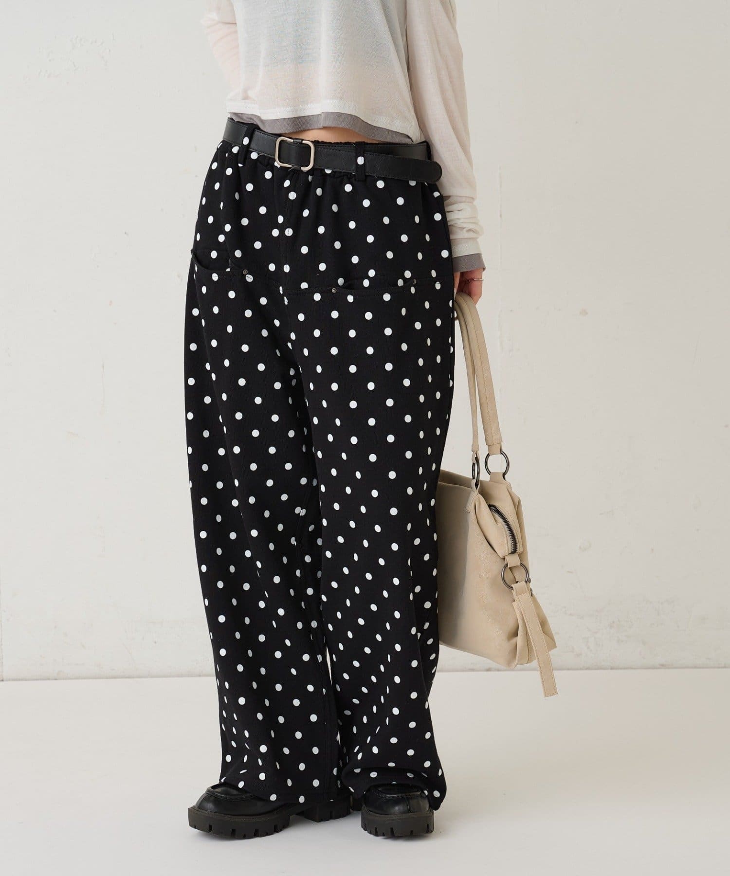 ・シンプルなトップスで合わせて着るとドットが目立ってパンツが主役のコーディネートになります。