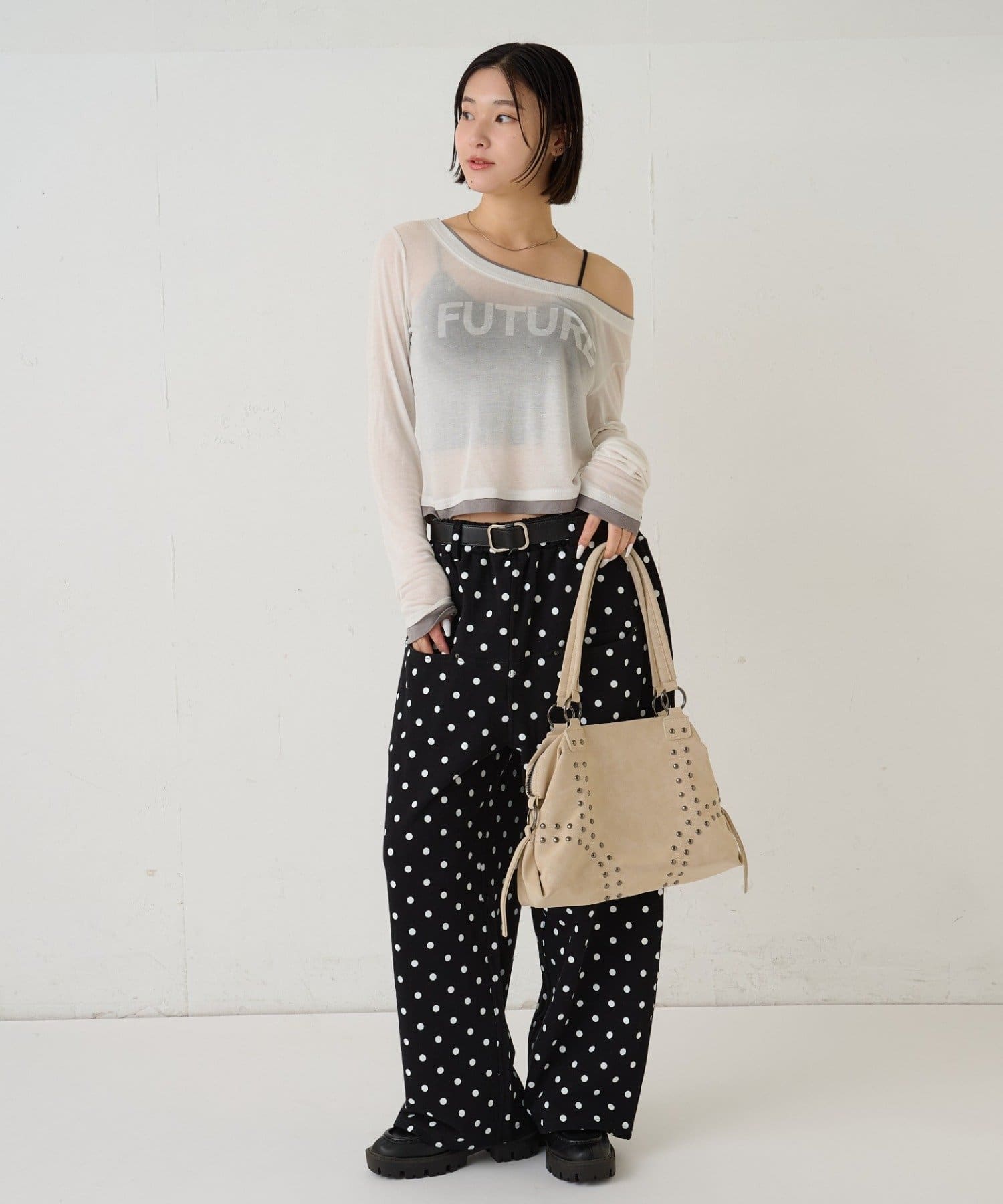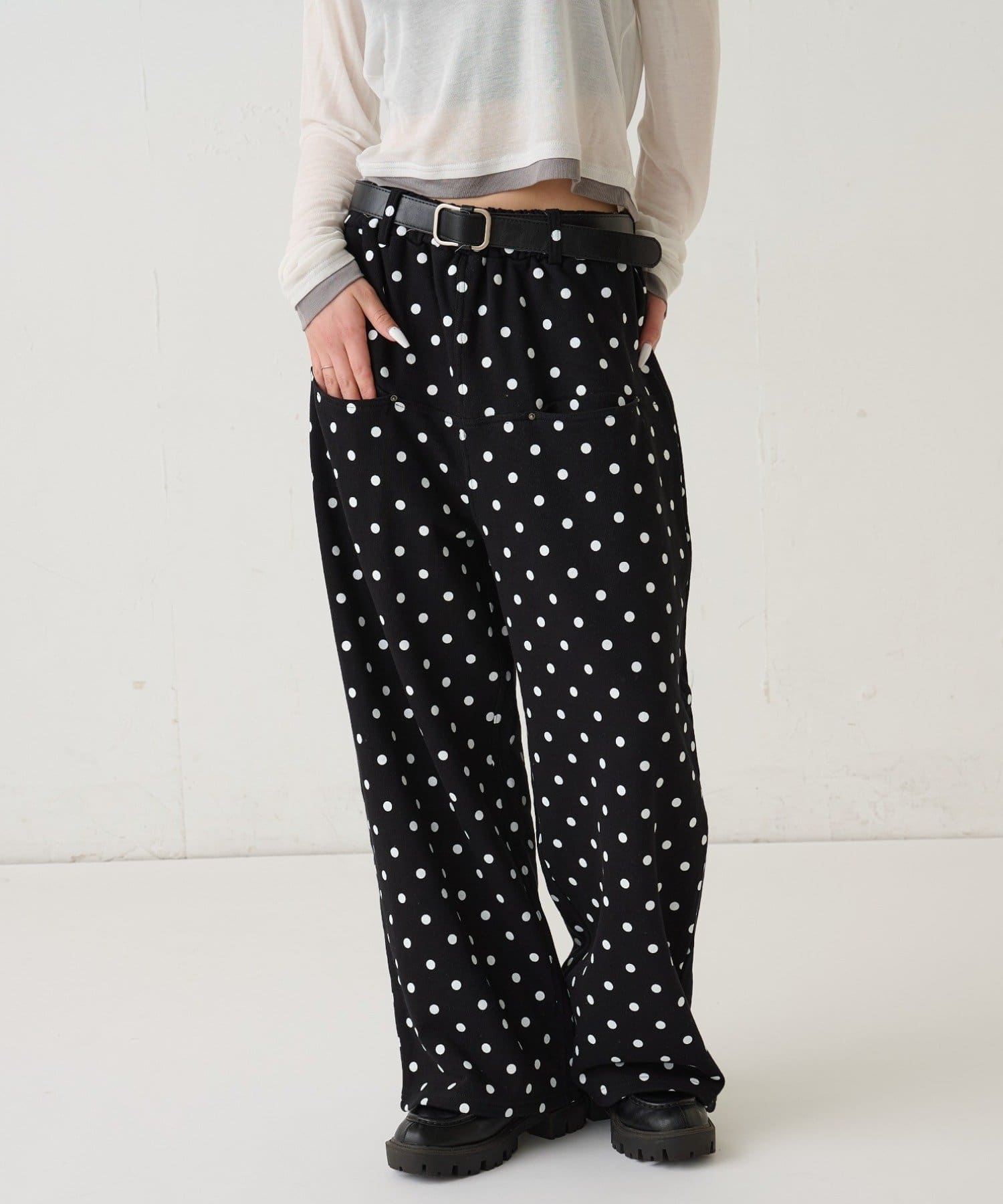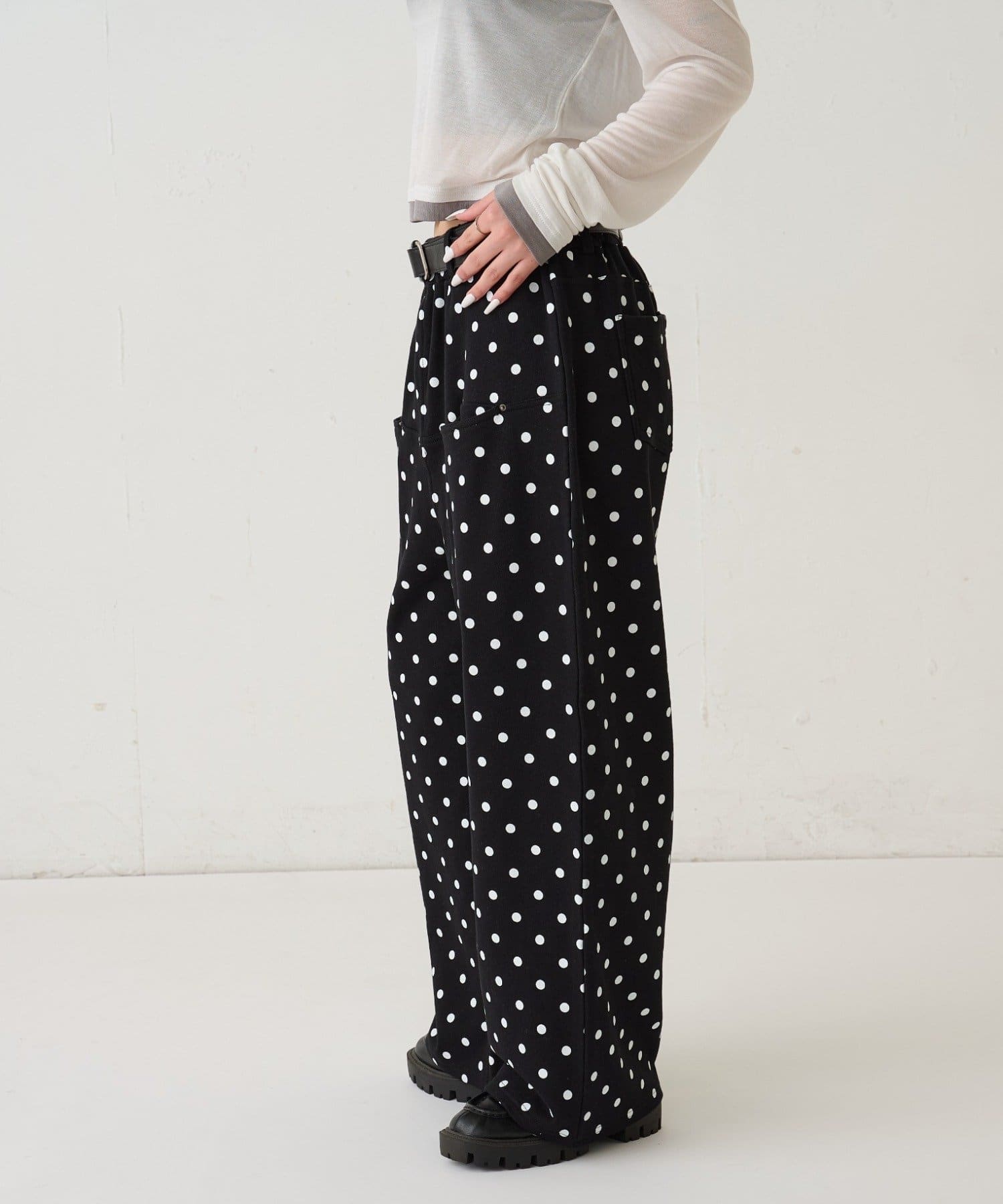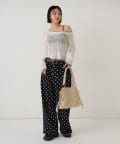 ・シンプルなトップスで合わせて着るとドットが目立ってパンツが主役のコーディネートになります。