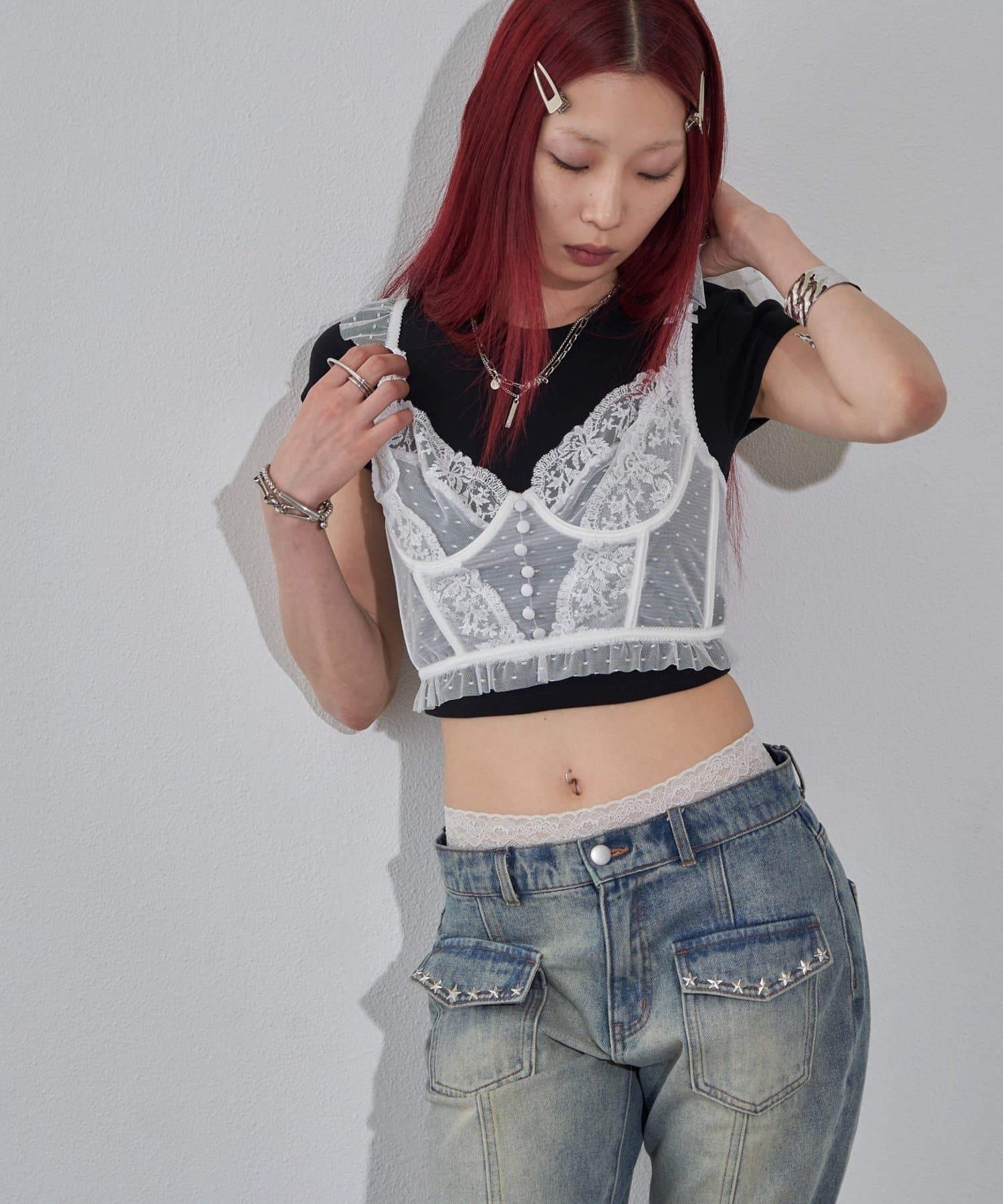 ・程よい透け感で女性らしさたっぷりのレース仕様。