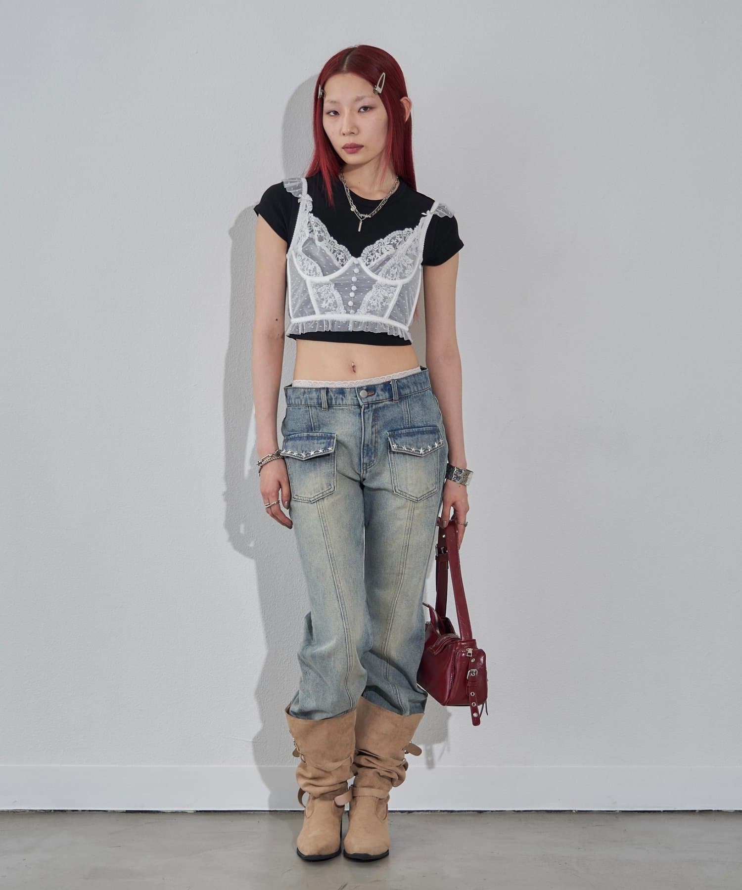 ●デリケートなレース素材を使用しております。表面の粗い物いに擦ったりバッグやベルト、先の鋭い物に引っ掛けますとささくれや糸が浮き易く、切れる事もあります。お取り扱いには十分ご注意ください。アイテムサイズ