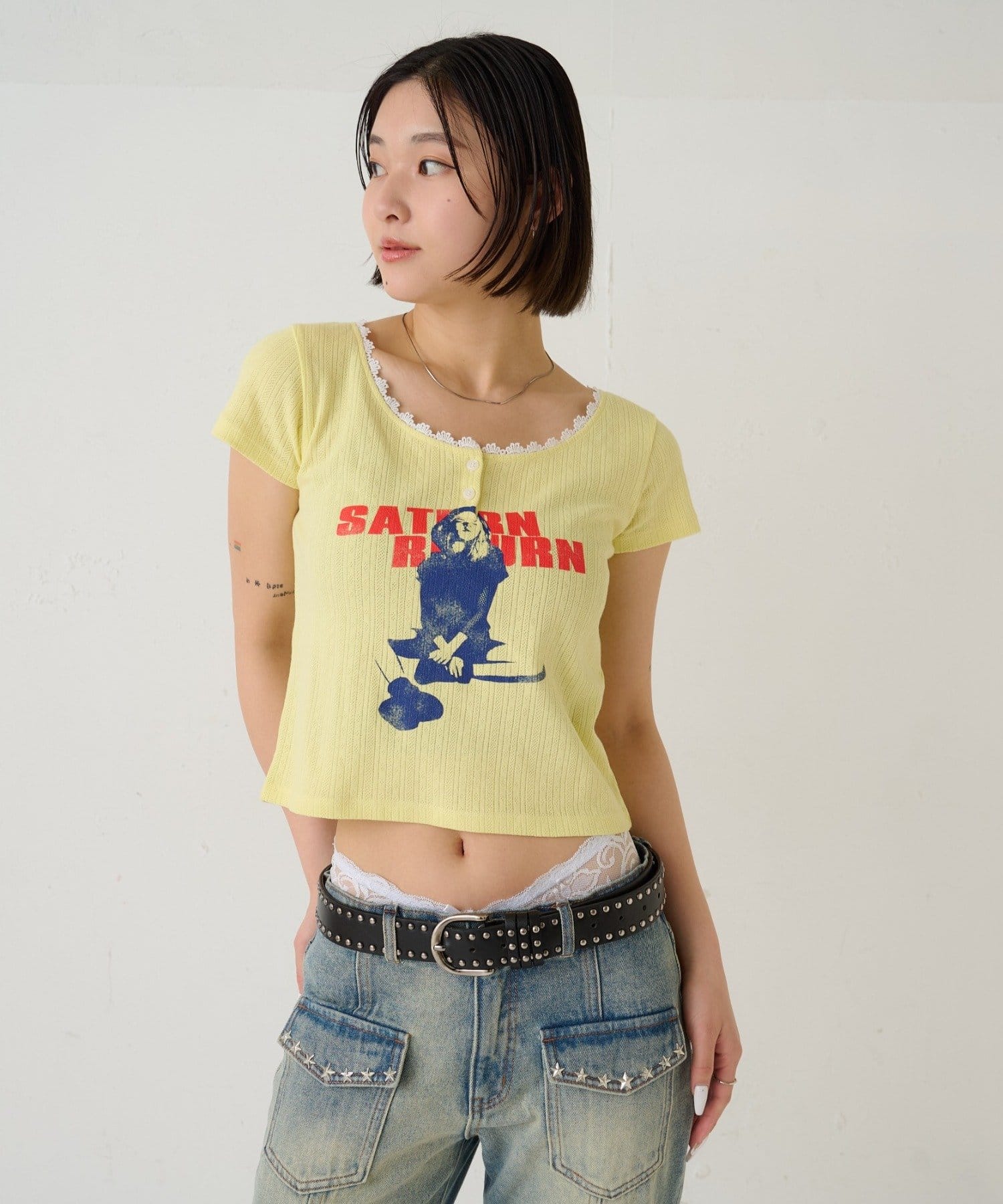 ・甘めのレースとクールな印象のデザインで一枚で甘辛ミックスのトレンドスタイルに。