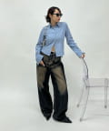 ・少し上下ボタンを外すことによって、こなれたオシャレな雰囲気に。