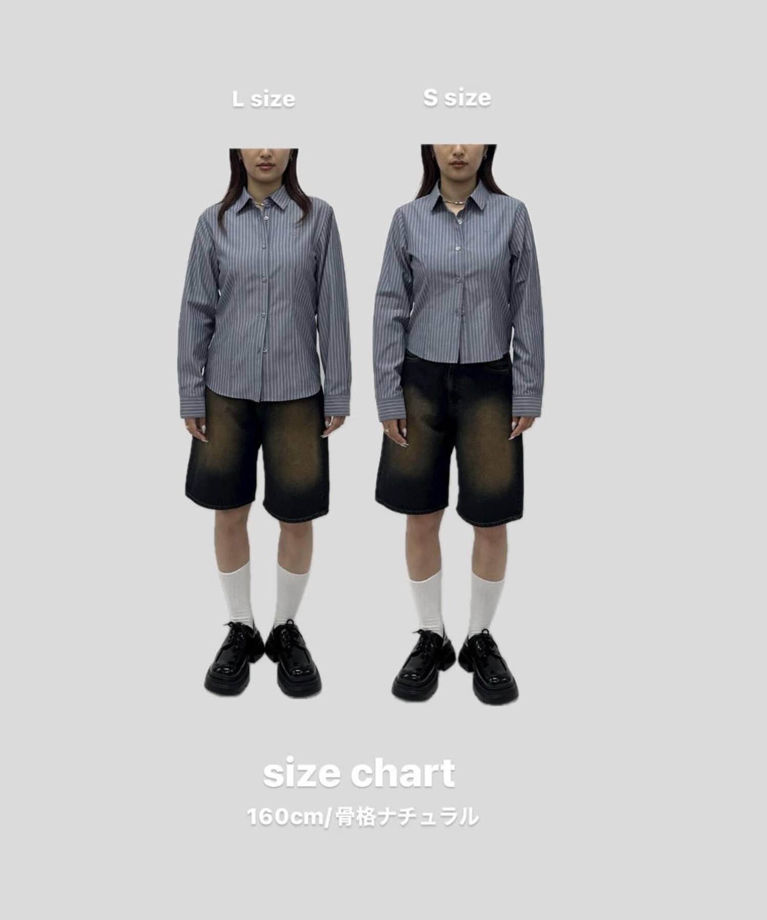Lサイズ→お尻が少し隠れる丈感。ストリート好きな子も女性らしさもプラスされて、いつもと違う雰囲気に。