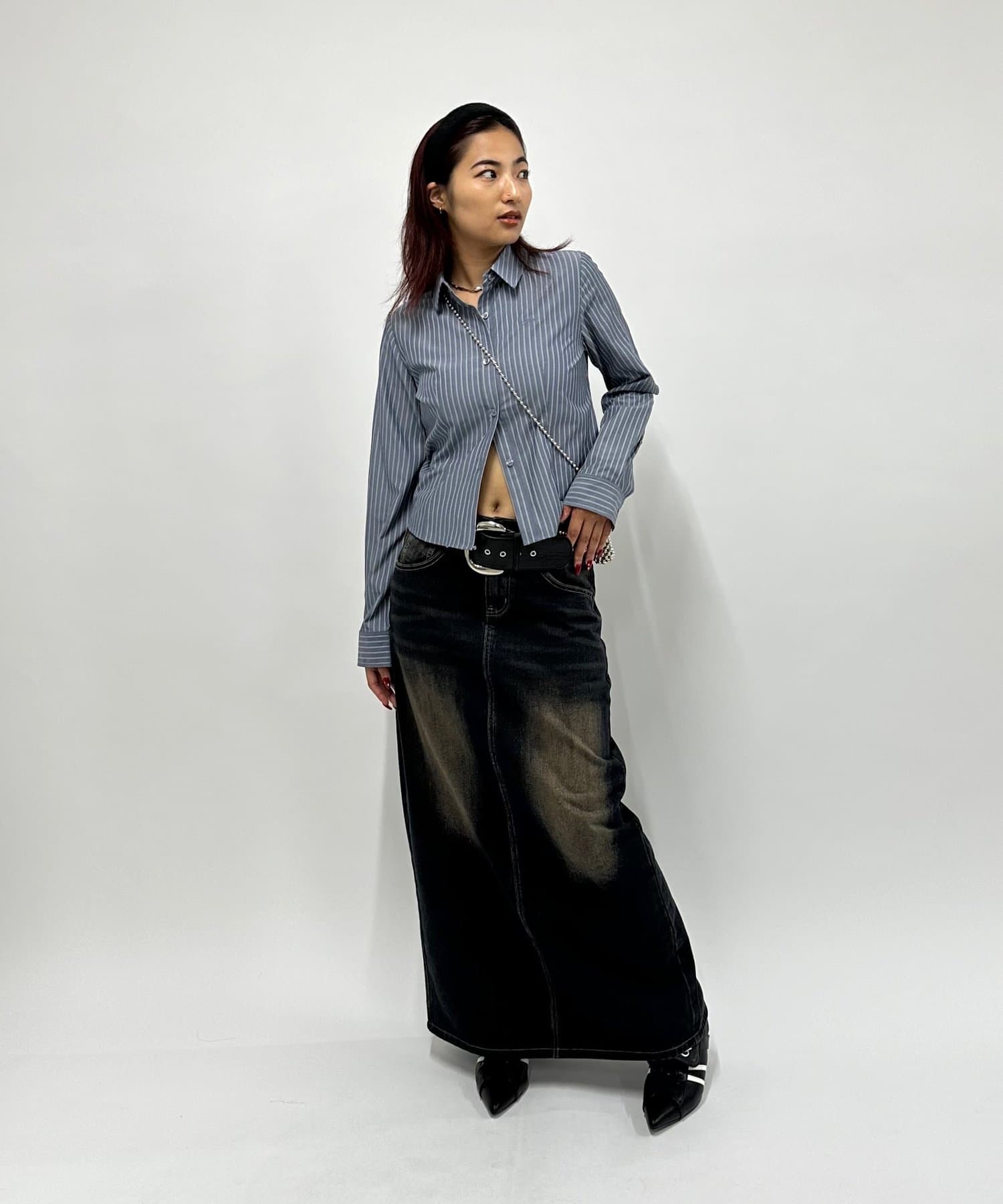 • 160cm/骨格ナチュラル/SサイズSK:オーバーダイデニムロングスカート