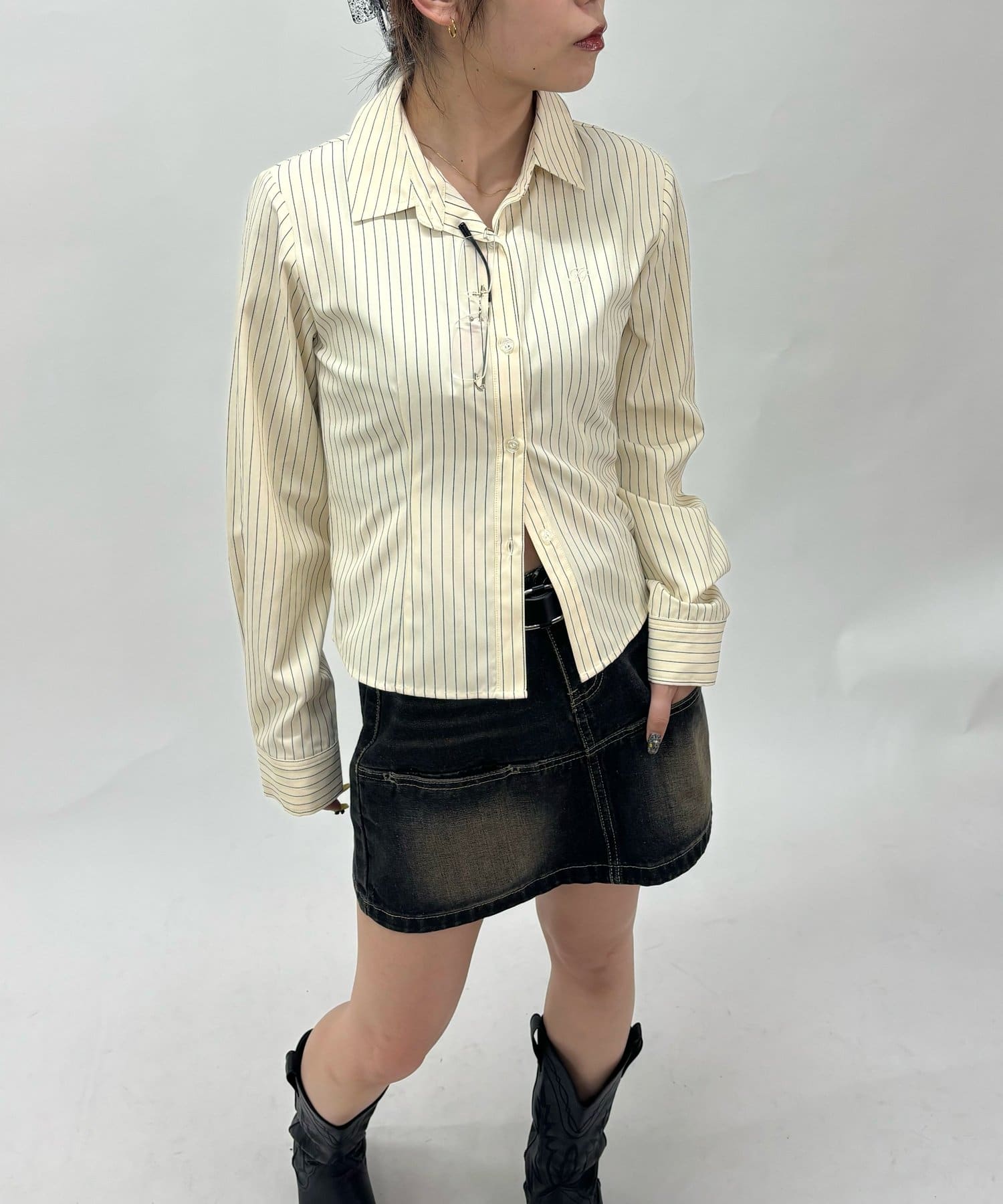 ミニ丈のボトムスで韓国っぽいギャル感に。