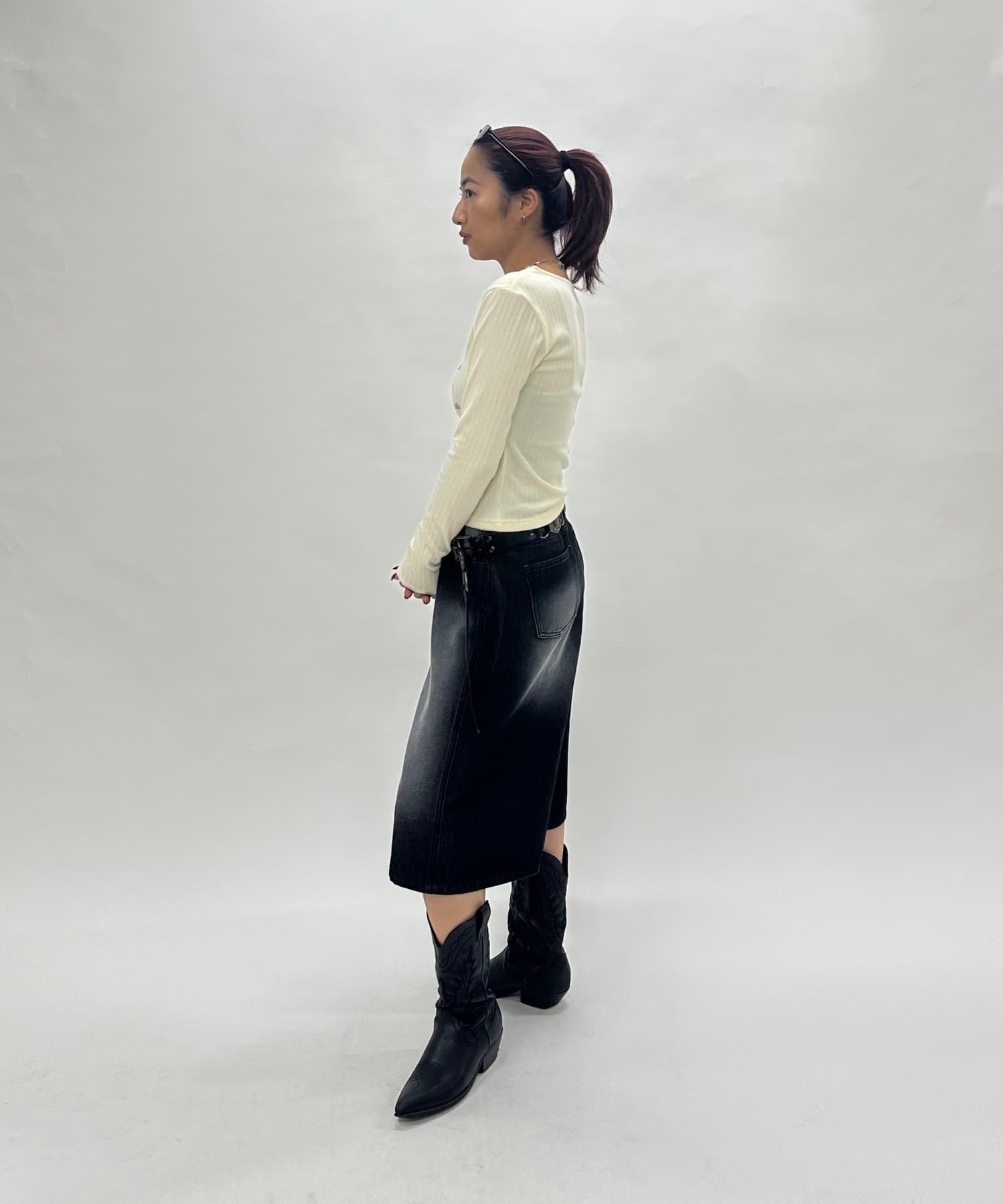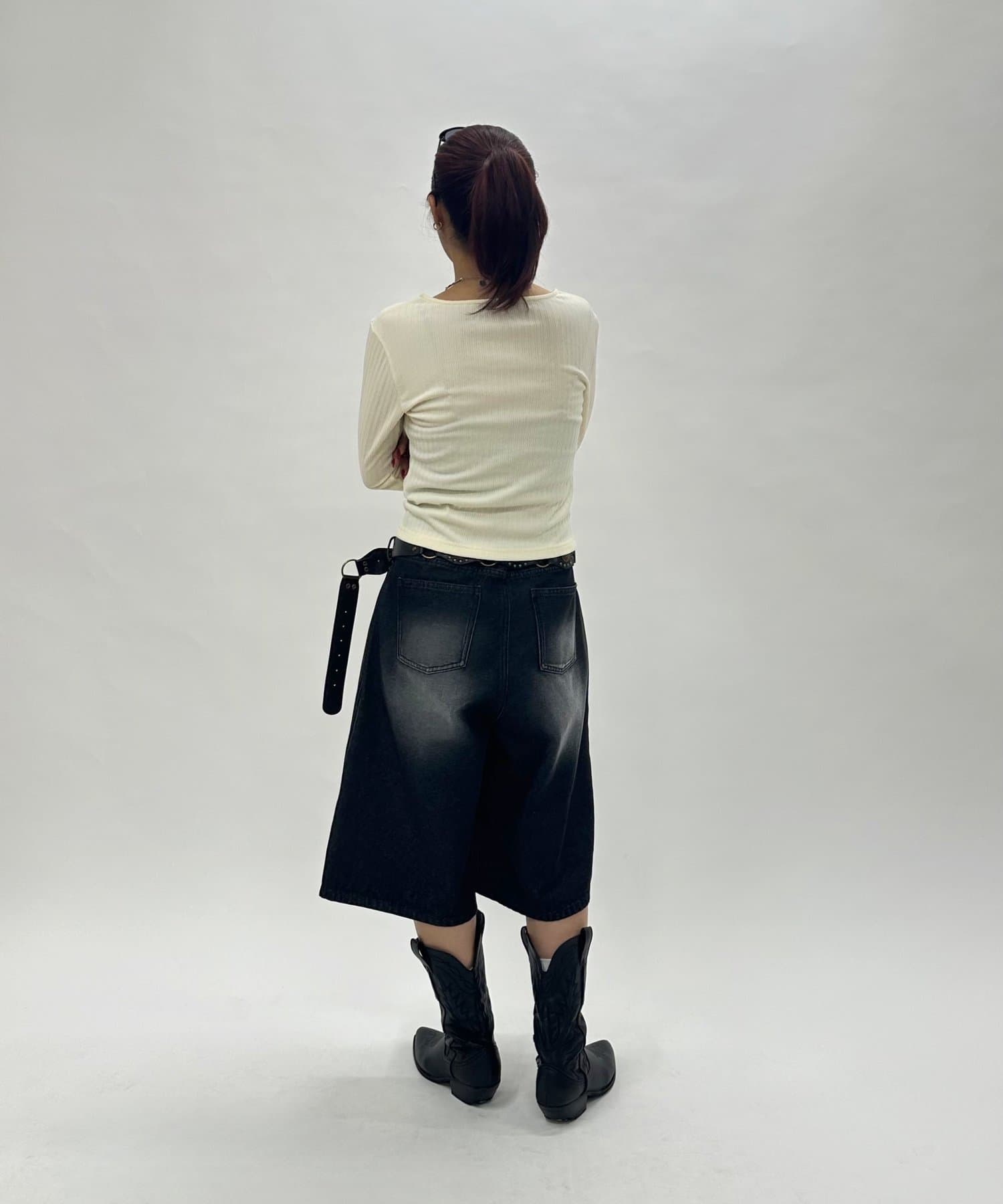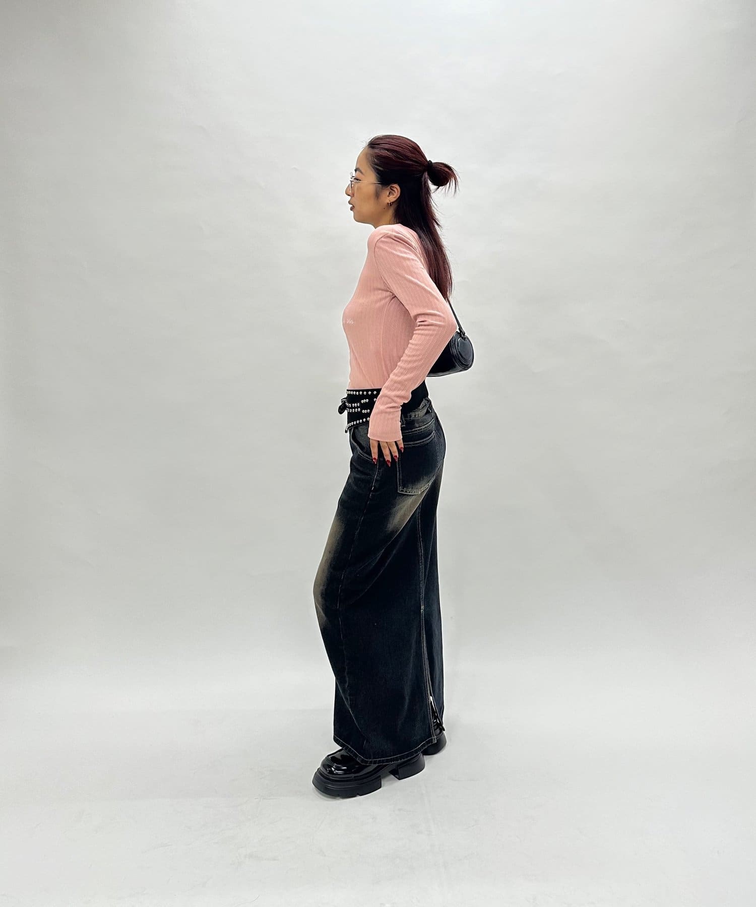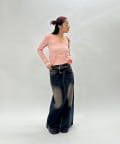 ・甘めのトップスには、カッコいいボトムスでミックスコーデ。