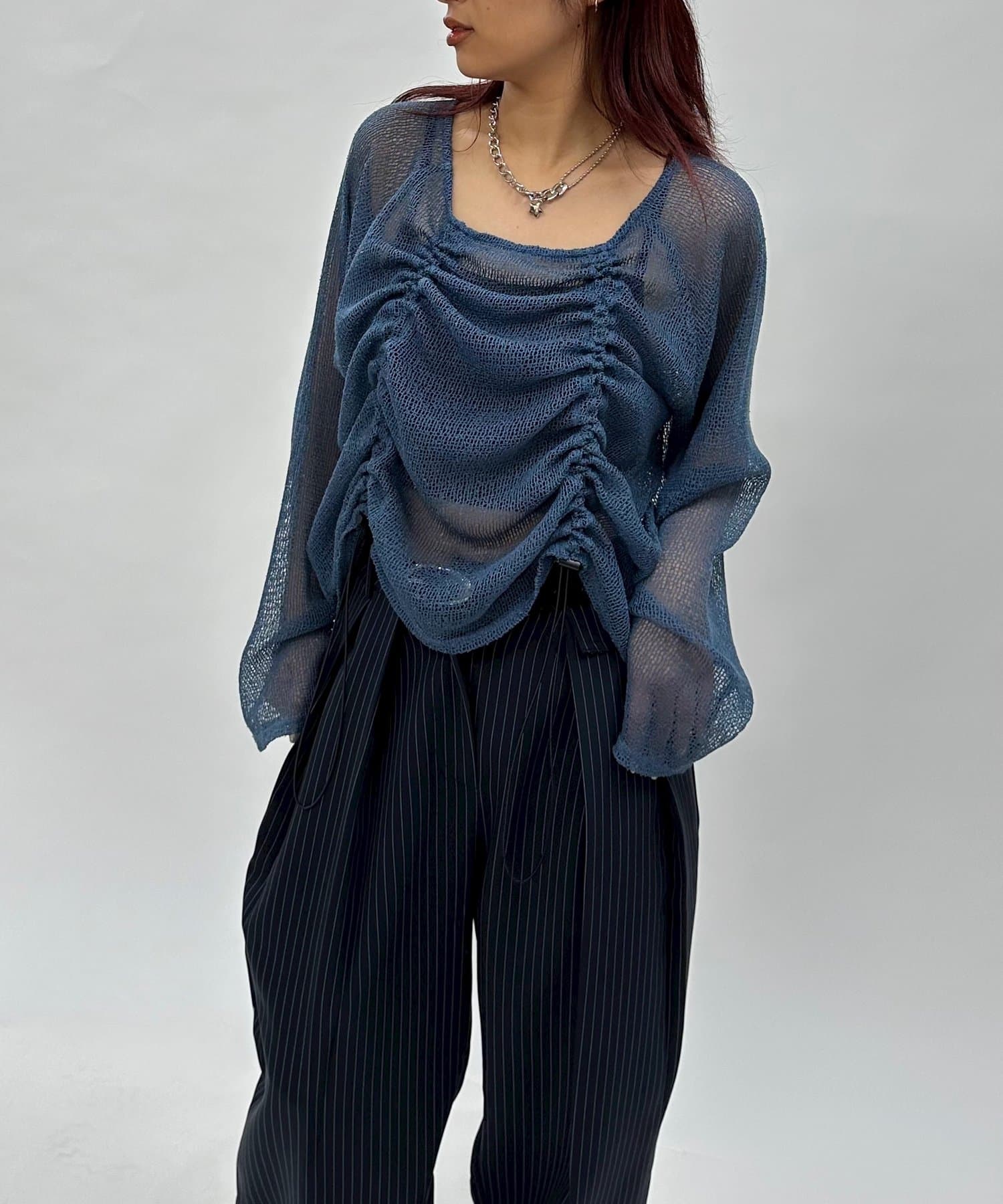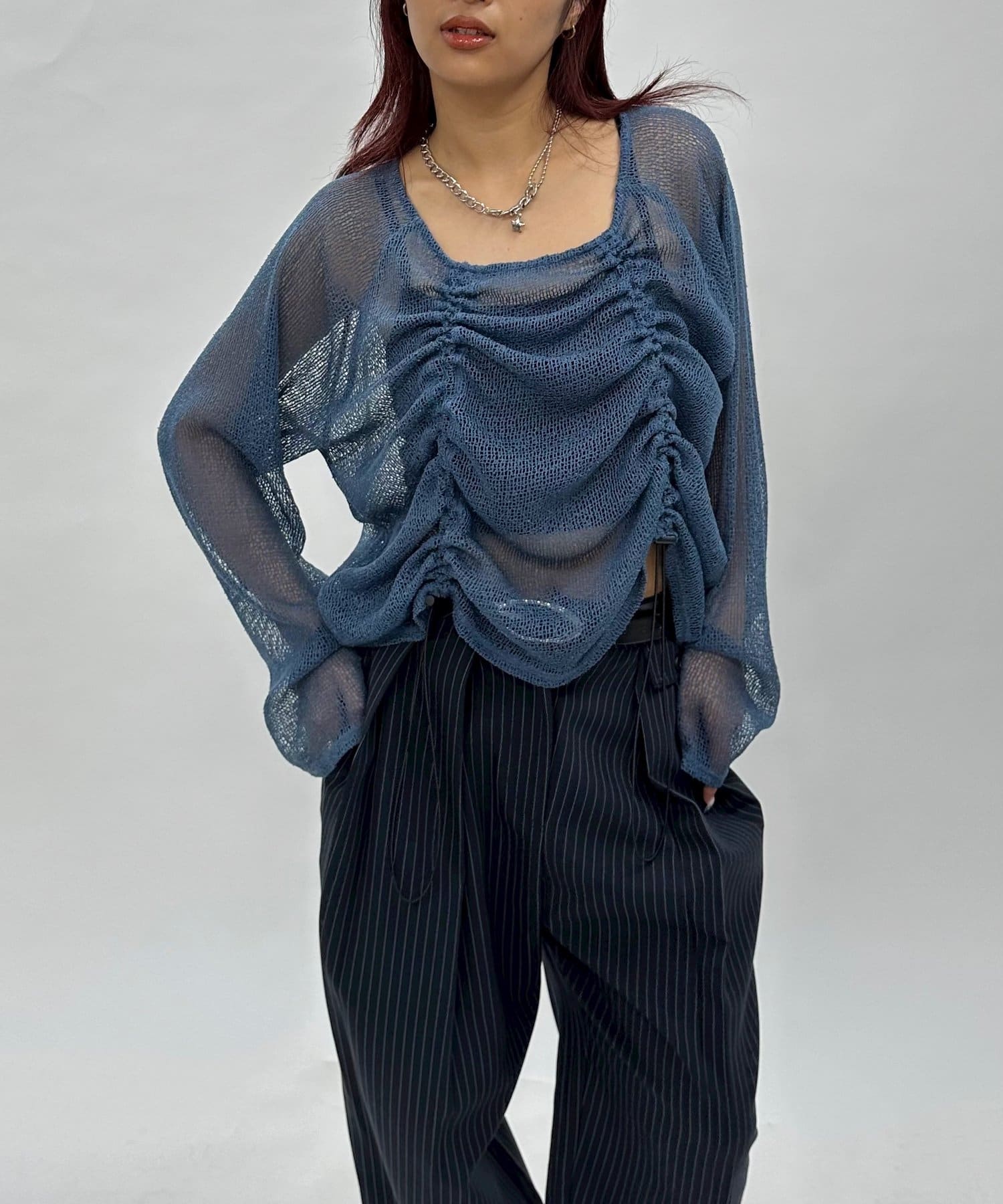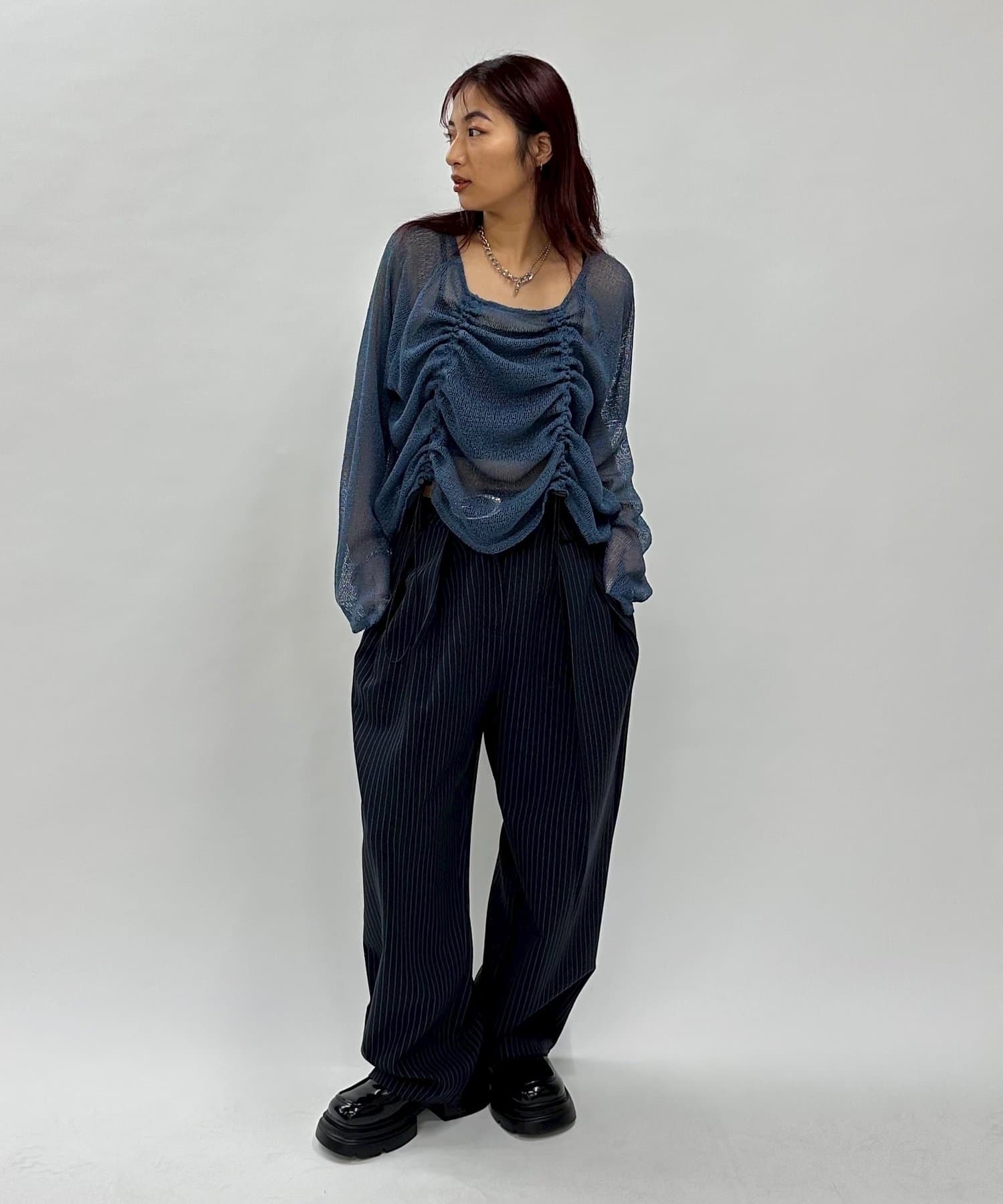 ・少し透け感のある素材感なので、暑い時期でも涼し気な印象に。