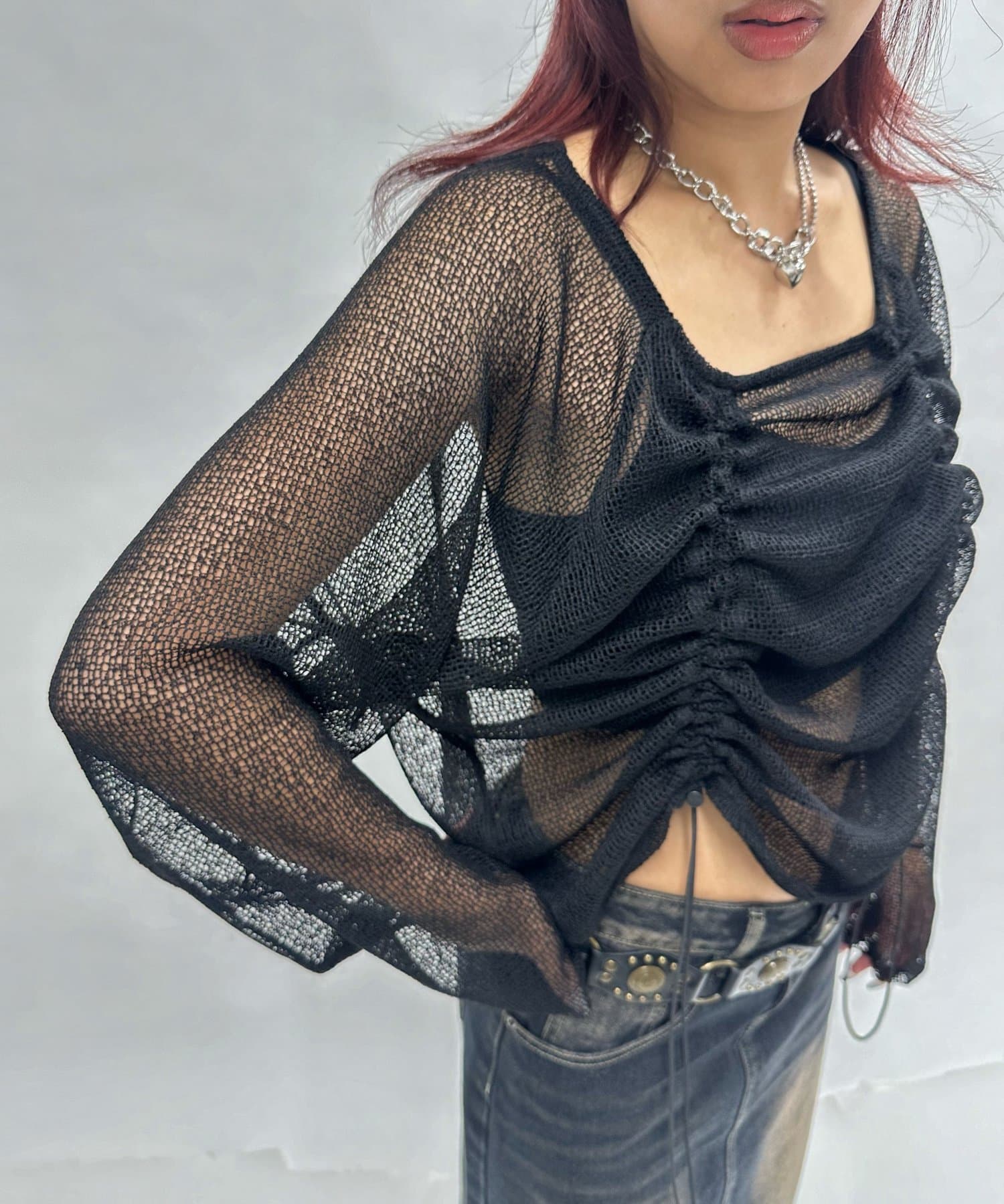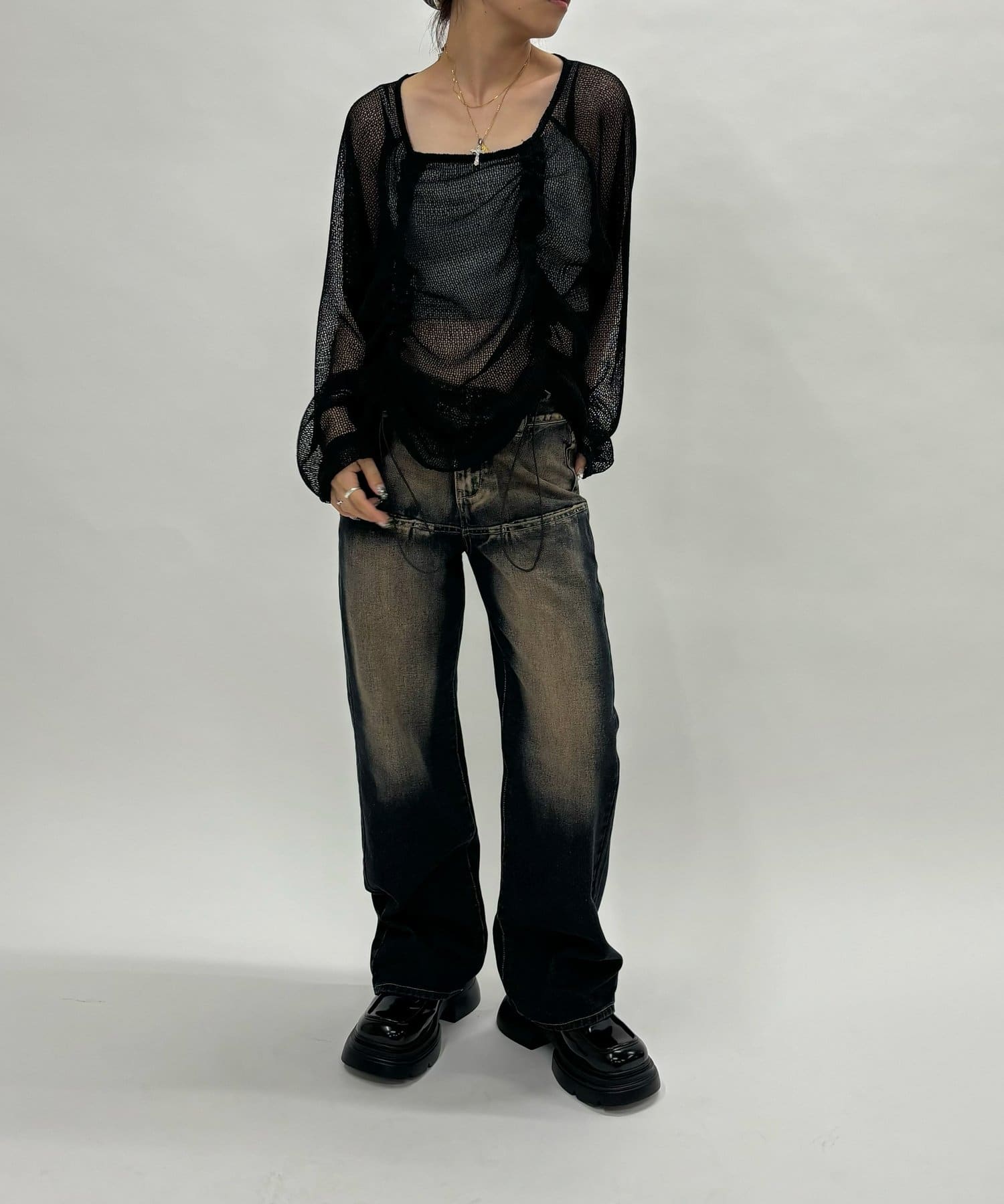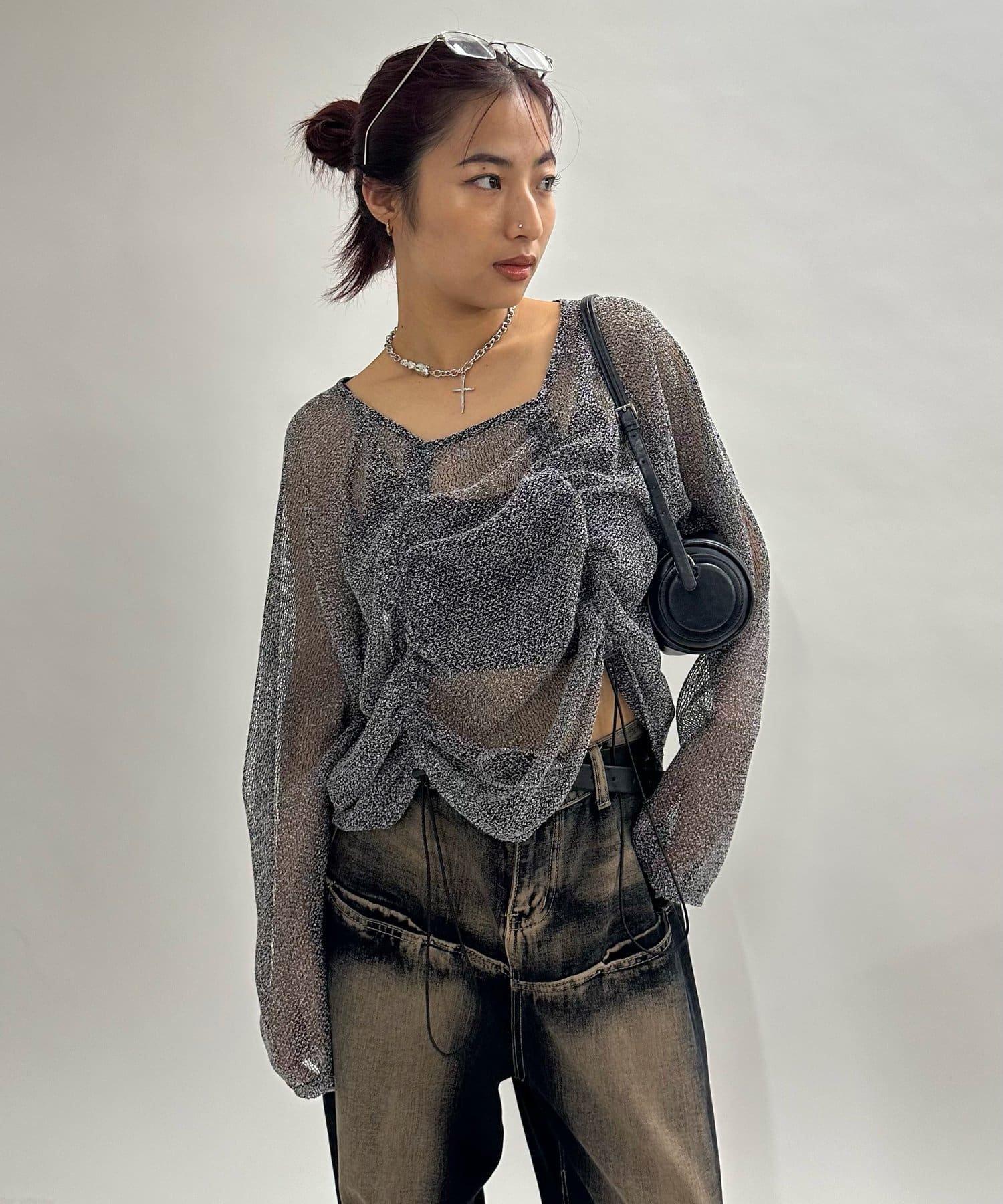 ・少し透け感のある素材感なので、暑い時期でも涼し気な印象に。