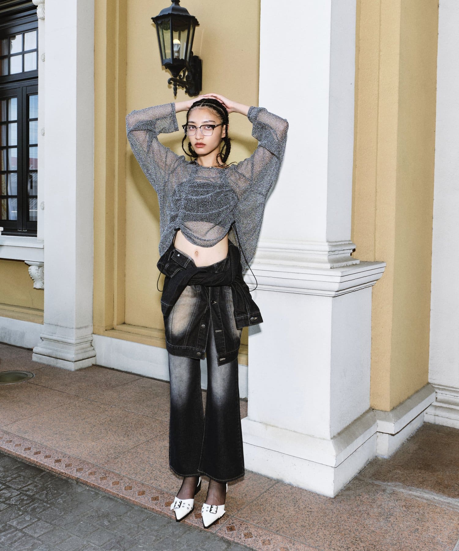 ・トレンドのハーフデニムでストリートな雰囲気に。