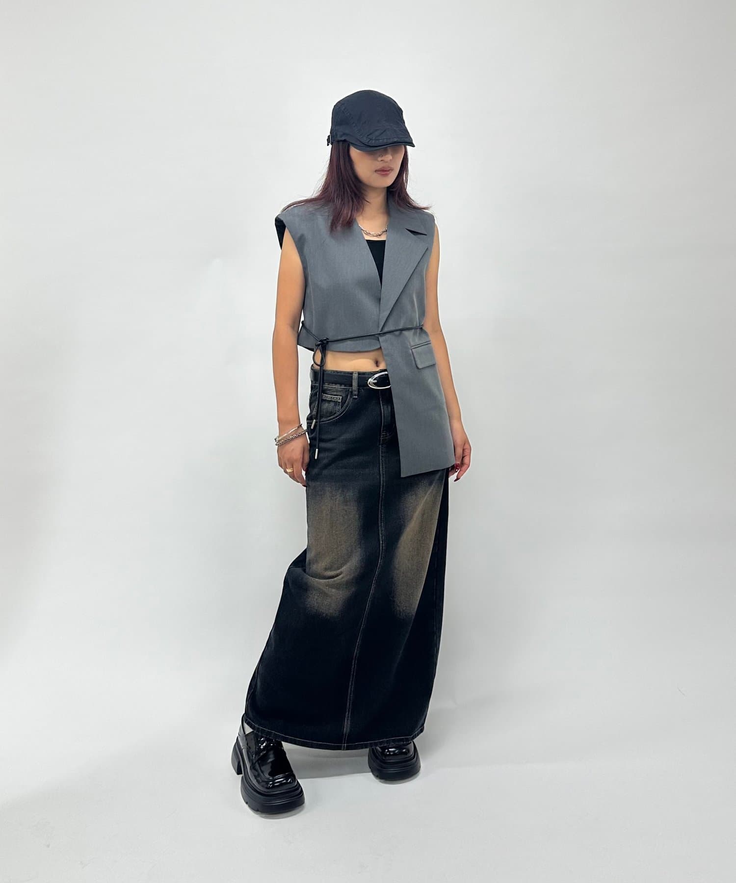 • 160cm/骨格ナチュラルSK:オーバーダイデニムロングスカート