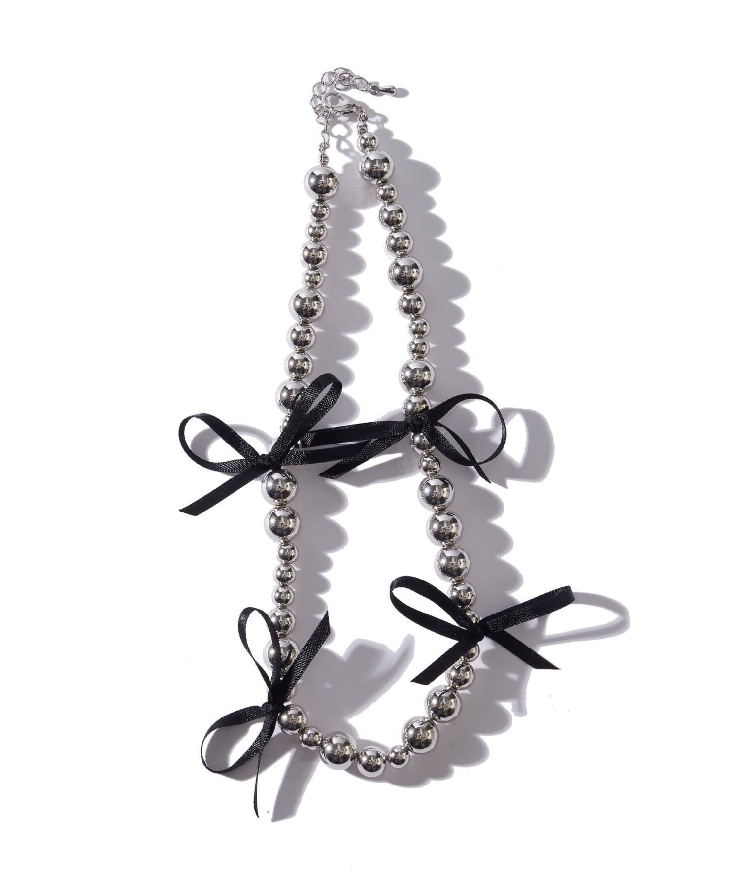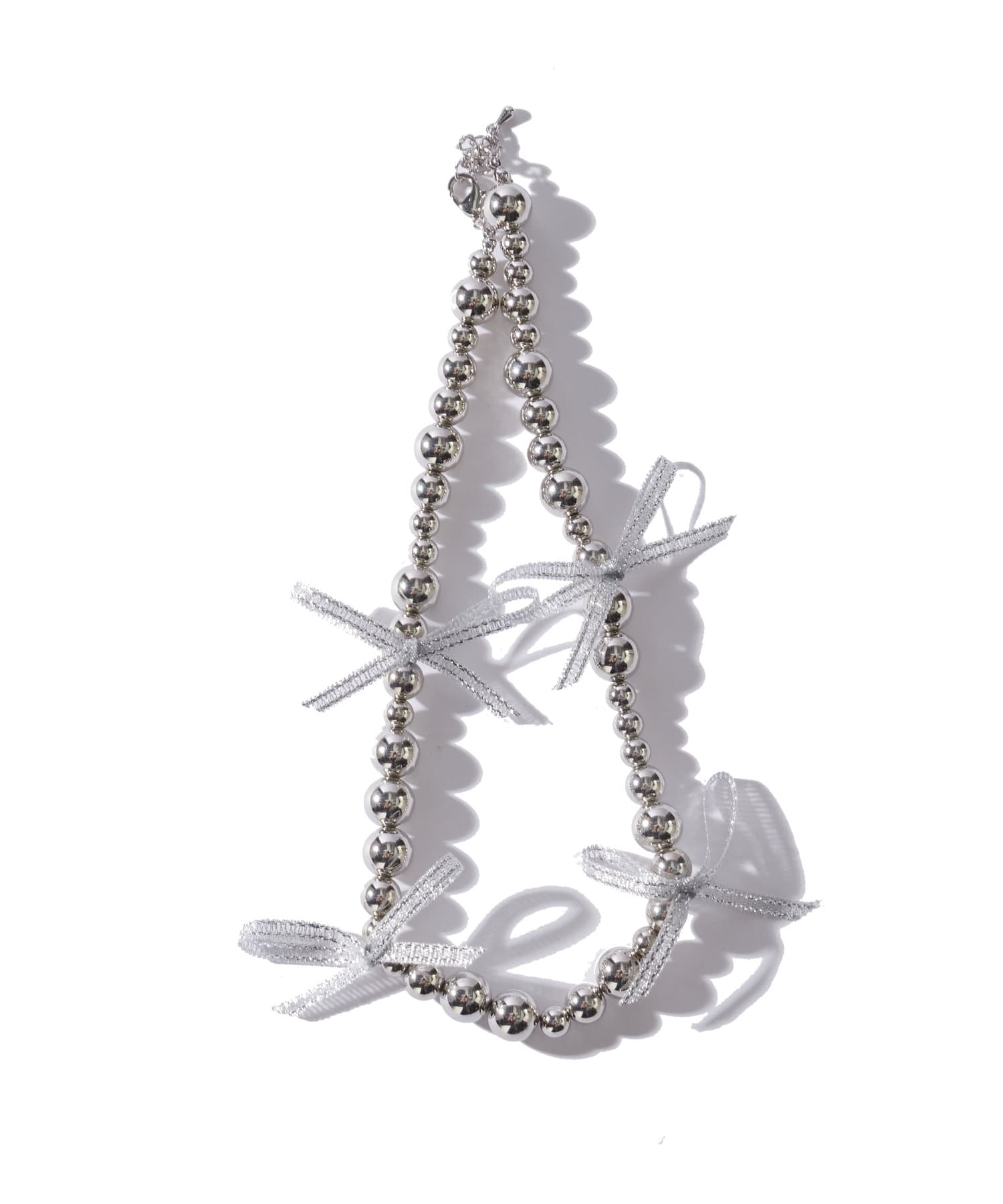 リボンシルバーボールネックレス