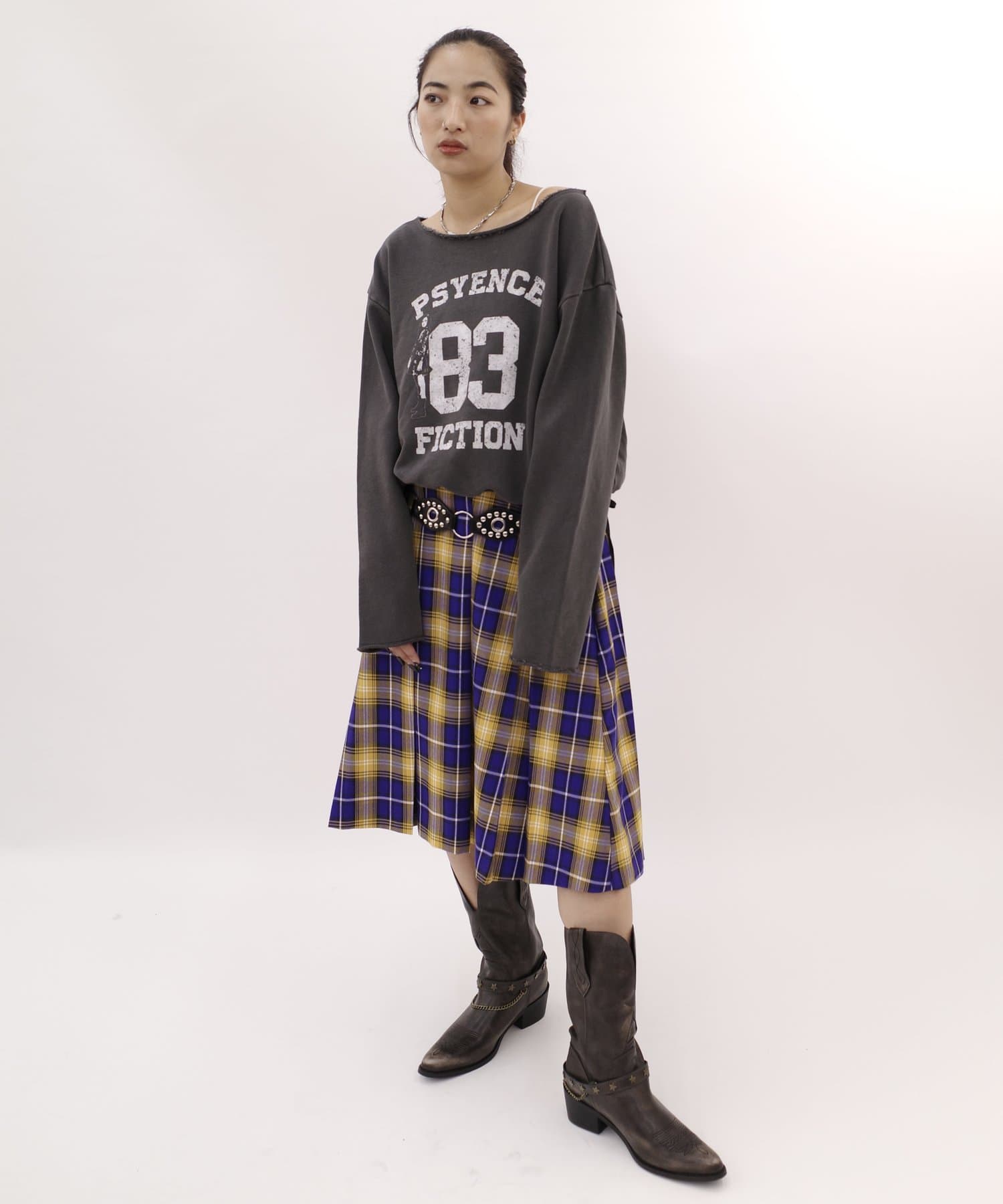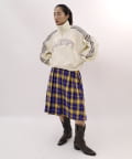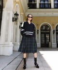 カーディガンなど合わせることによって、トレンドのスクールライクな雰囲気にもなります。