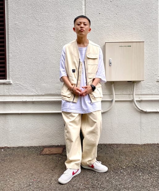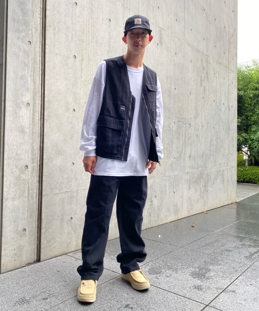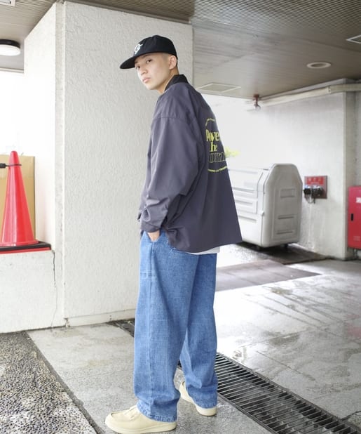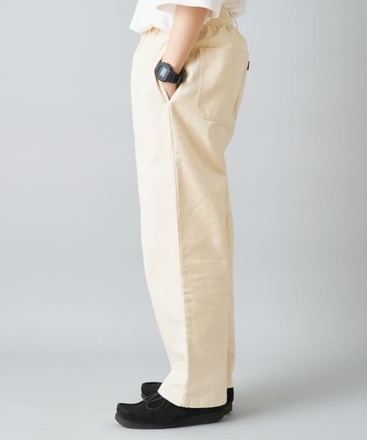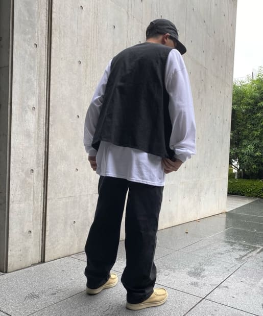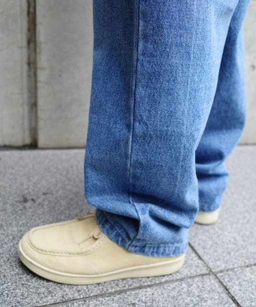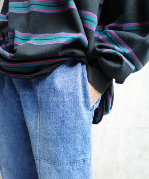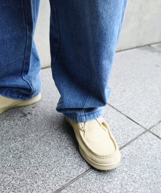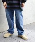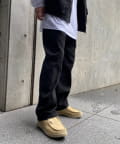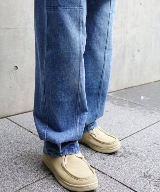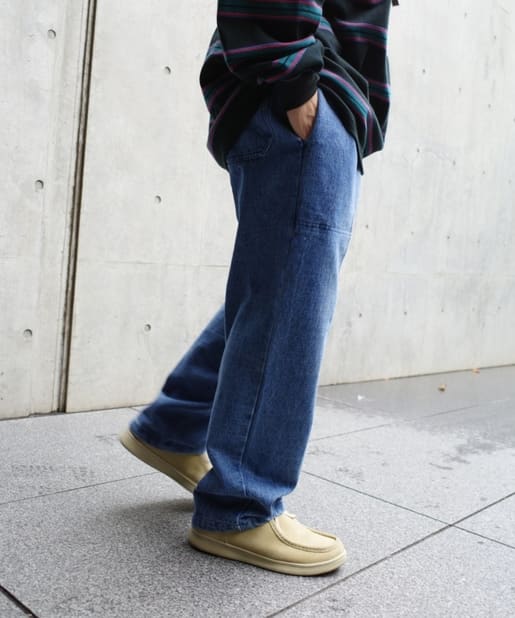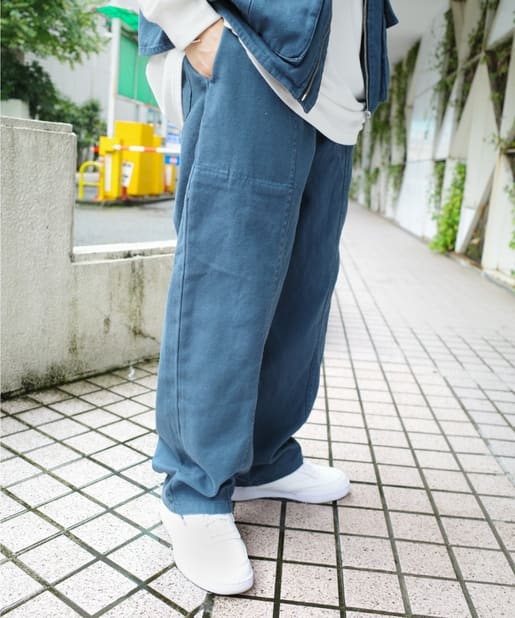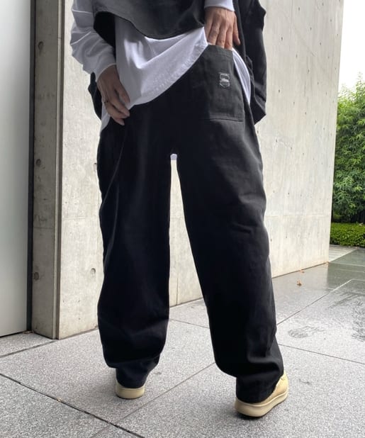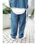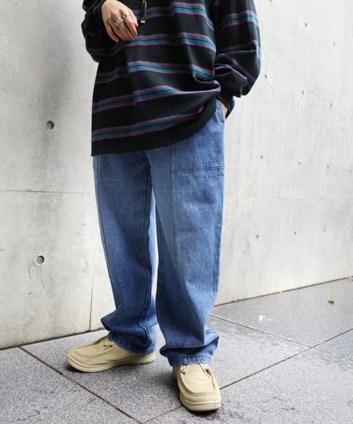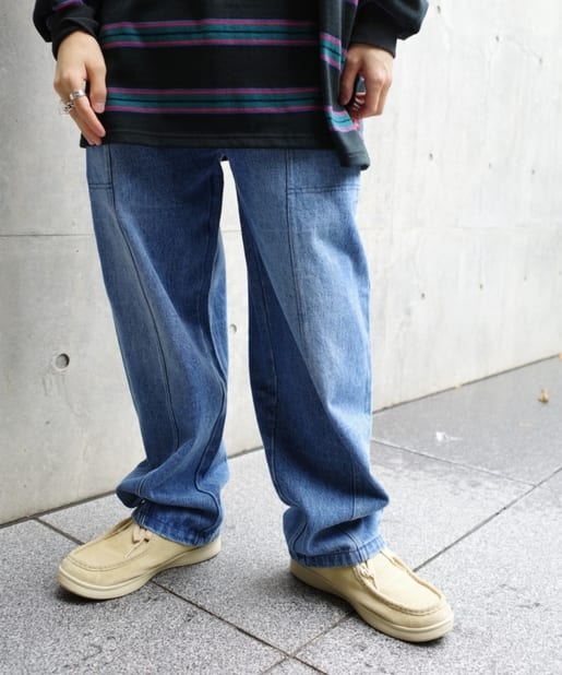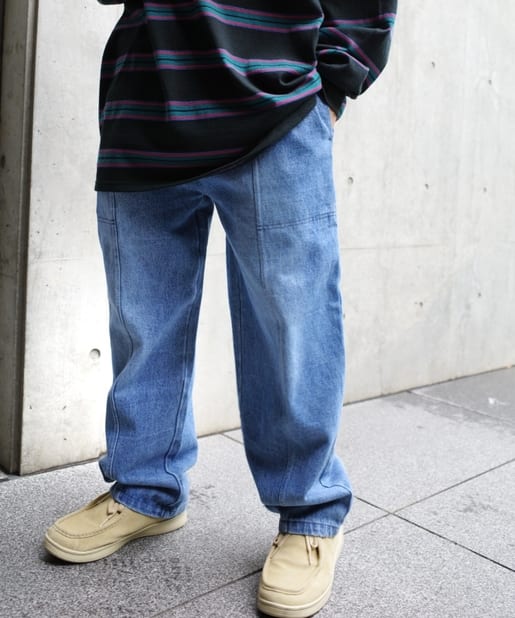・ワイドなシルエットながらもテーパードシルエット、ステッチデザインで綺麗なラインで履けます。
